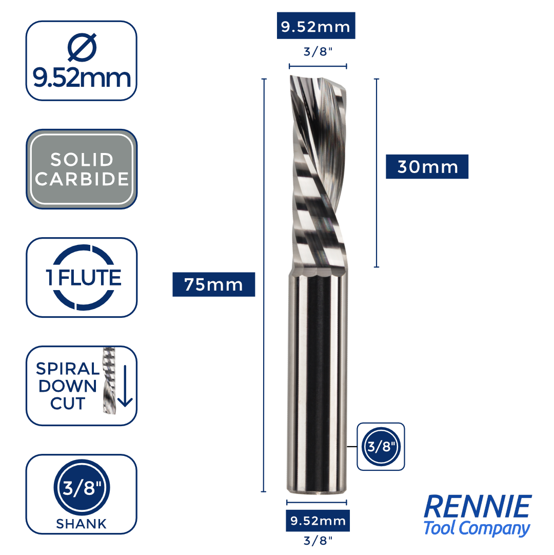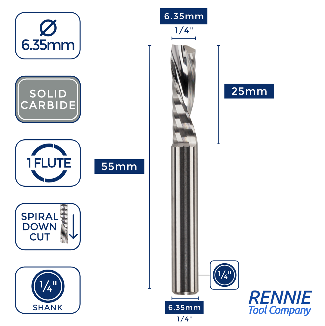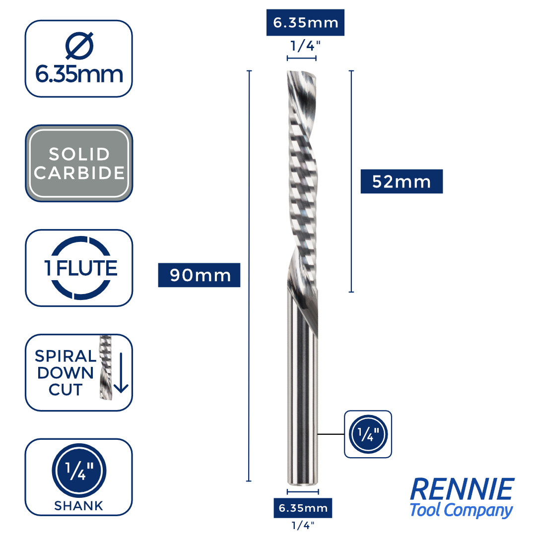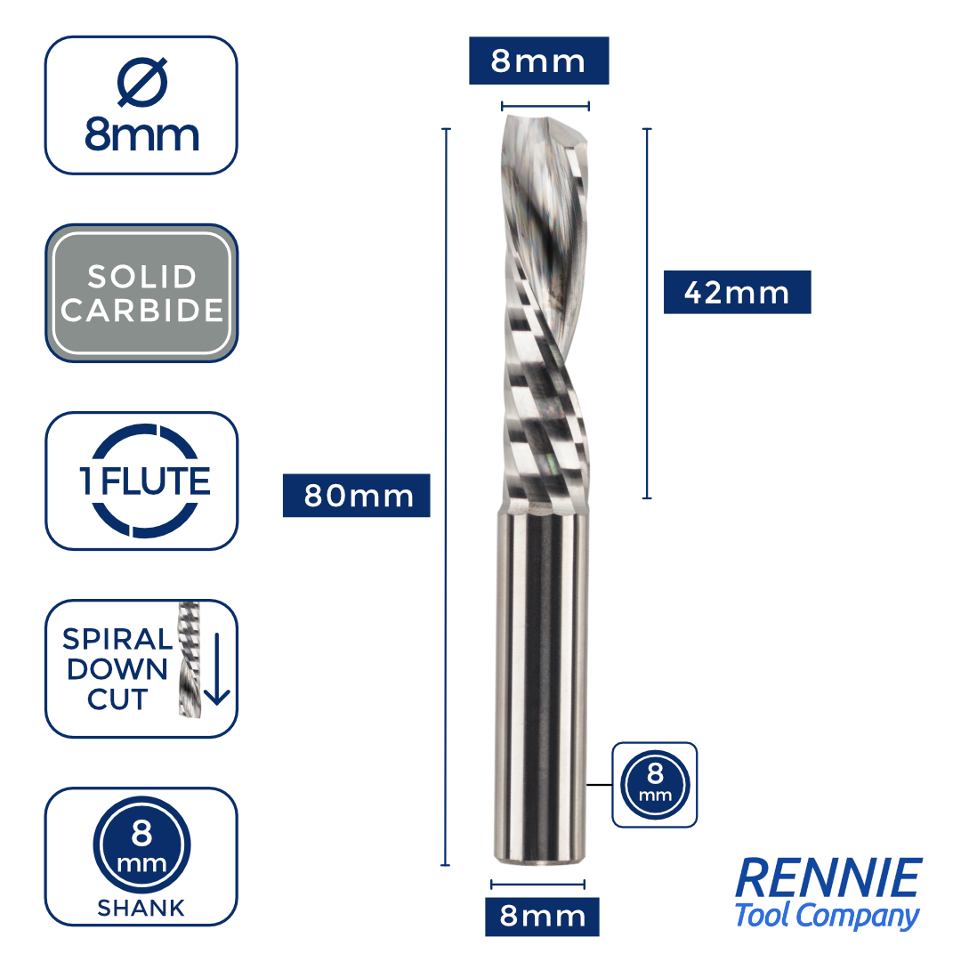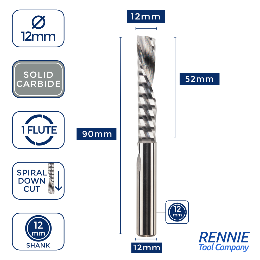 Solid Carbide Single 1 Flute Down Cut Spiral Router Bits