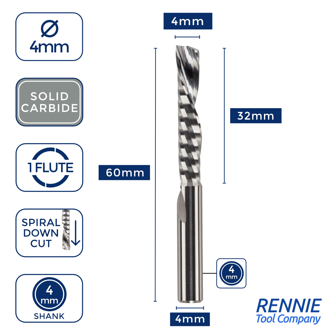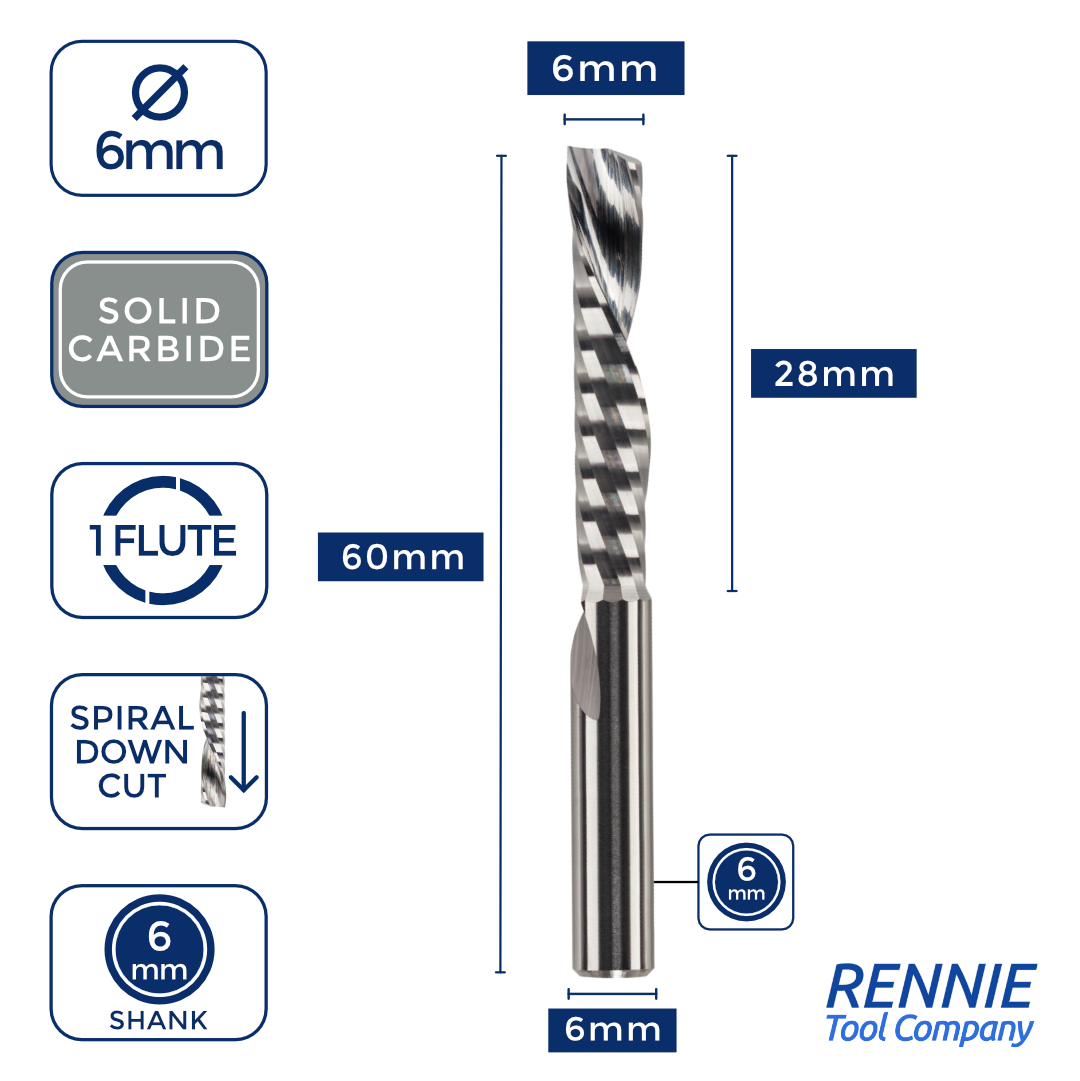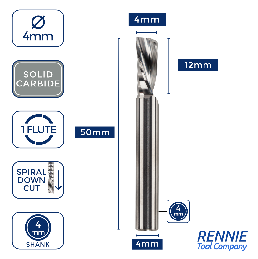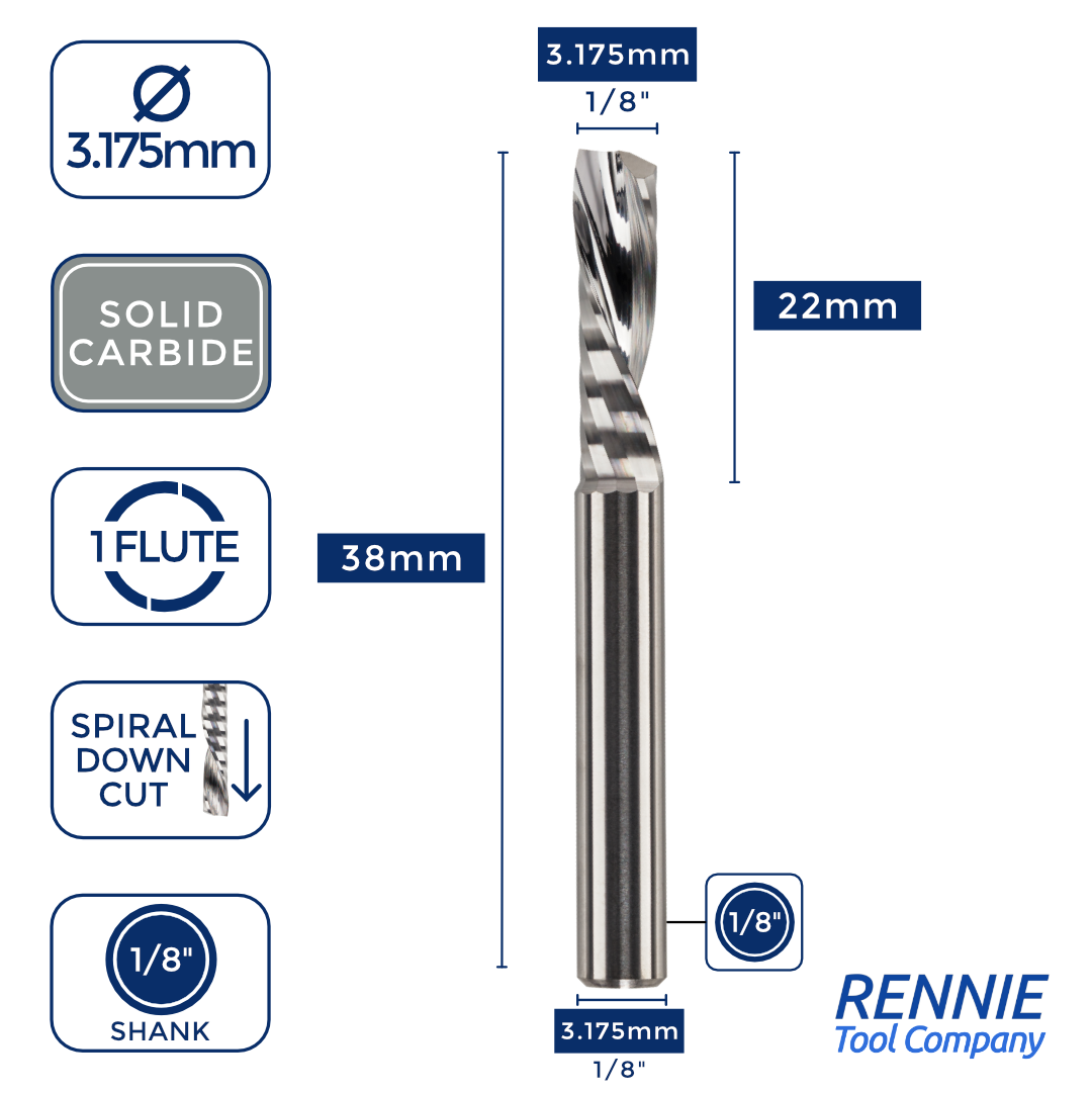 Solid Carbide Single 1 Flute Down Cut Spiral Router Bits