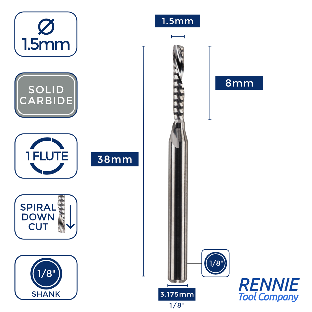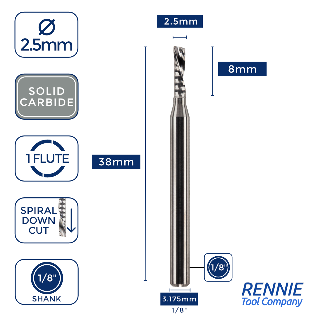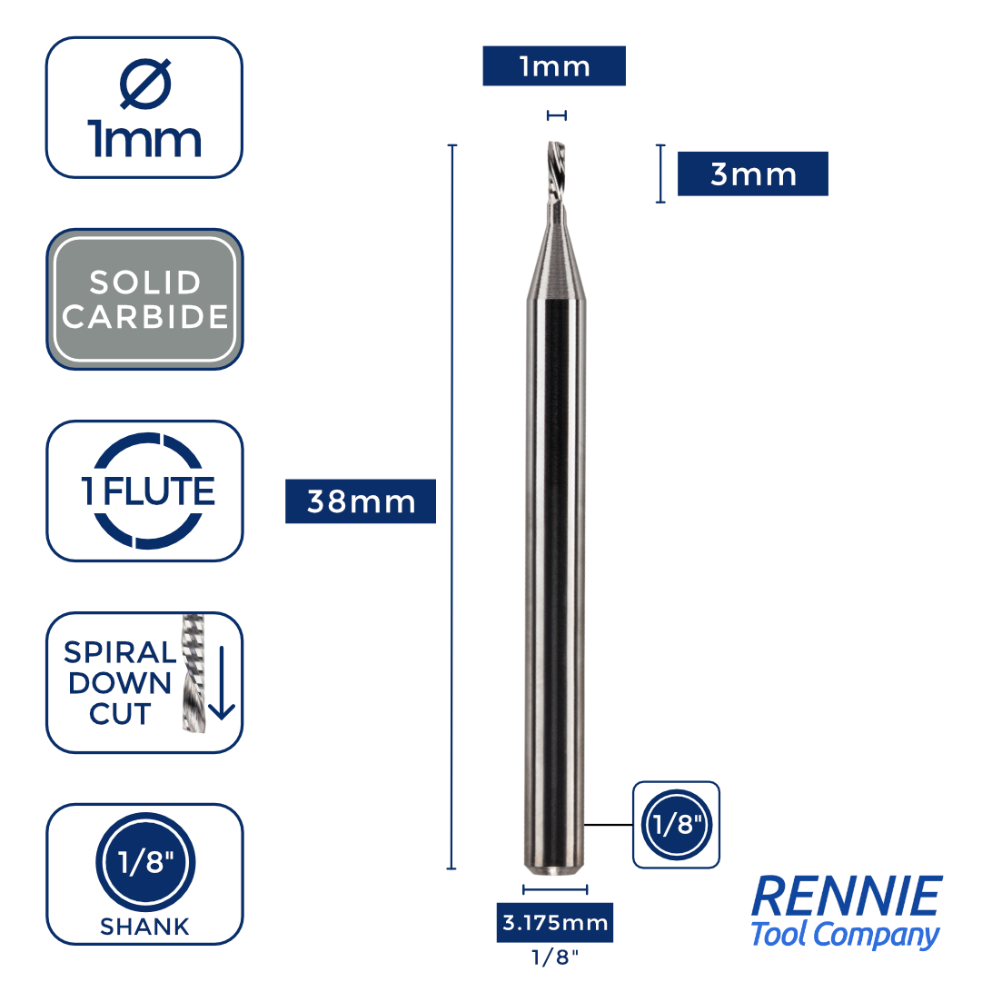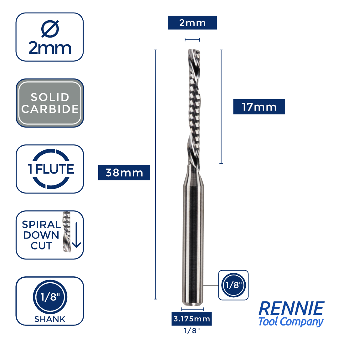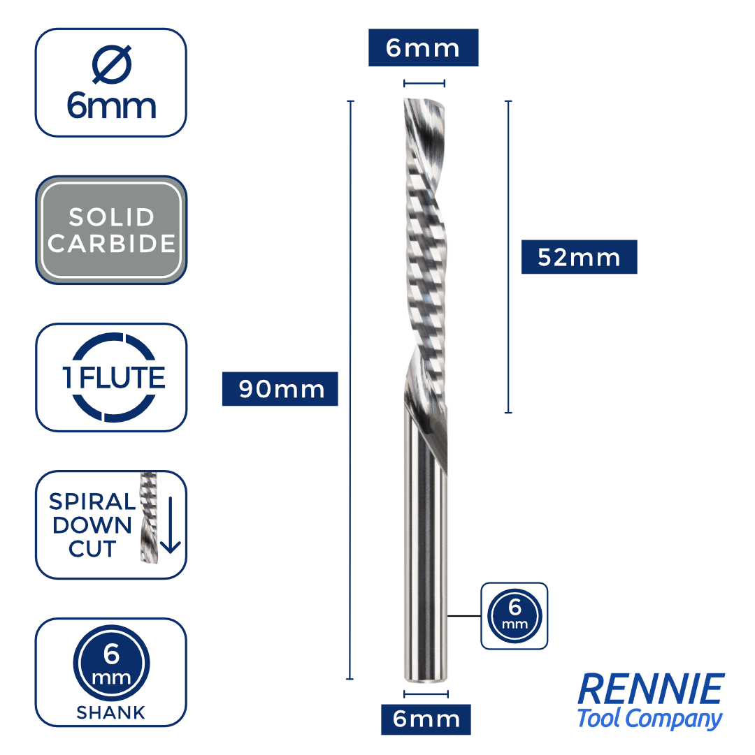 Solid Carbide Single 1 Flute Down Cut Spiral Router Bits