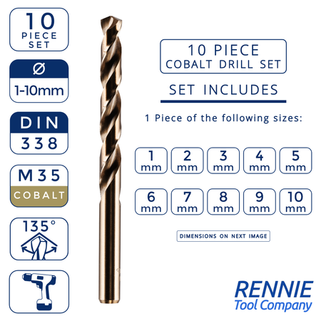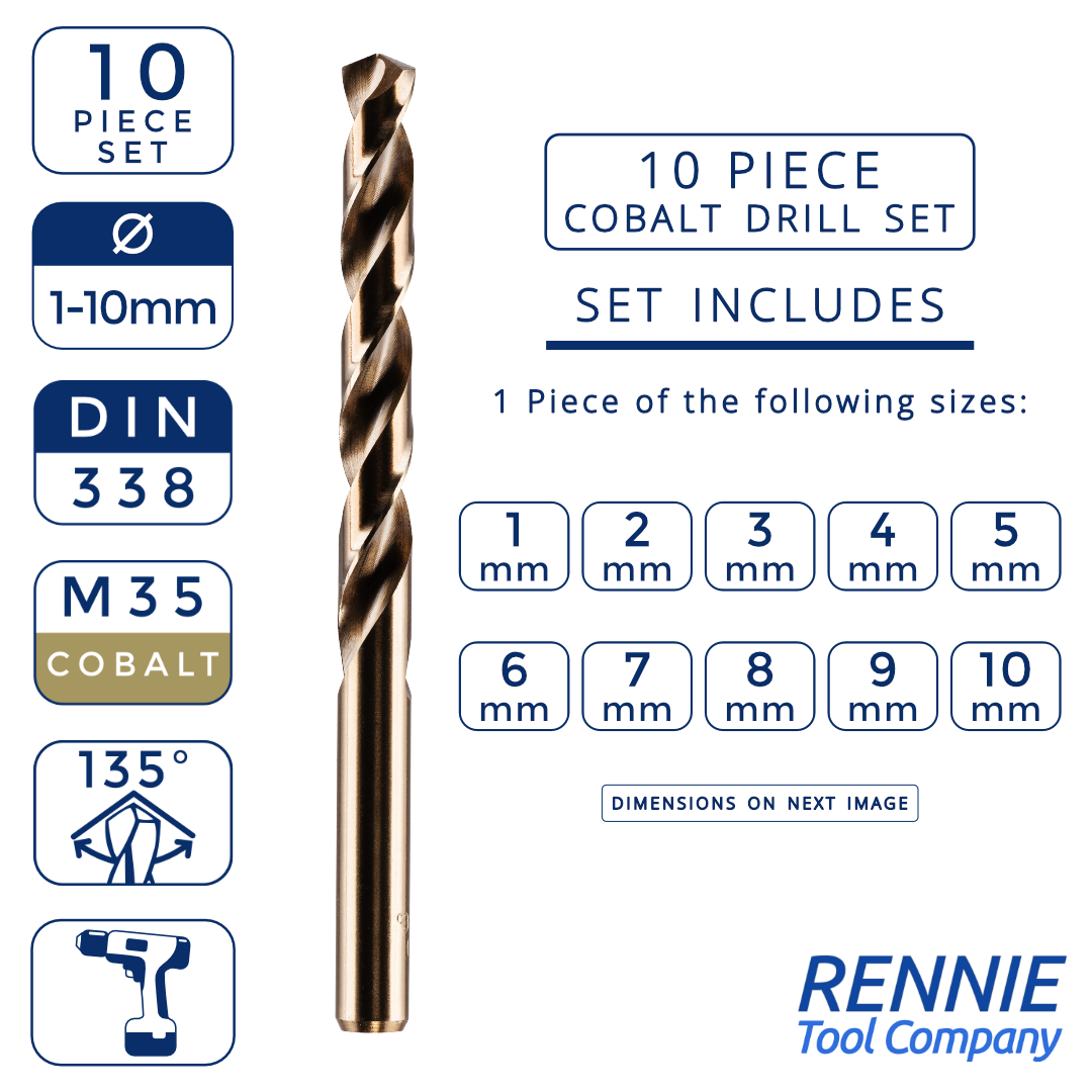 10 Piece Set - Includes Sizes 1 - 10mm In 1mm Increments (Supplied In Plastic Case)