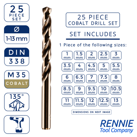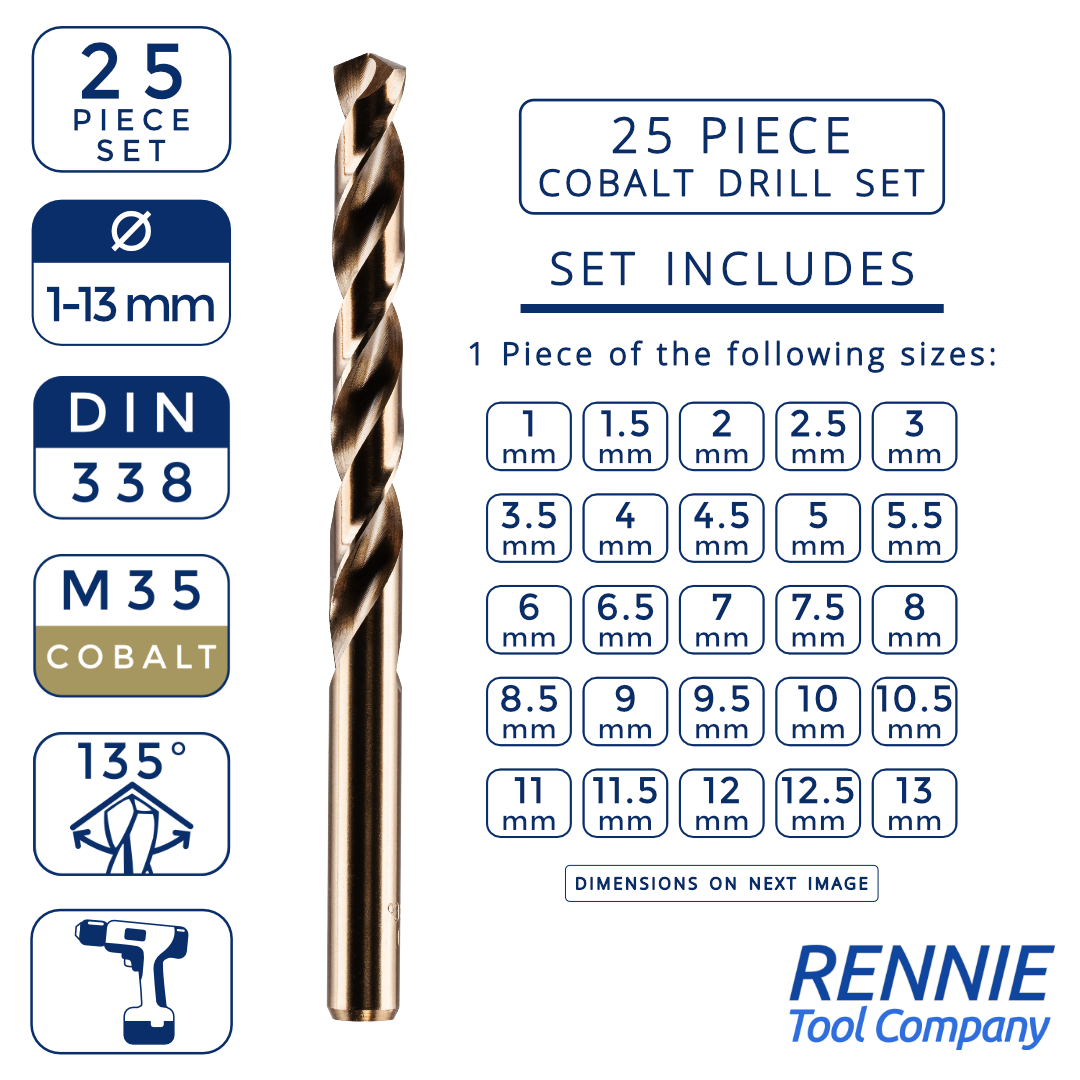 25 Piece Set - Includes Sizes 1 - 13mm In 0.5mm Increments (Supplied In Metal Case)