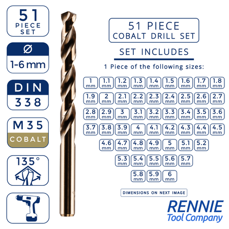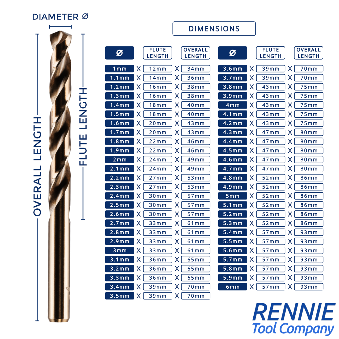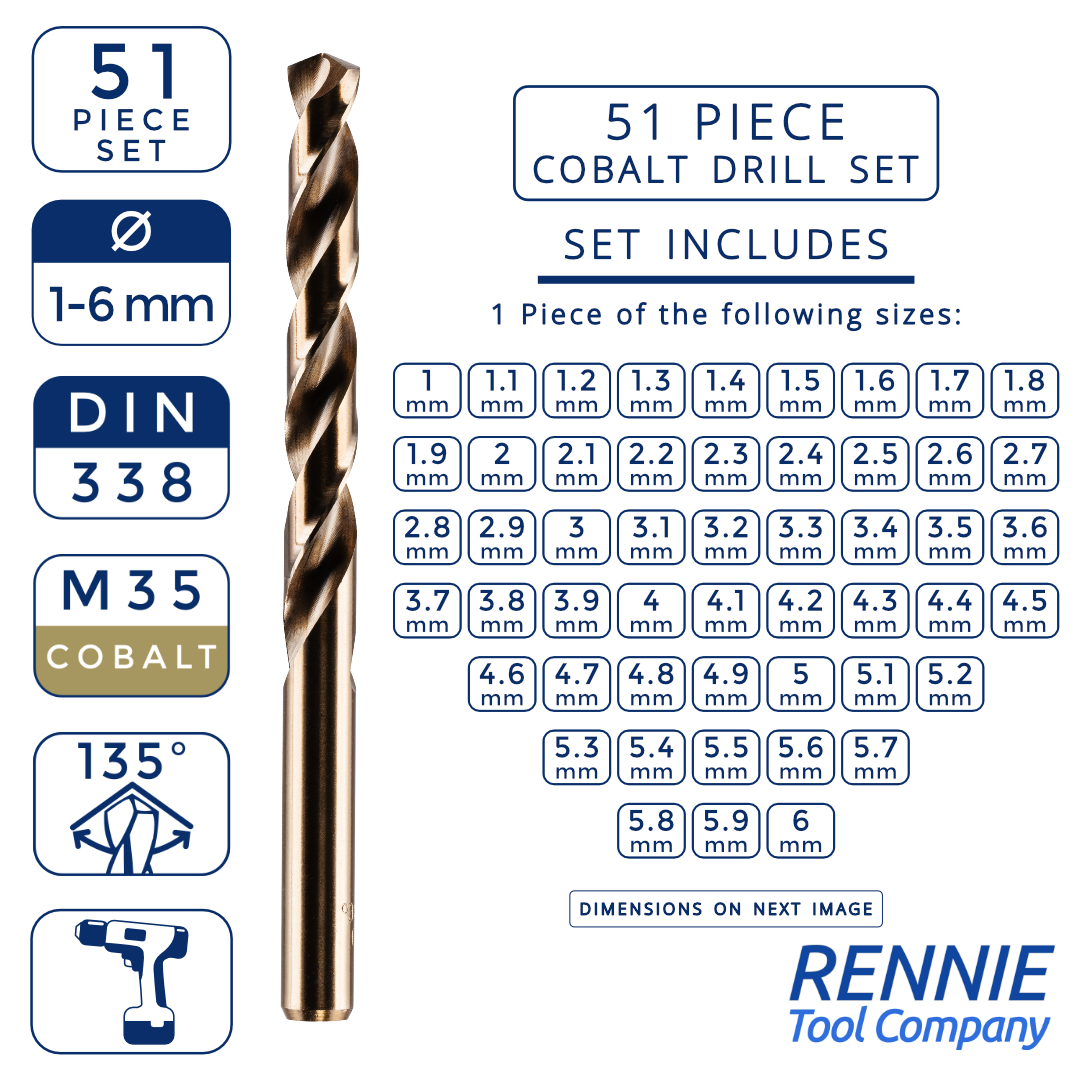 51 Piece Set - Includes Sizes 1 - 6mm In 0.1mm Increments (Supplied In Metal Case)