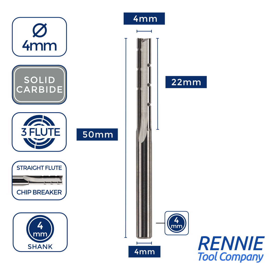 Solid Carbide Straight Flute Chip Breaker / Hogging Router Bits