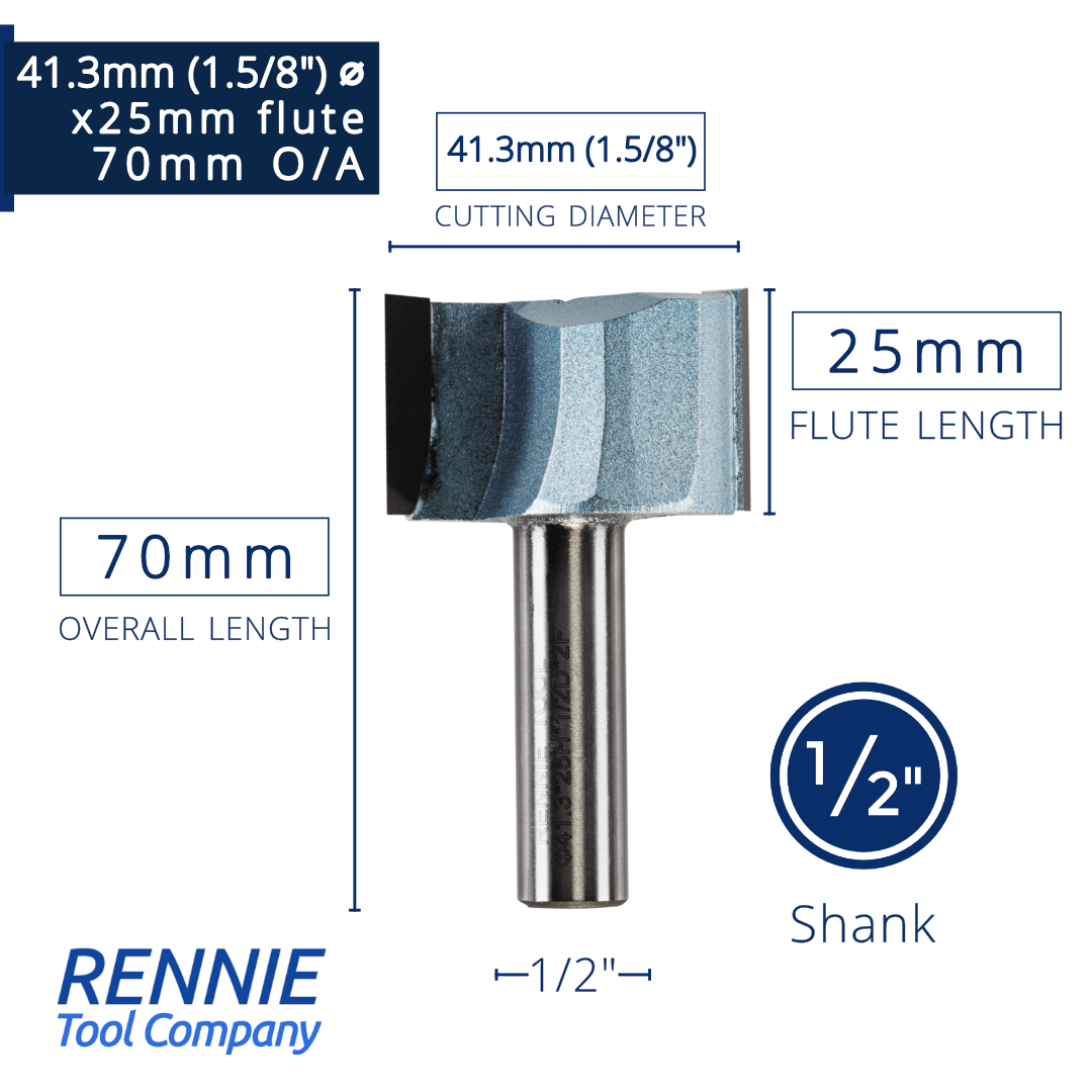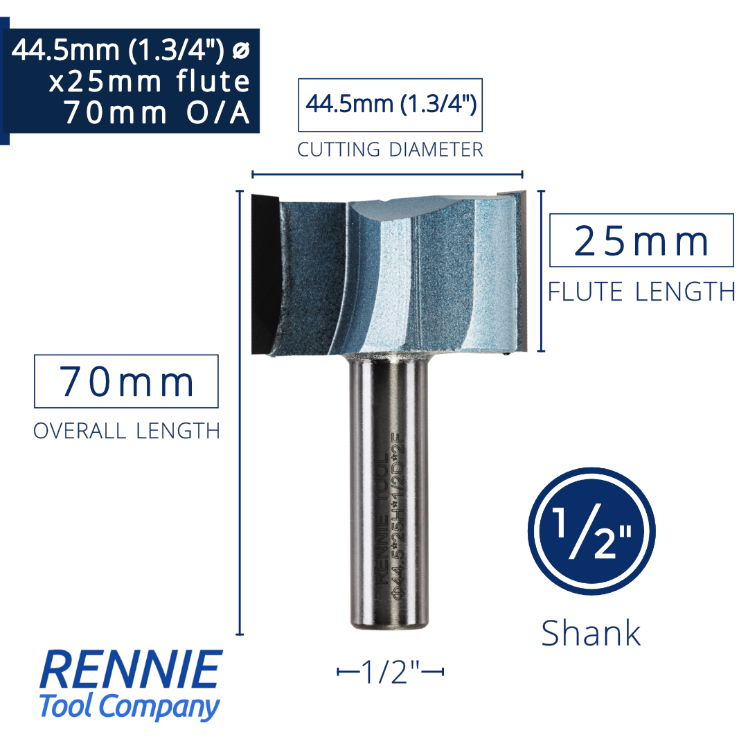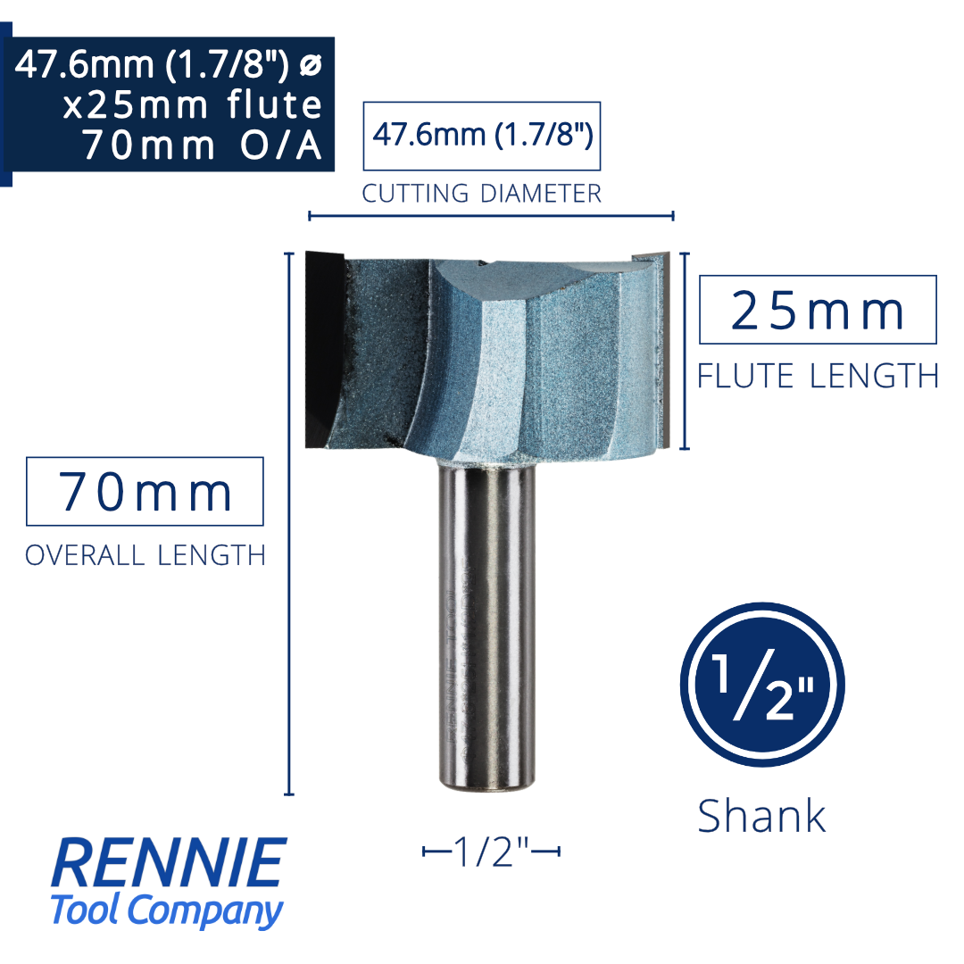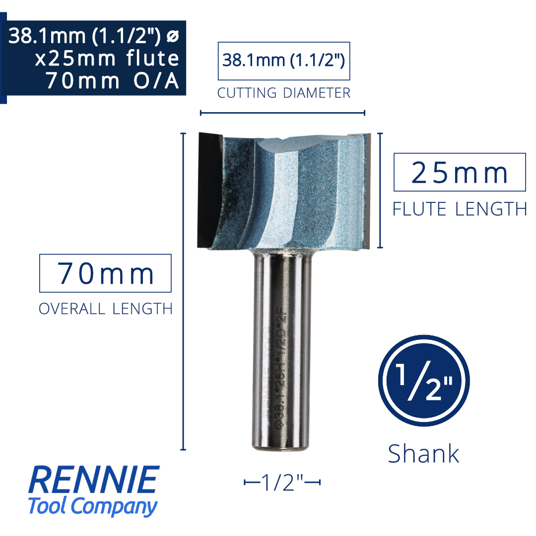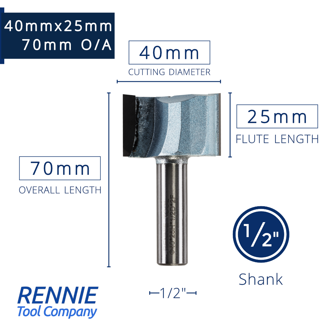 1/2" Shank TCT Straight Flute Router Bit (Sizes 19mm - 50.8mm) - Metric Sizes Fits Makita Festool Dewalt Trend Routers