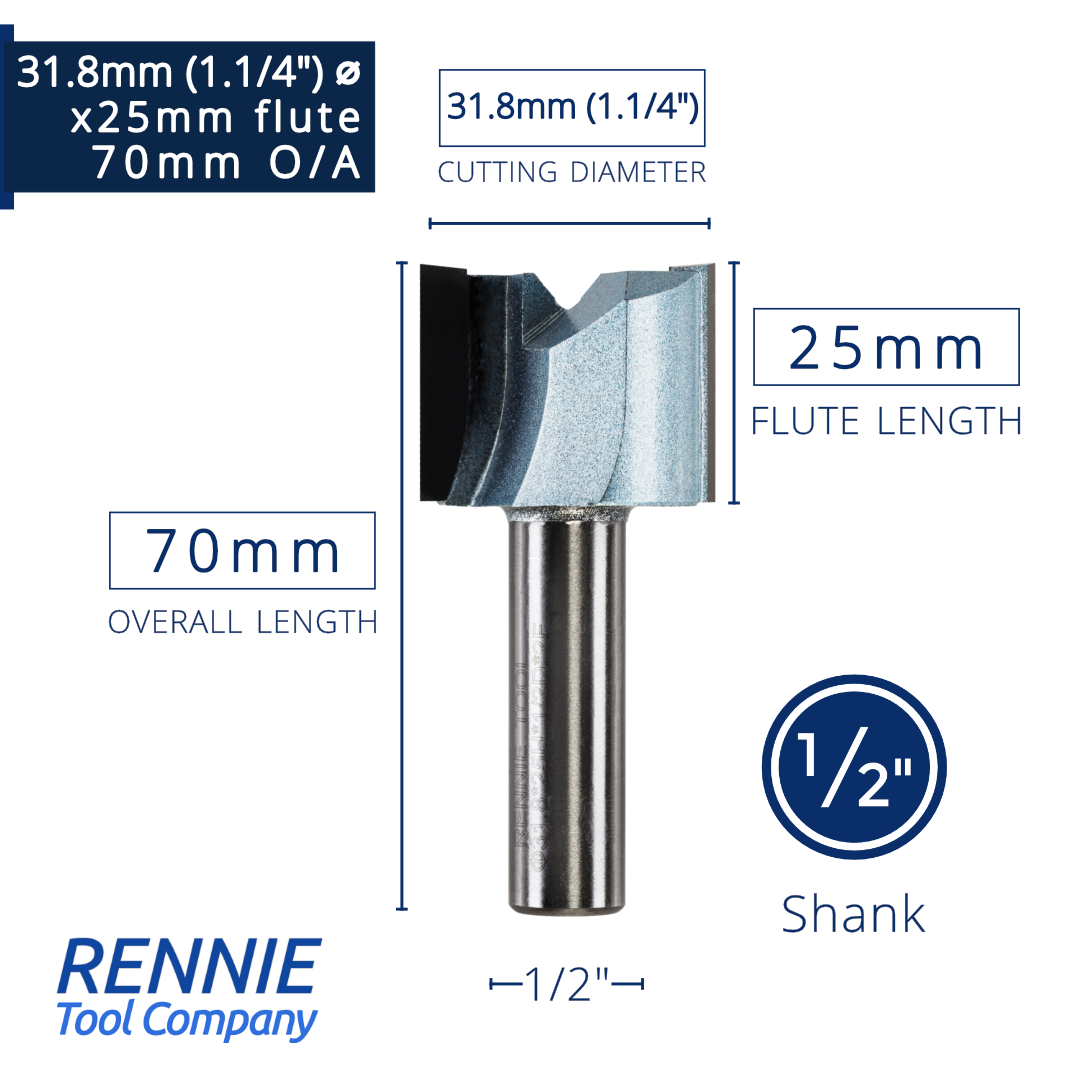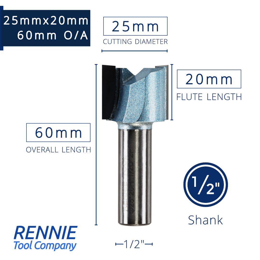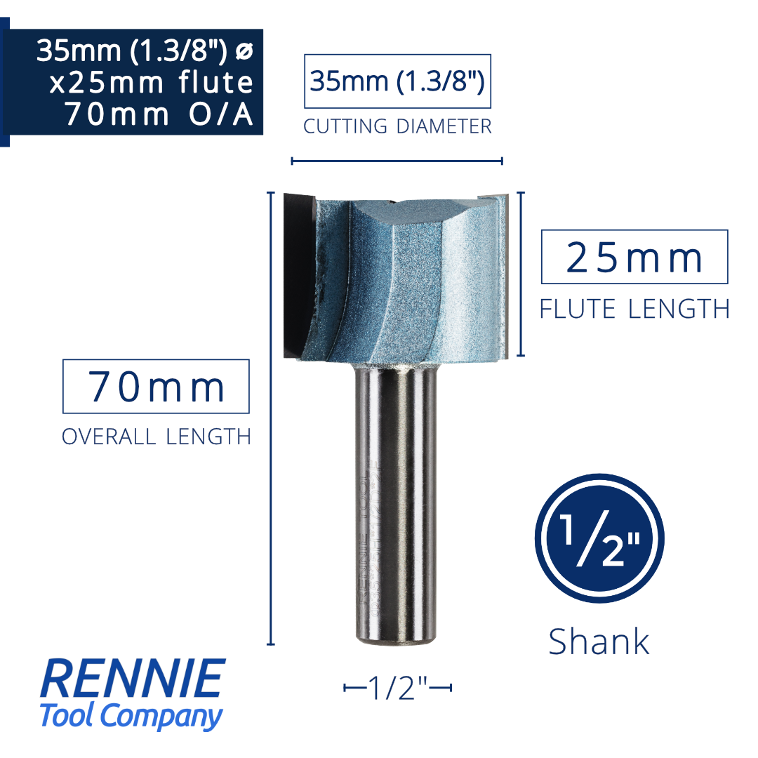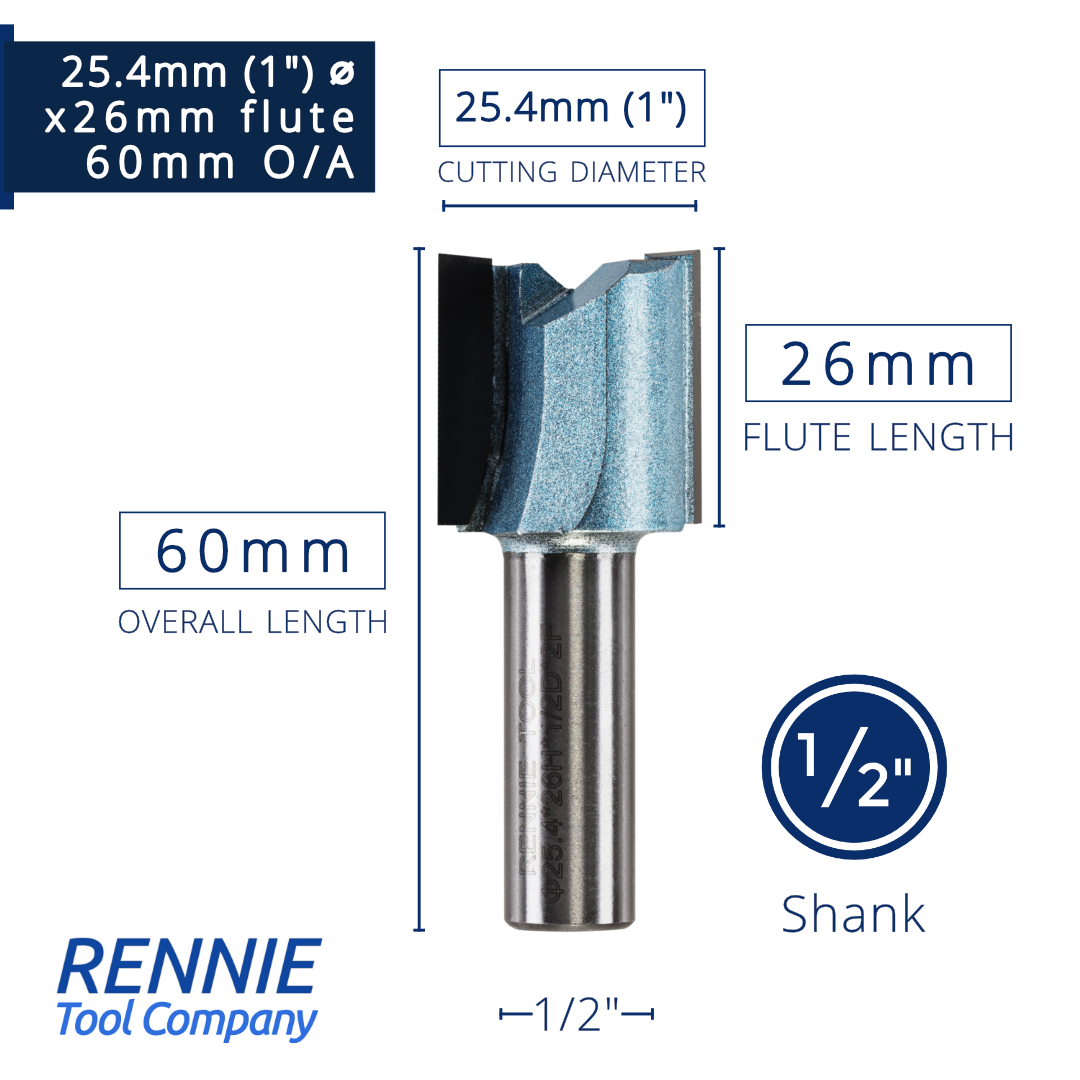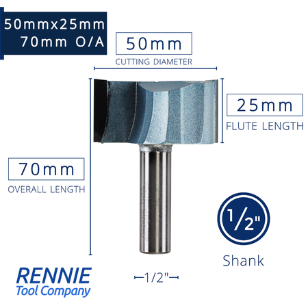 1/2" Shank TCT Straight Flute Router Bit (Sizes 19mm - 50.8mm) - Metric Sizes Fits Makita Festool Dewalt Trend Routers