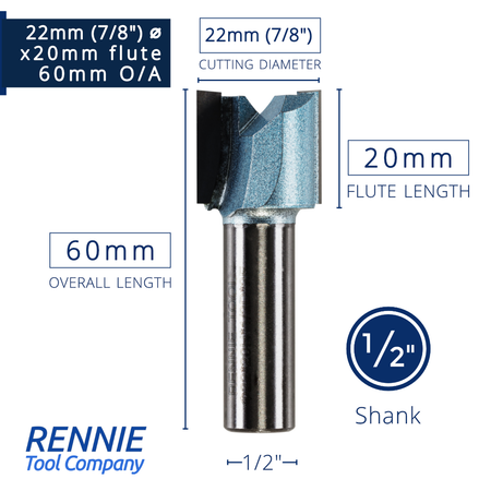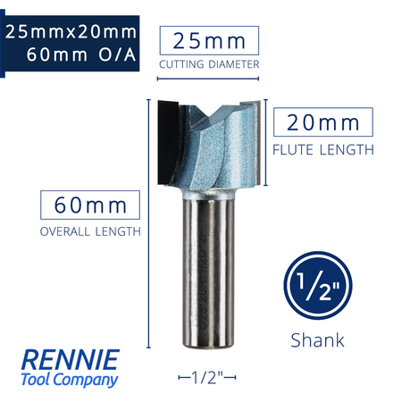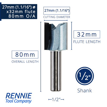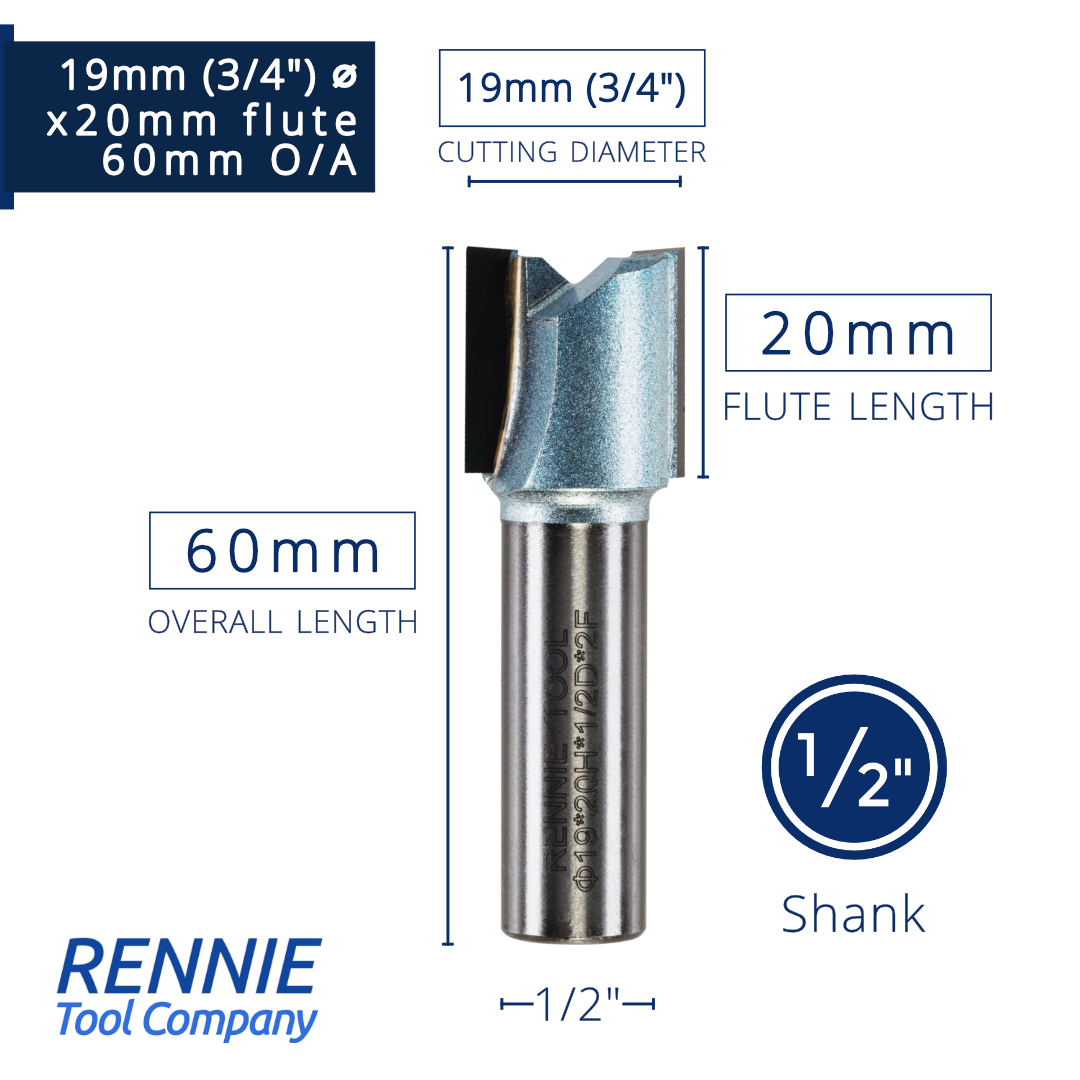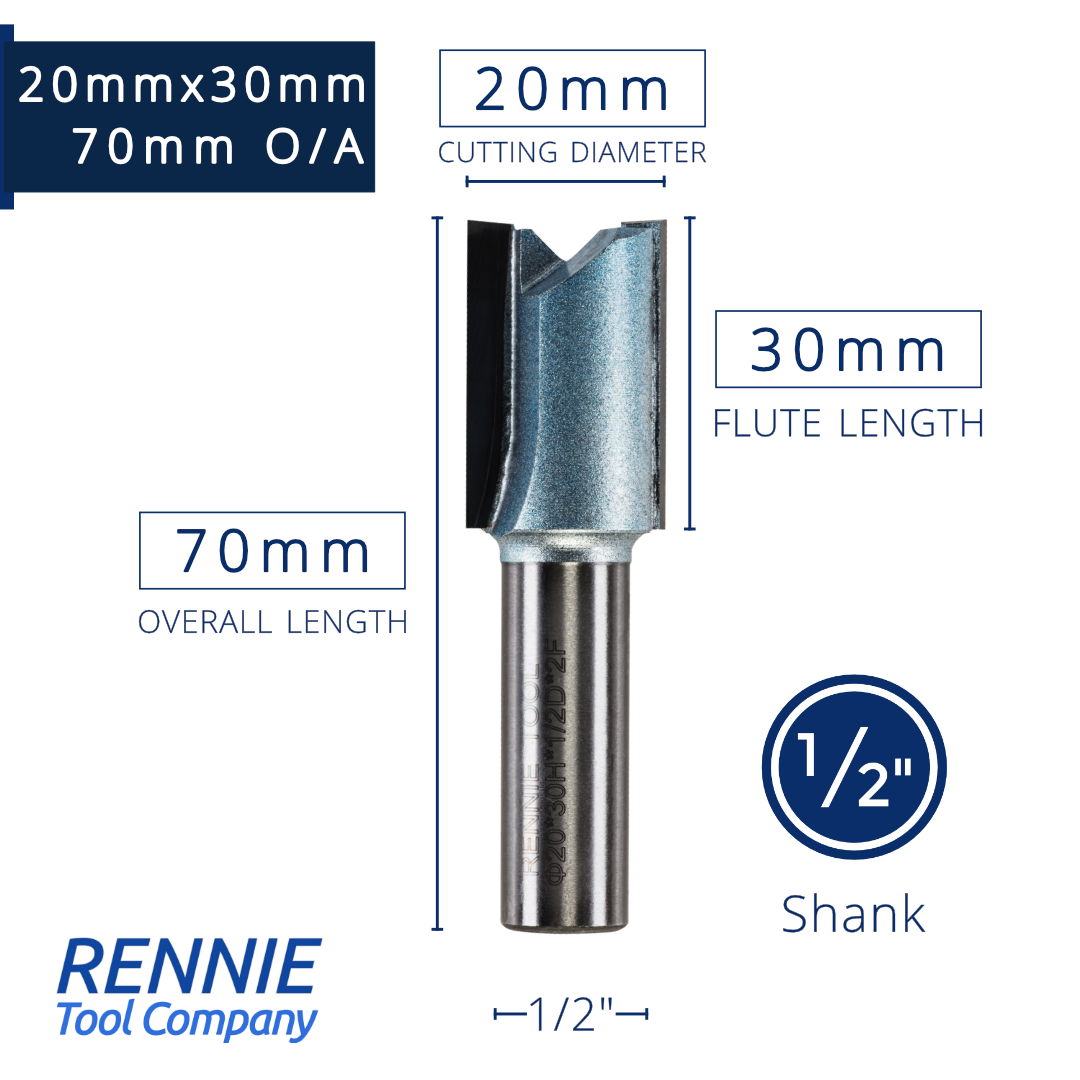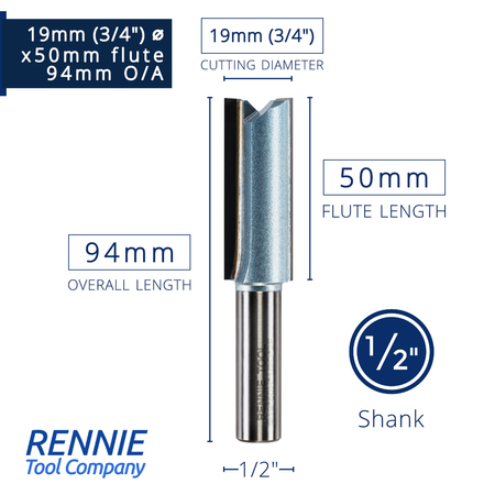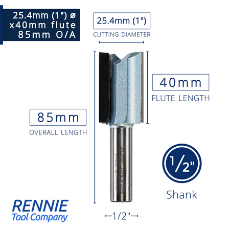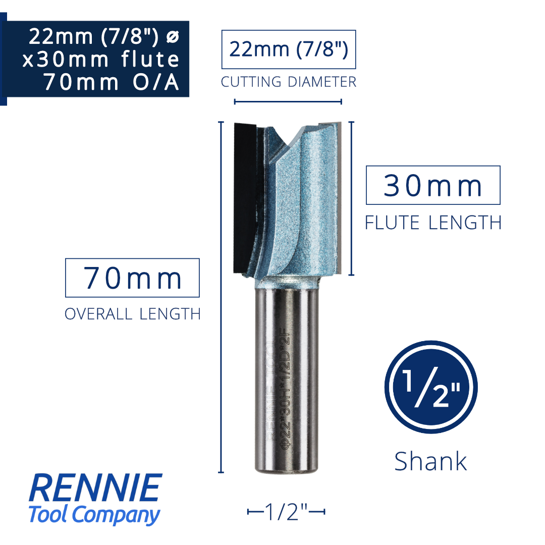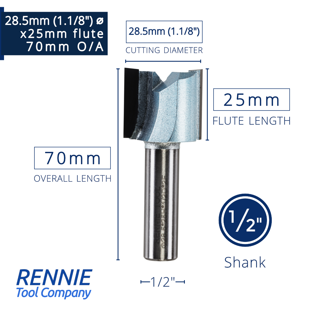 1/2" Shank TCT Straight Flute Router Bit (Sizes 19mm - 50.8mm) - Metric Sizes Fits Makita Festool Dewalt Trend Routers