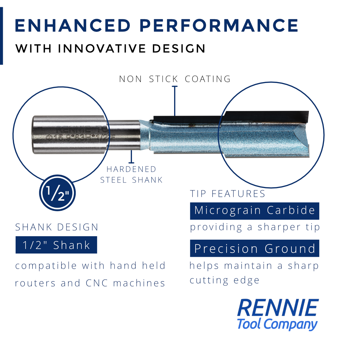 Straight router bits are the most widely used and versatile bits in woodworking. They are ideal for joinery such as box joints, lap joints, dados, rabbets, mortises and tenons. You can also use straight bits for trimming operations and CNC work.