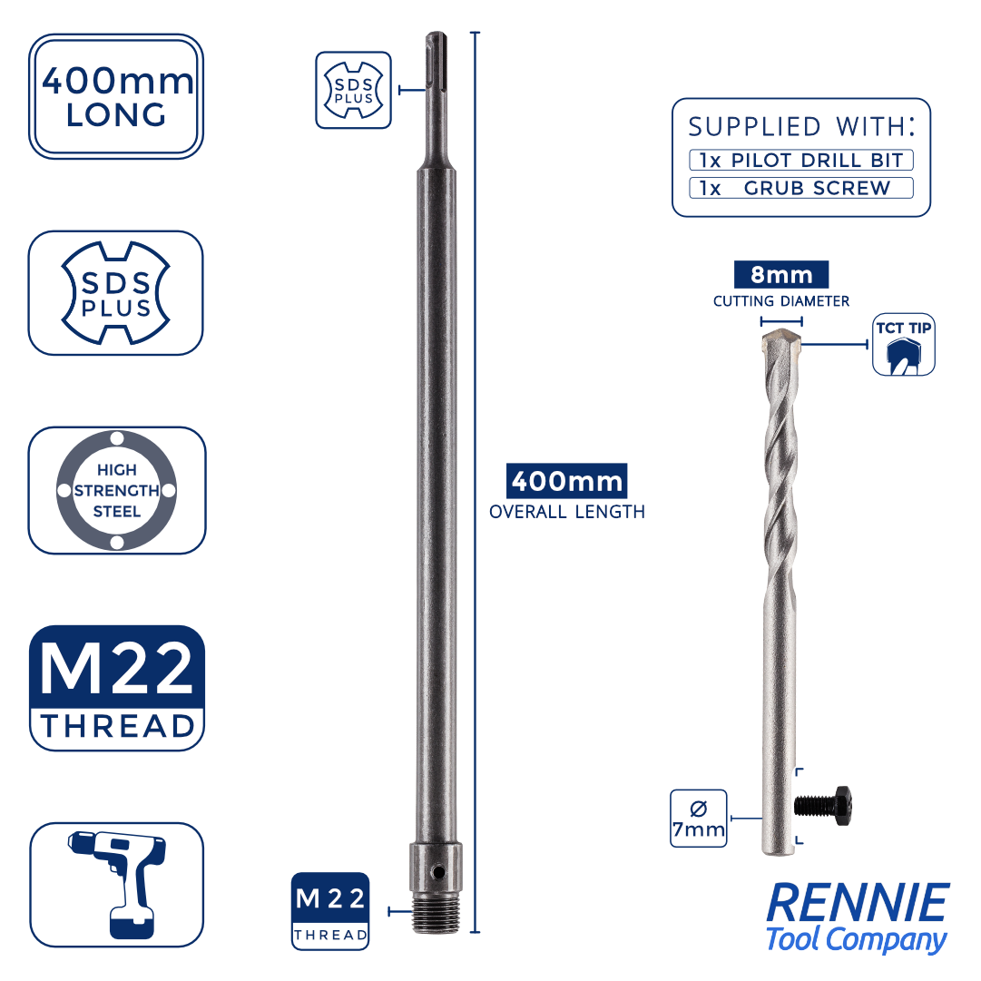 M22 Thread SDS Plus TCT Core Drill Adapters / Extension Bars