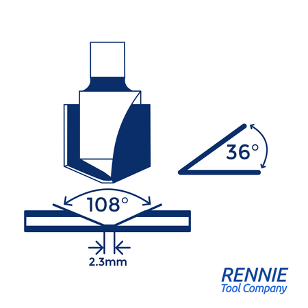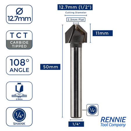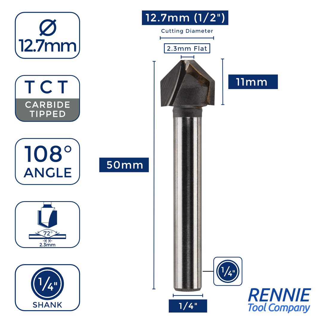 1/2" Diameter x 1/4" Shank x 108 Degree V-Groove Bit - For ACM, Dibond, Aluminium Folding etc