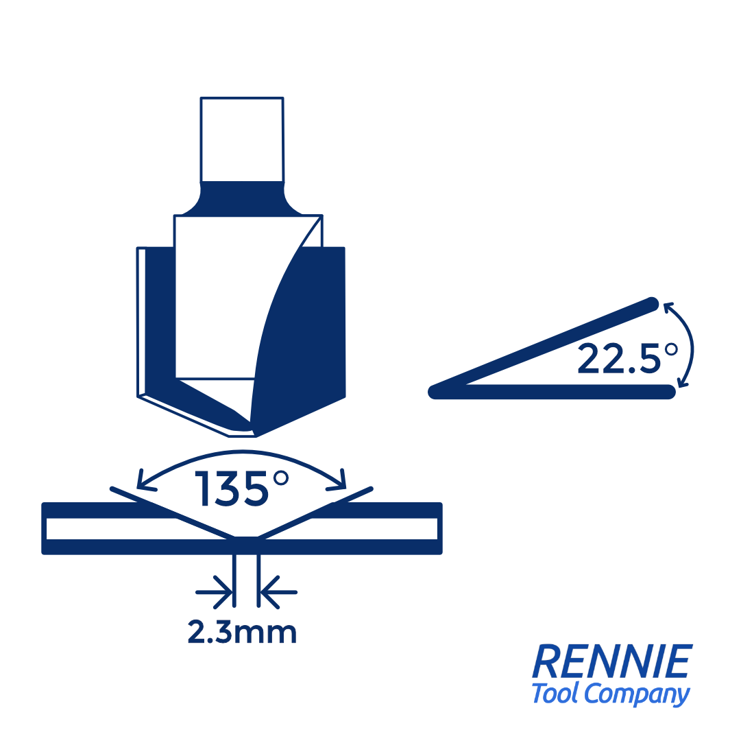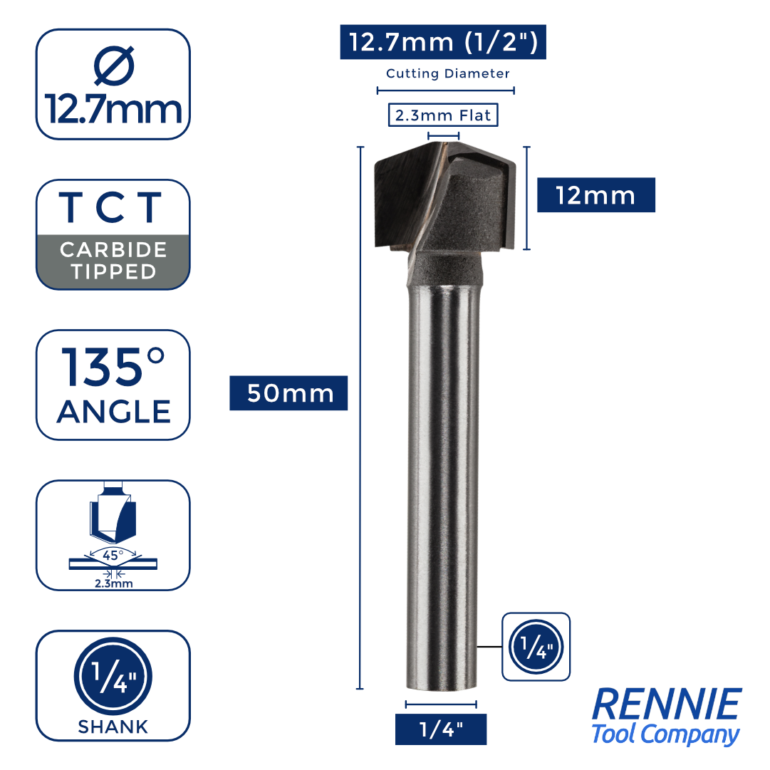 1/2" Diameter x 1/4" Shank x 135 Degree V Groove Router Bit For Folding / Scoring ACM Dibond Aluminium Etc