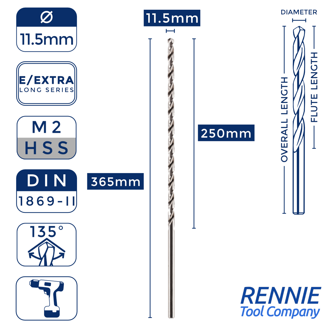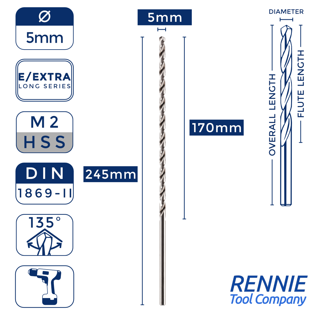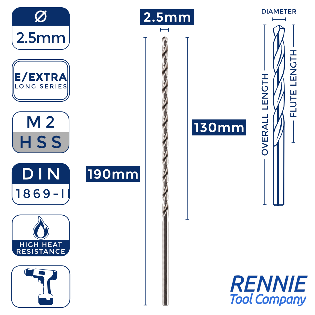 1 x DIN1869/2 HSS Extra Long Series Jobber Drill Bit M2 Fully Ground