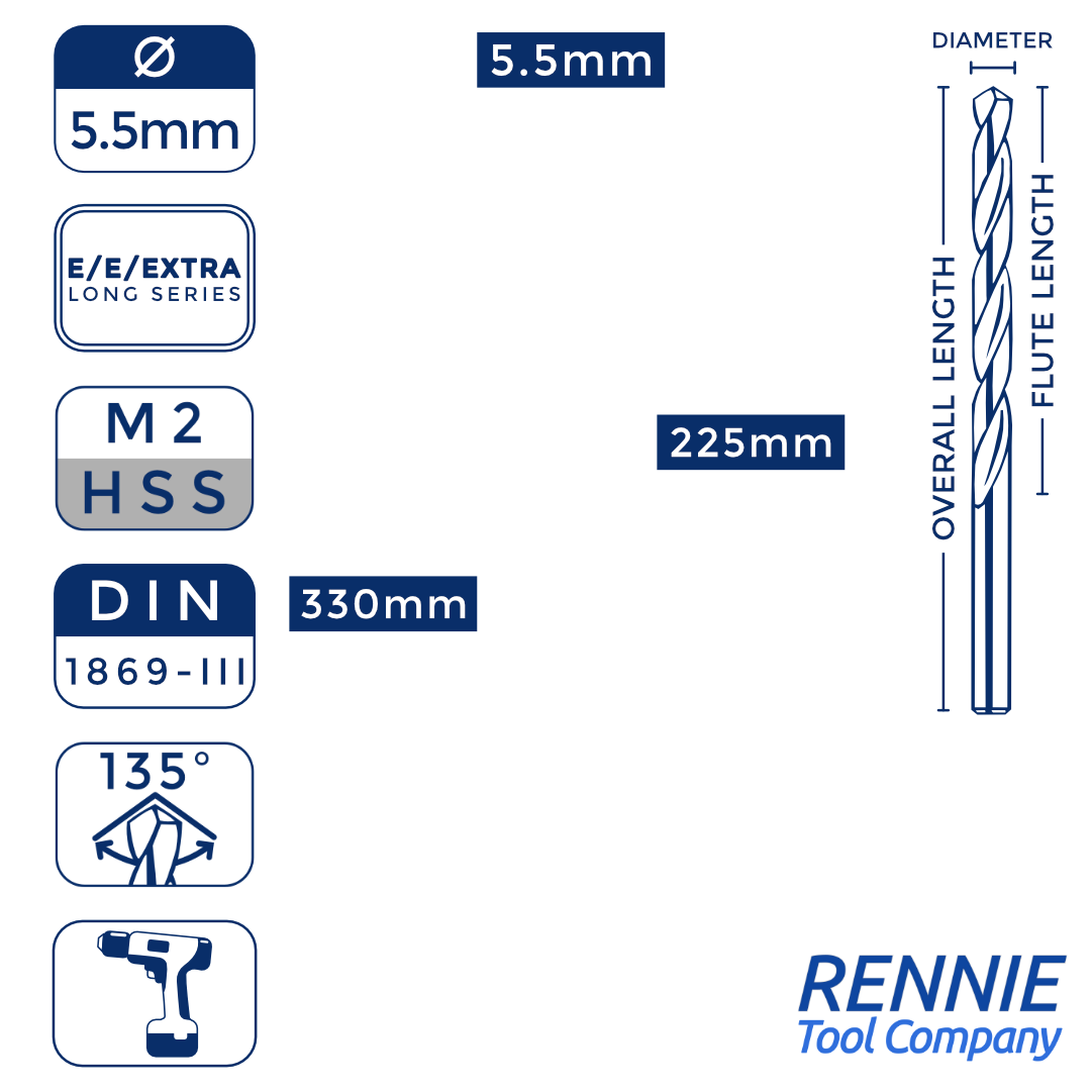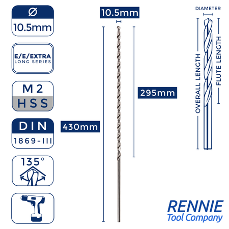 1 x DIN1869/3 HSS Extra Long Series Jobber Drill Bit M2 Fully Ground