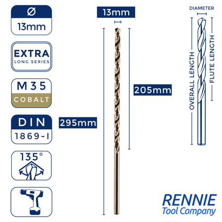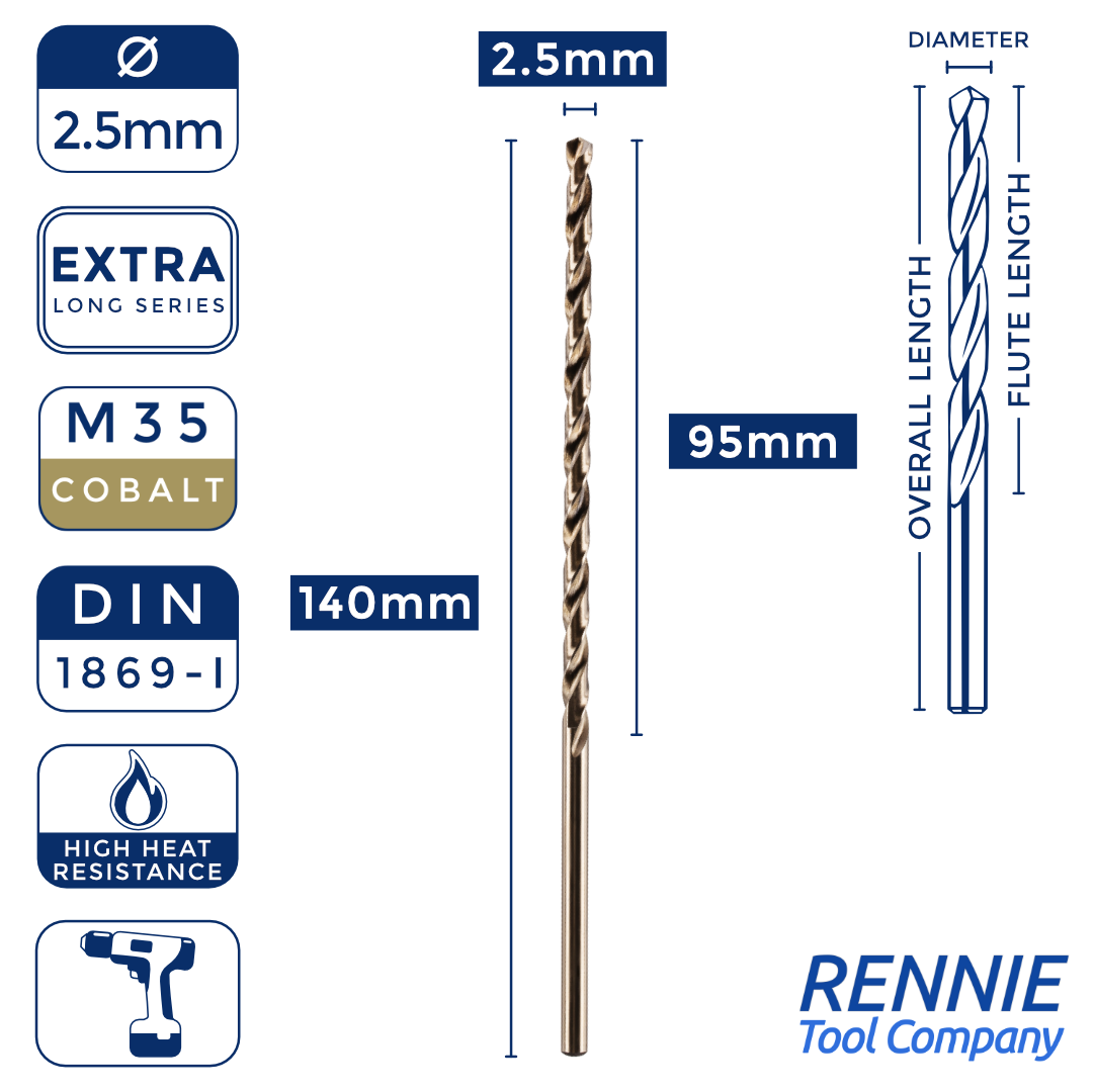 1 x DIN1869 HSS Cobalt Extra Long Series Jobber Drill Bit
