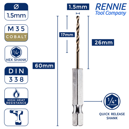 Upgrade your drilling game with our Hex Shank Cobalt Drill Bits, engineered for precision and durability. Manufactured from high-grade cobalt, these bits effortlessly cut through tough materials like stainless steel, cast iron, and more. The 1/4" hex shank design ensures a secure grip in your drill chuck, minimizing slippage and enhancing control during drilling operations. Tackle your projects with confidence using these professional-grade cobalt drill bits that promise longevity and exceptional performance.
