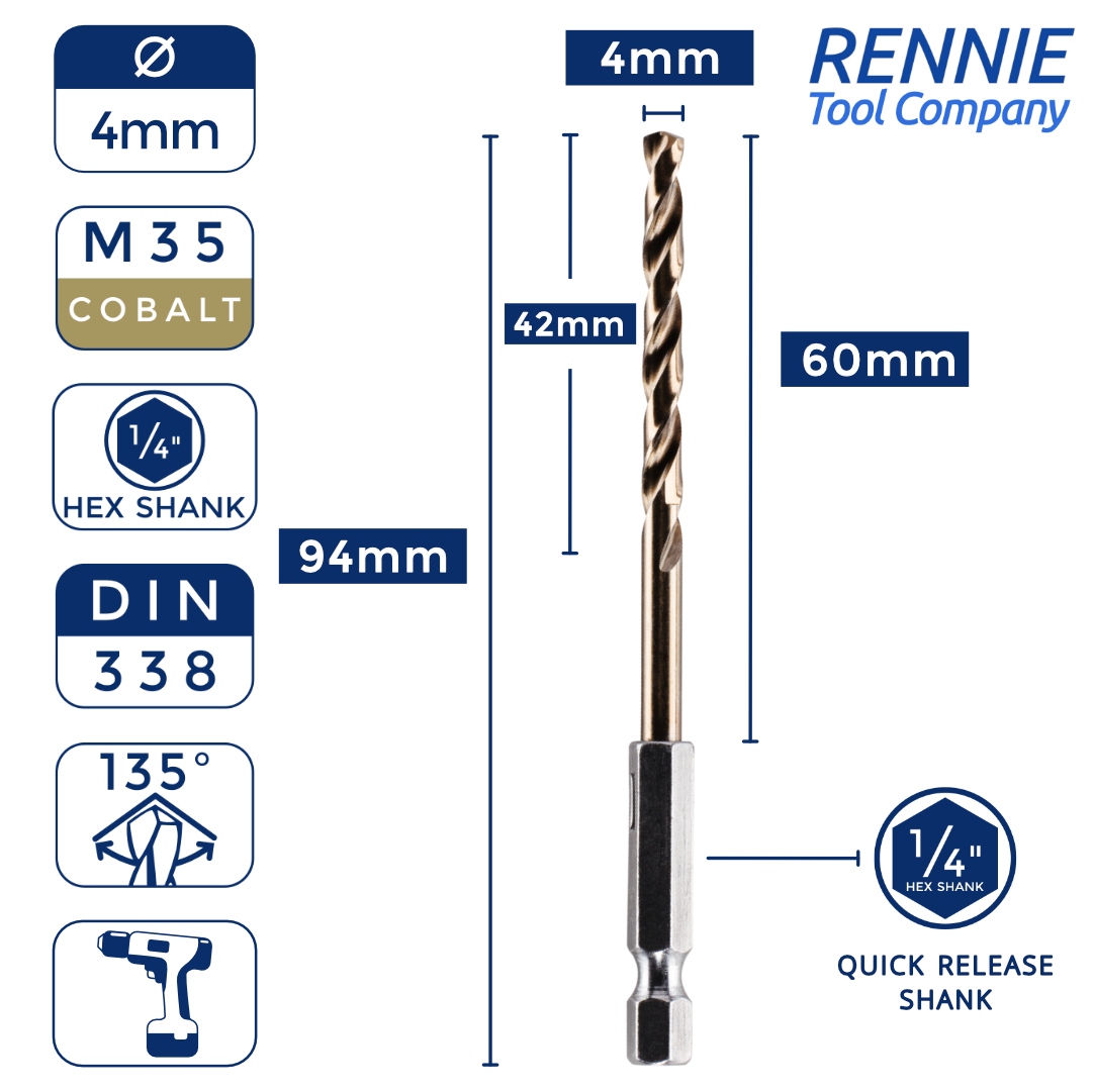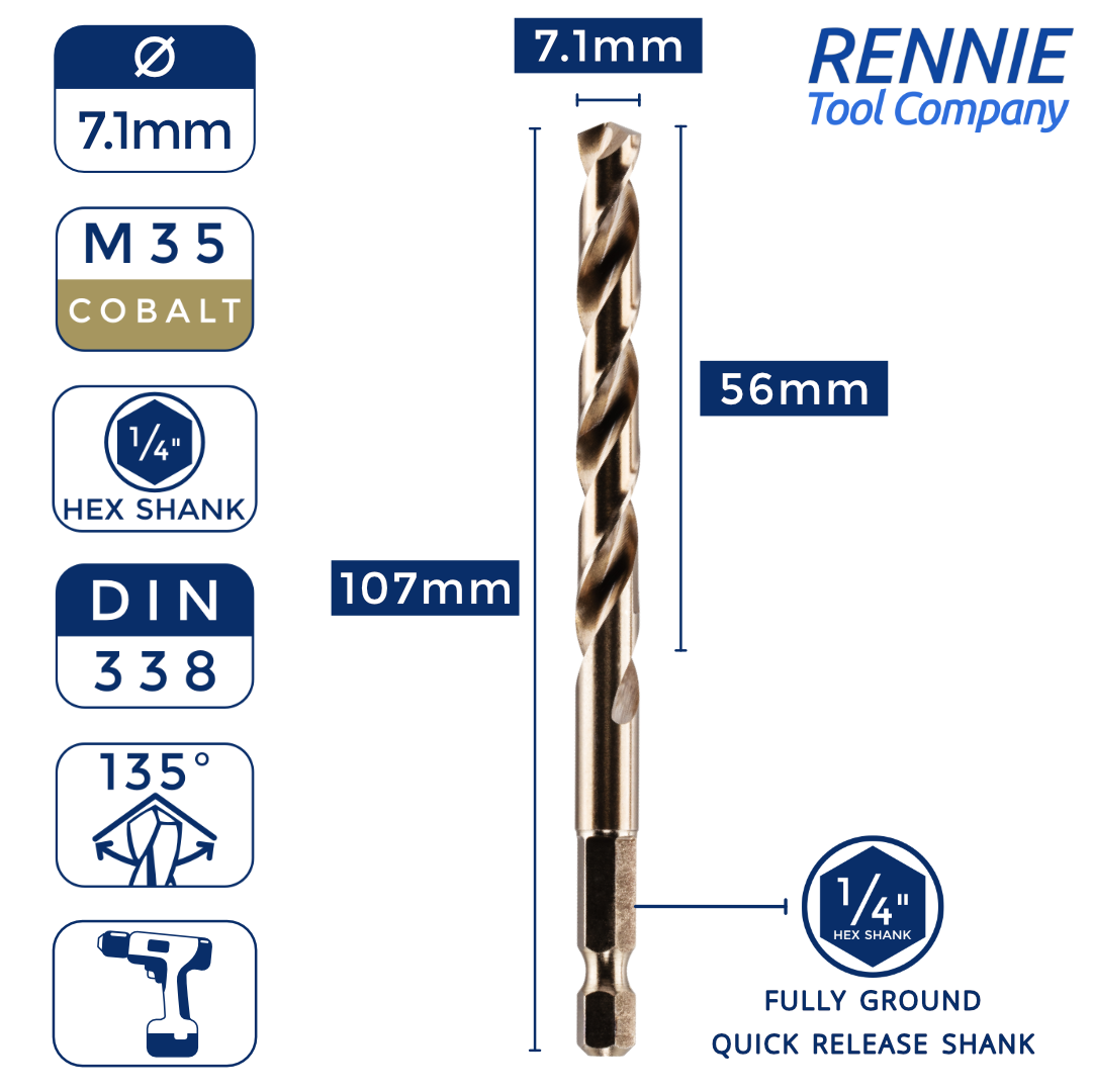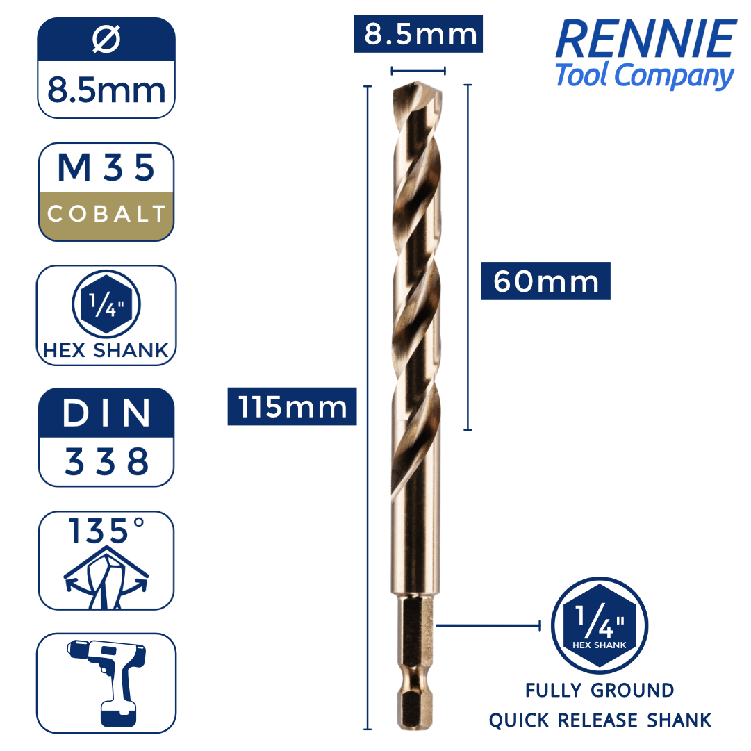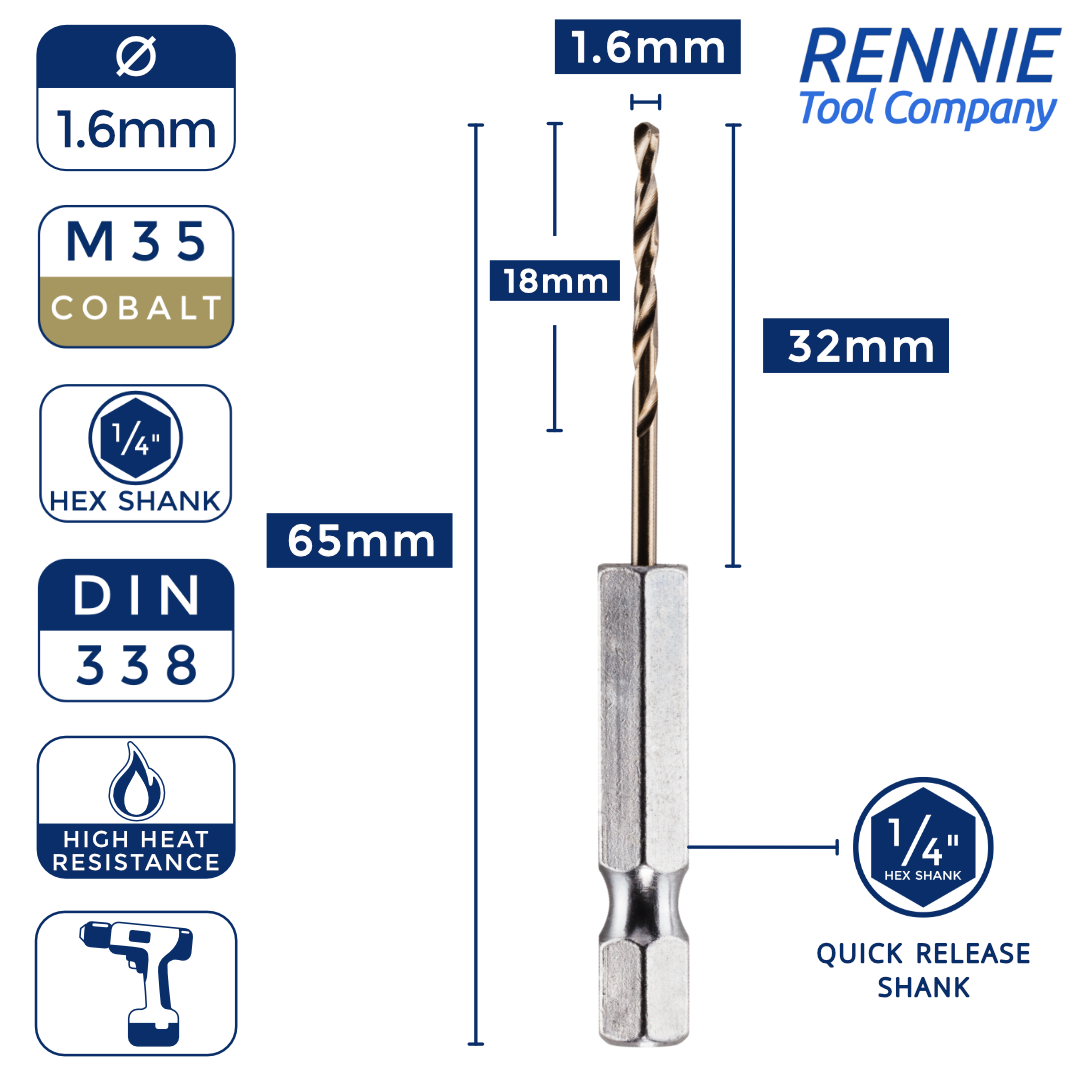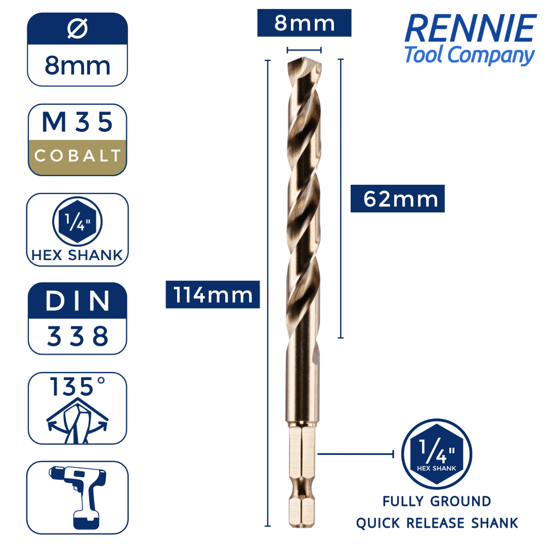 Hex Shank Cobalt Jobber Drill Bits For Hard Metals & Stainless Steel
