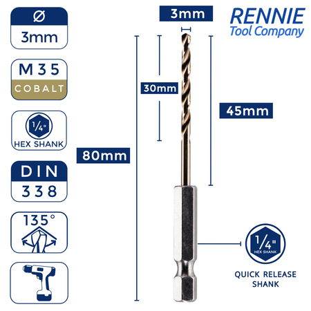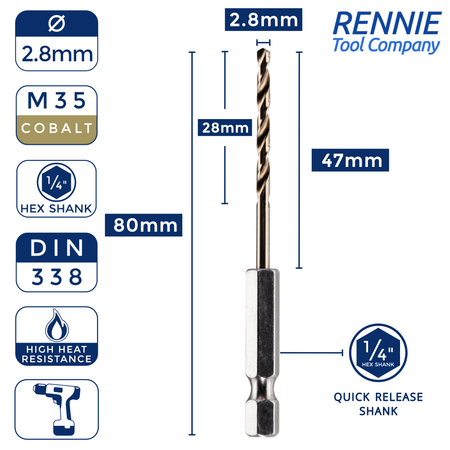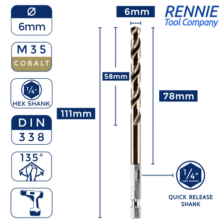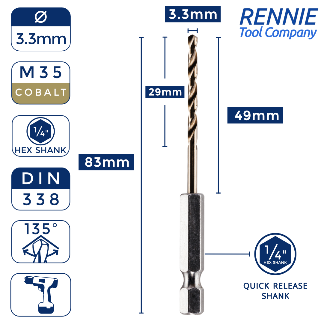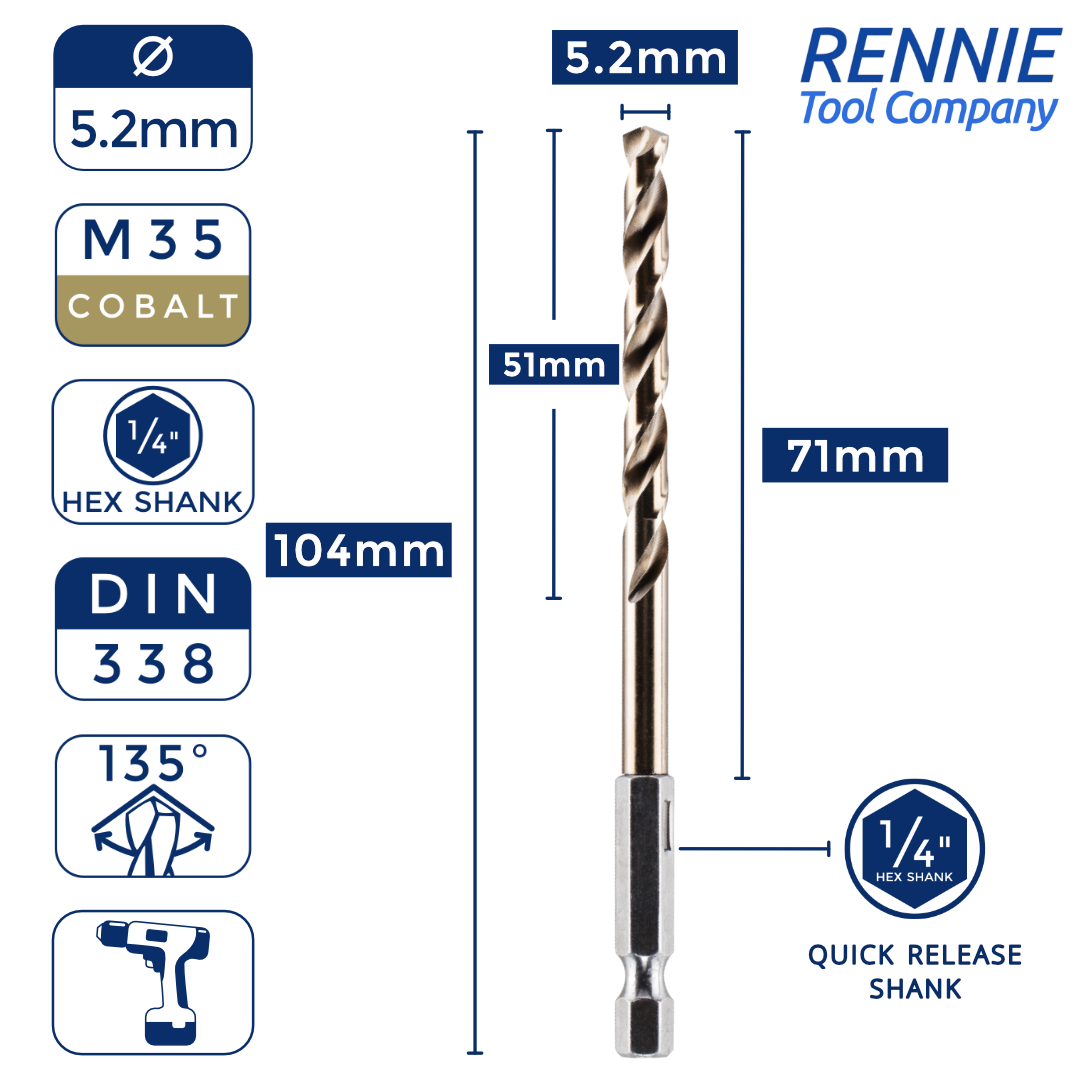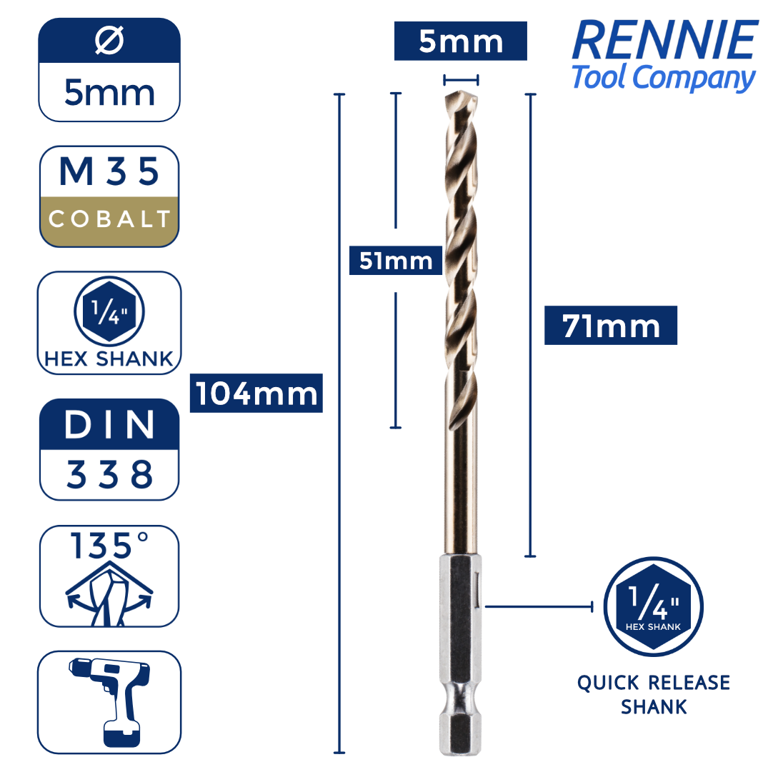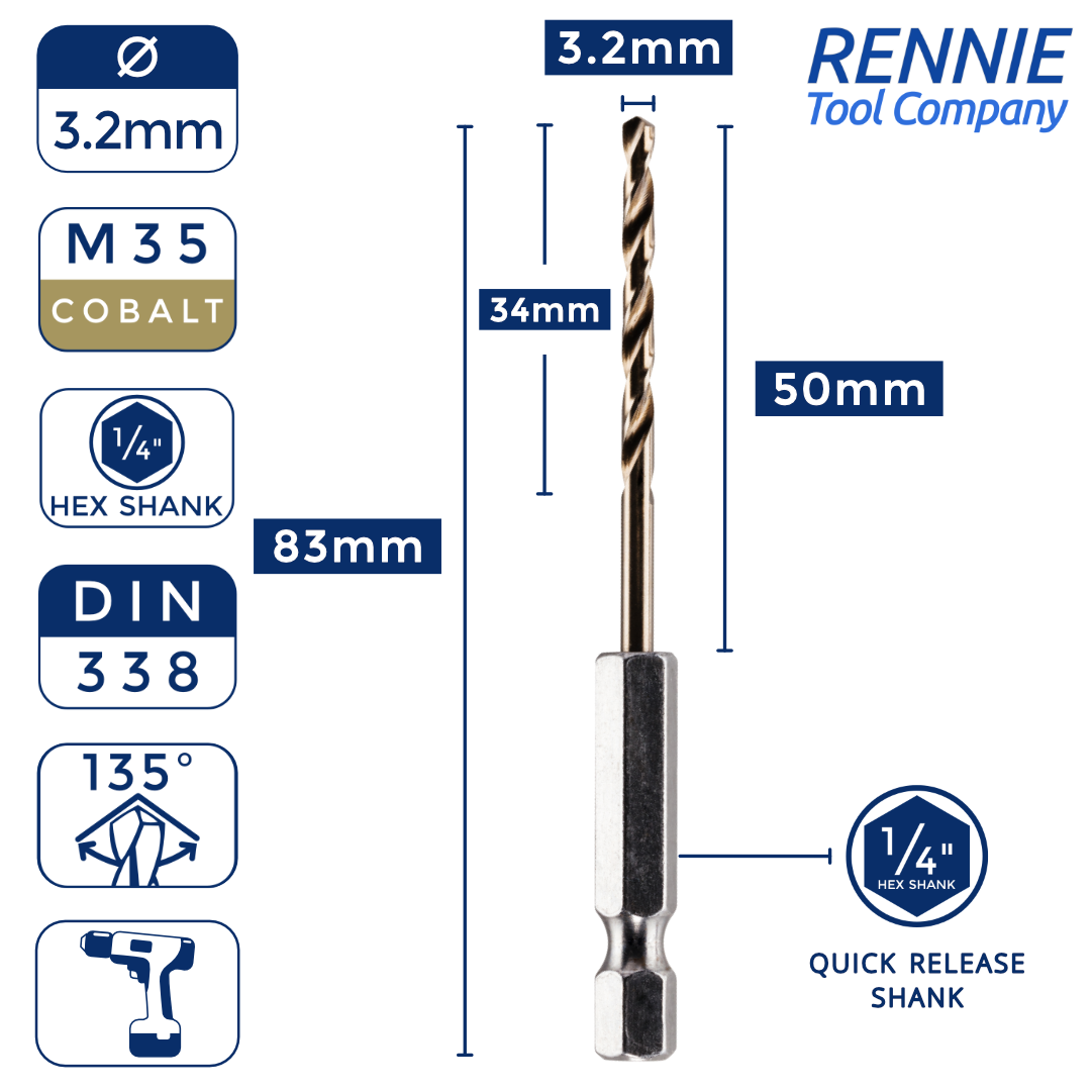 Hex Shank Cobalt Jobber Drill Bits For Hard Metals & Stainless Steel