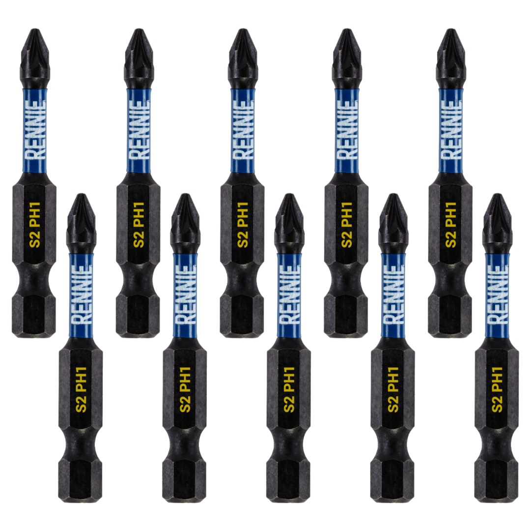 - 10 piece Rennie Tool Company PH1 Magnetic Impact Driver Bits Set. These Phillips No.1 impact driver drill bits are 50mm (2") overall length. They are supplied in a plastic storage case. Manufactured using high quality S2 steel and using the latest manufacturing technologies.