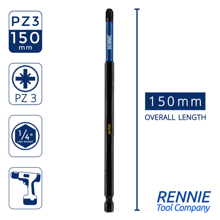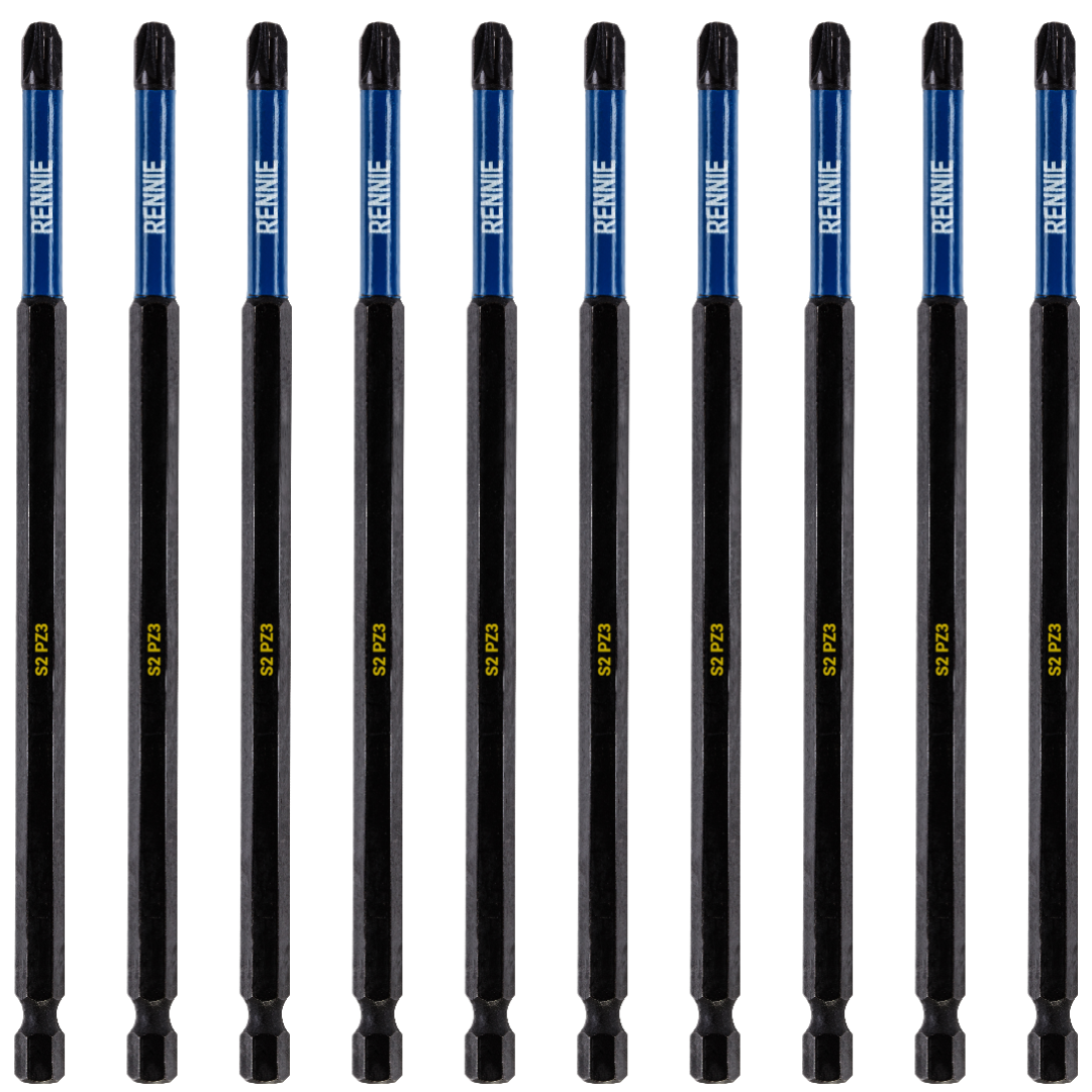 - This screwdriver bits set includes 10 PZ3 impact bits that are an overall length of 150mm. They are supplied in a plastic storage case. These long pz3 impact driver bits are manufactured using high quality S2 steel and using the latest manufacturing technologies.