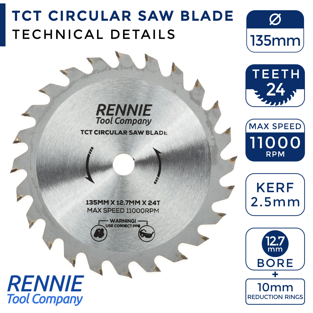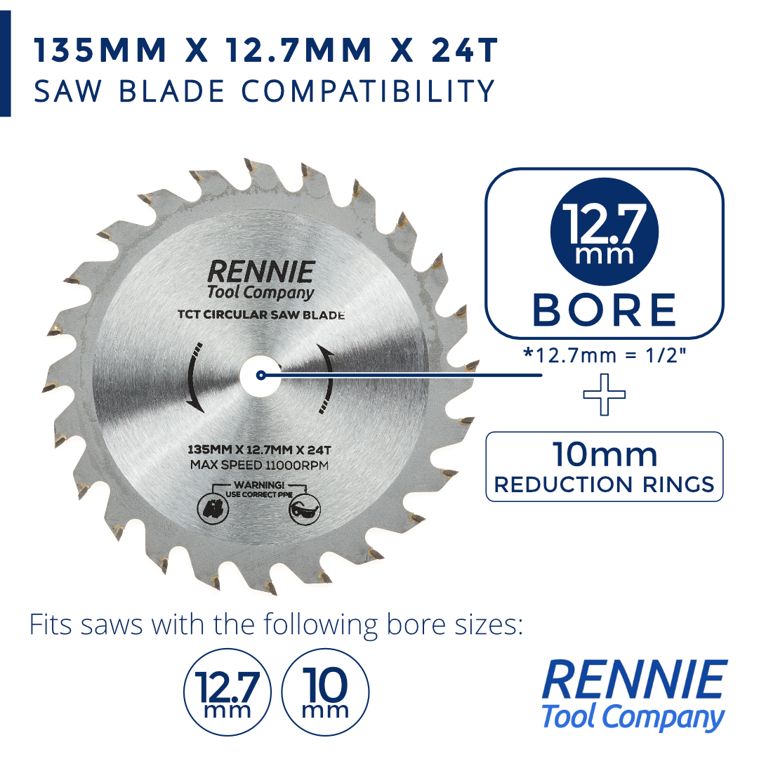 These 135mm TCT tipped circular saw blades are compatible with Bosch Black & Decker Makita and the Dewalt Circular saw etc as long as your saw has a 12.7mm or 10mm bore this blade will fit.