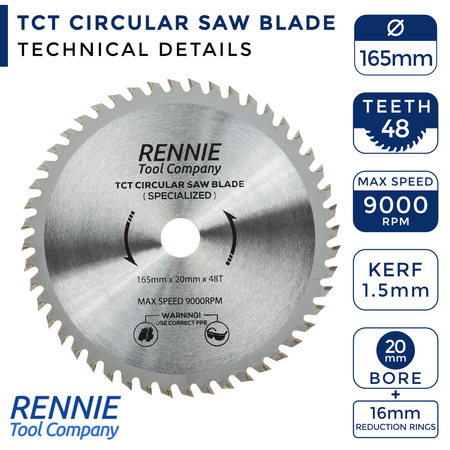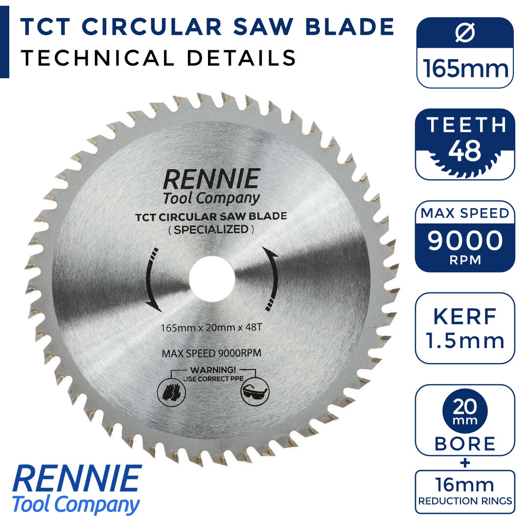 165mm x 48T TCT Cordless Circular Blades (48 Teeth)