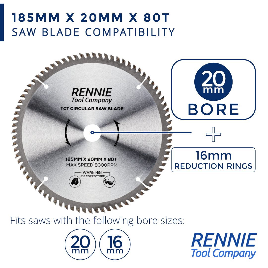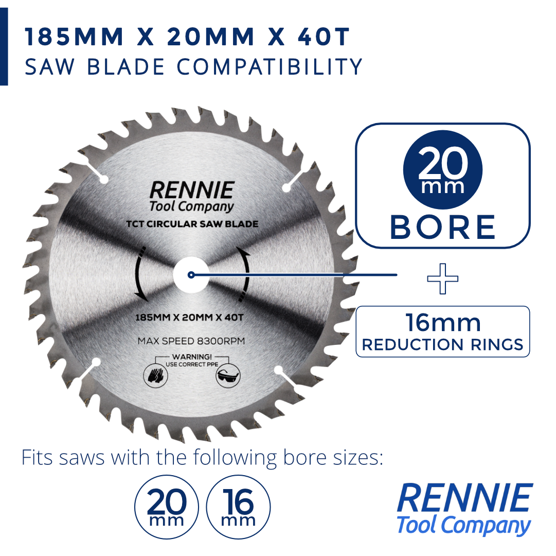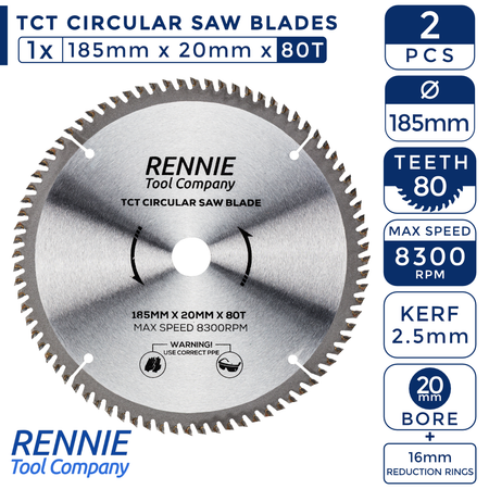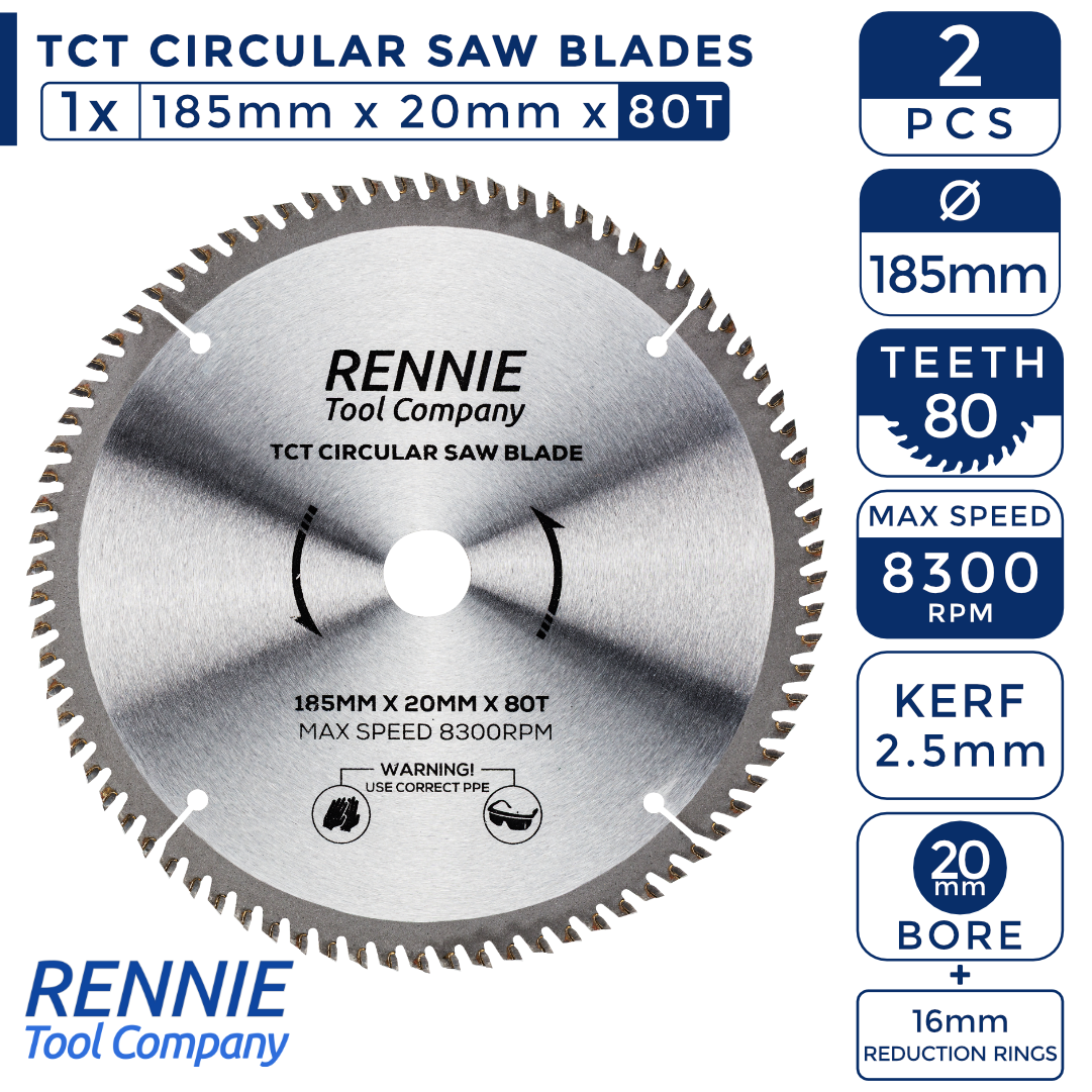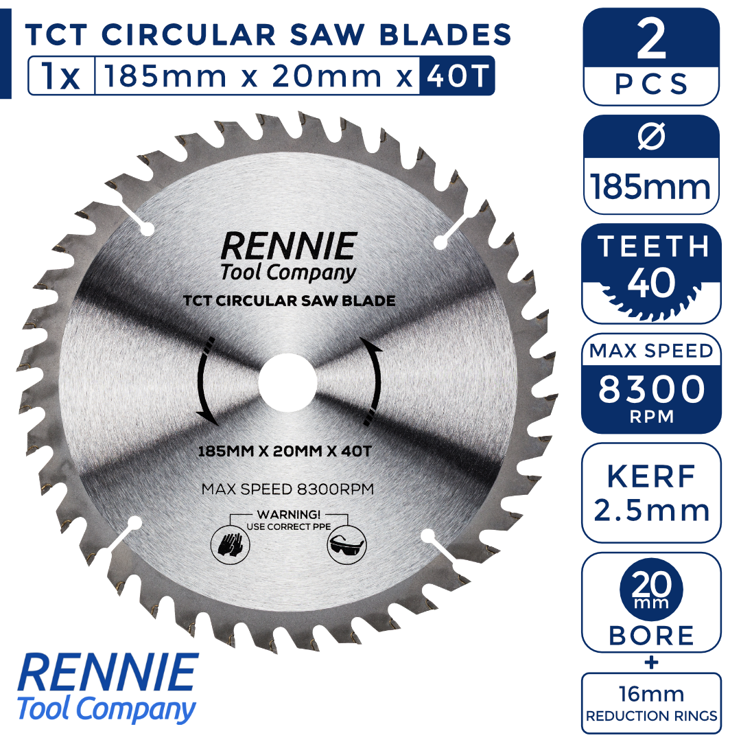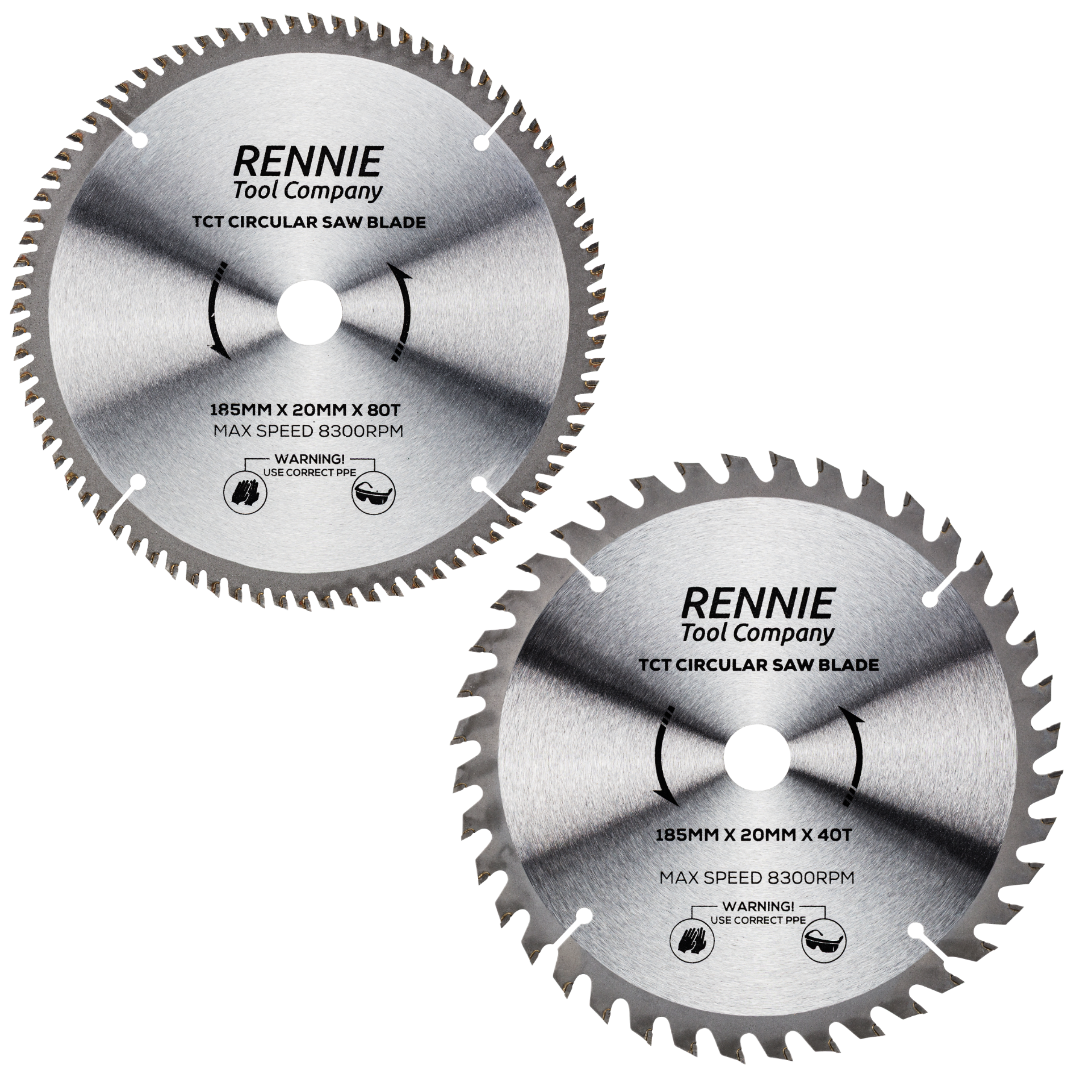 2 Pack - 185mm x 20mm Bore x 40T & 80T TCT Saw Blade Fits Evolution Rage Circular Saws Etc