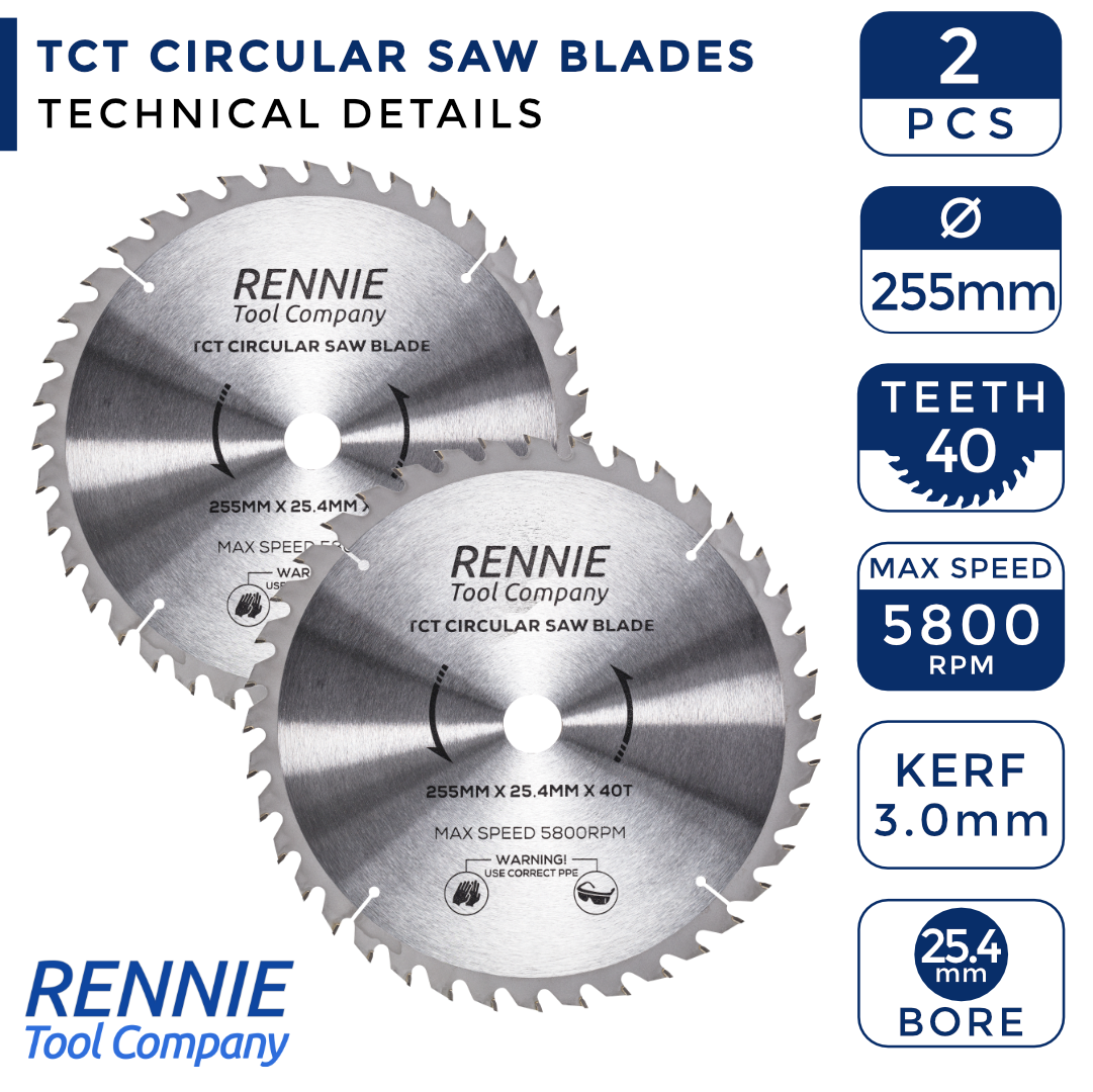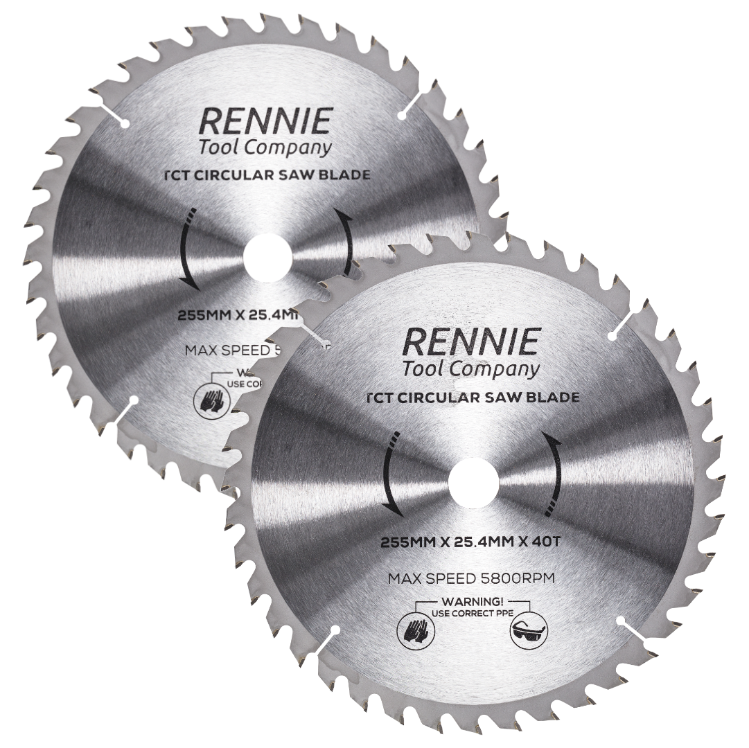 2 Pack - 255mm x 25.4mm Bore x 40T TCT Circular Saw Blades For Evolution Saws