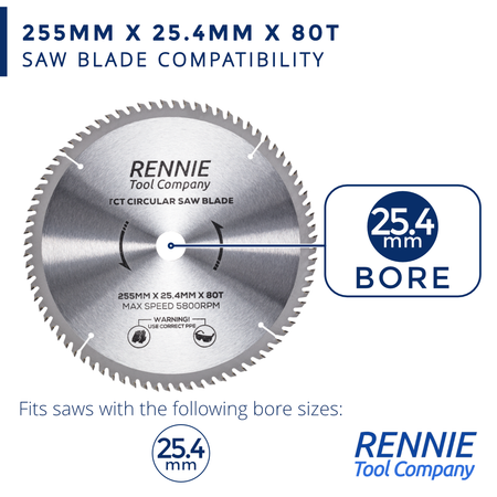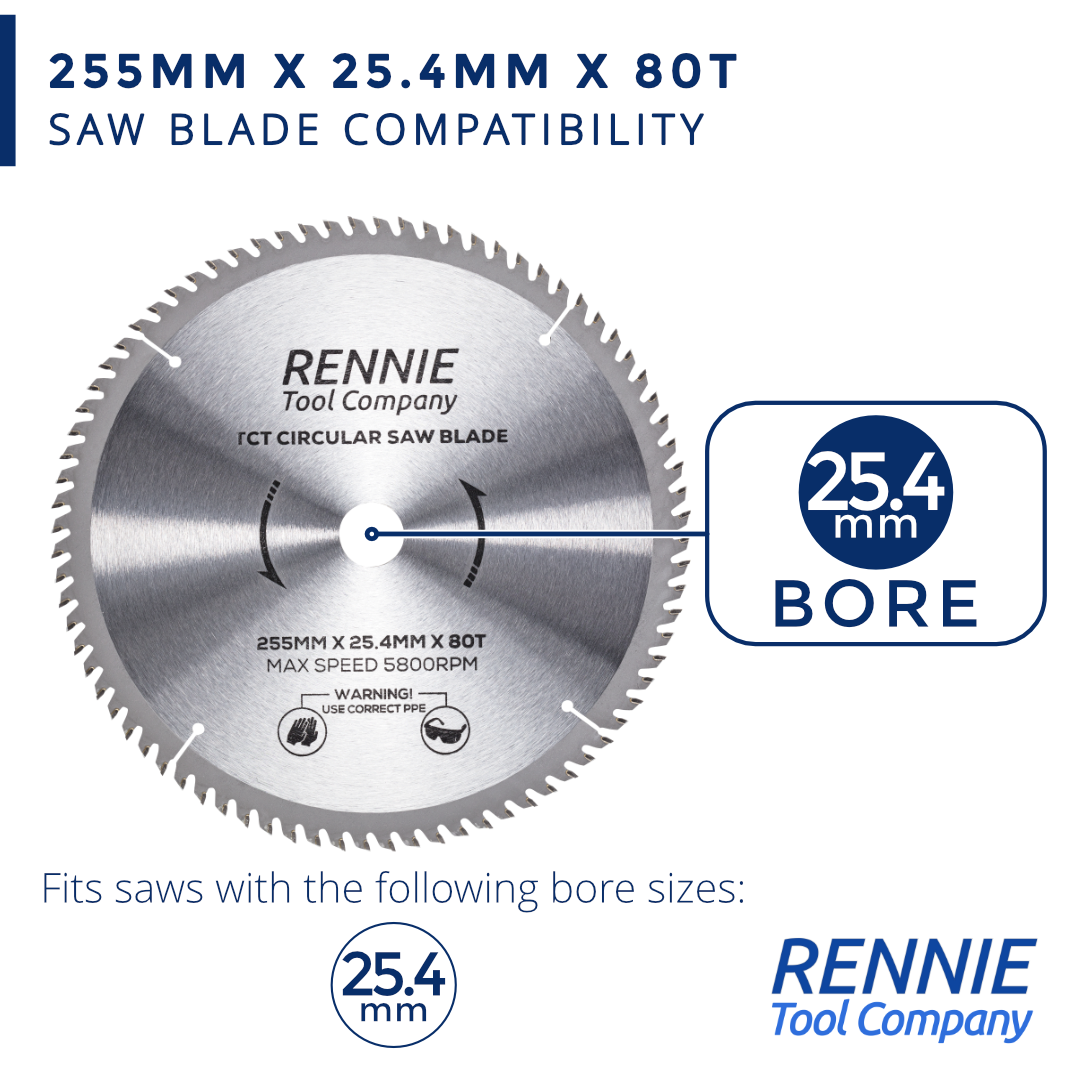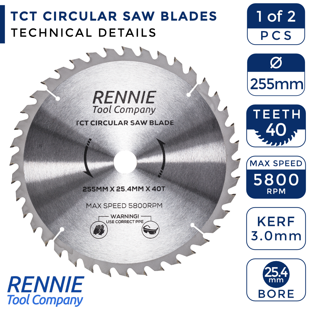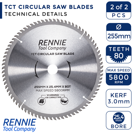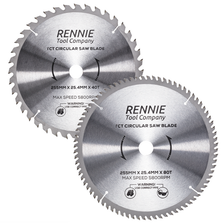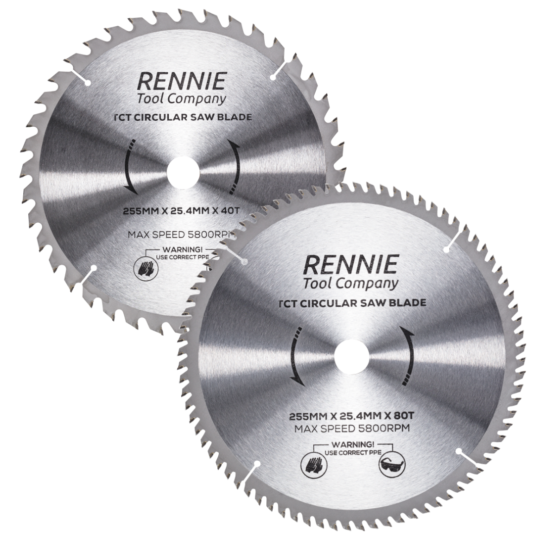 2-Pack 255mm x 40T & 80T x 25.4mm Bore TCT Circular Wood Saw Blades 255mm, Fits Evolution Saws