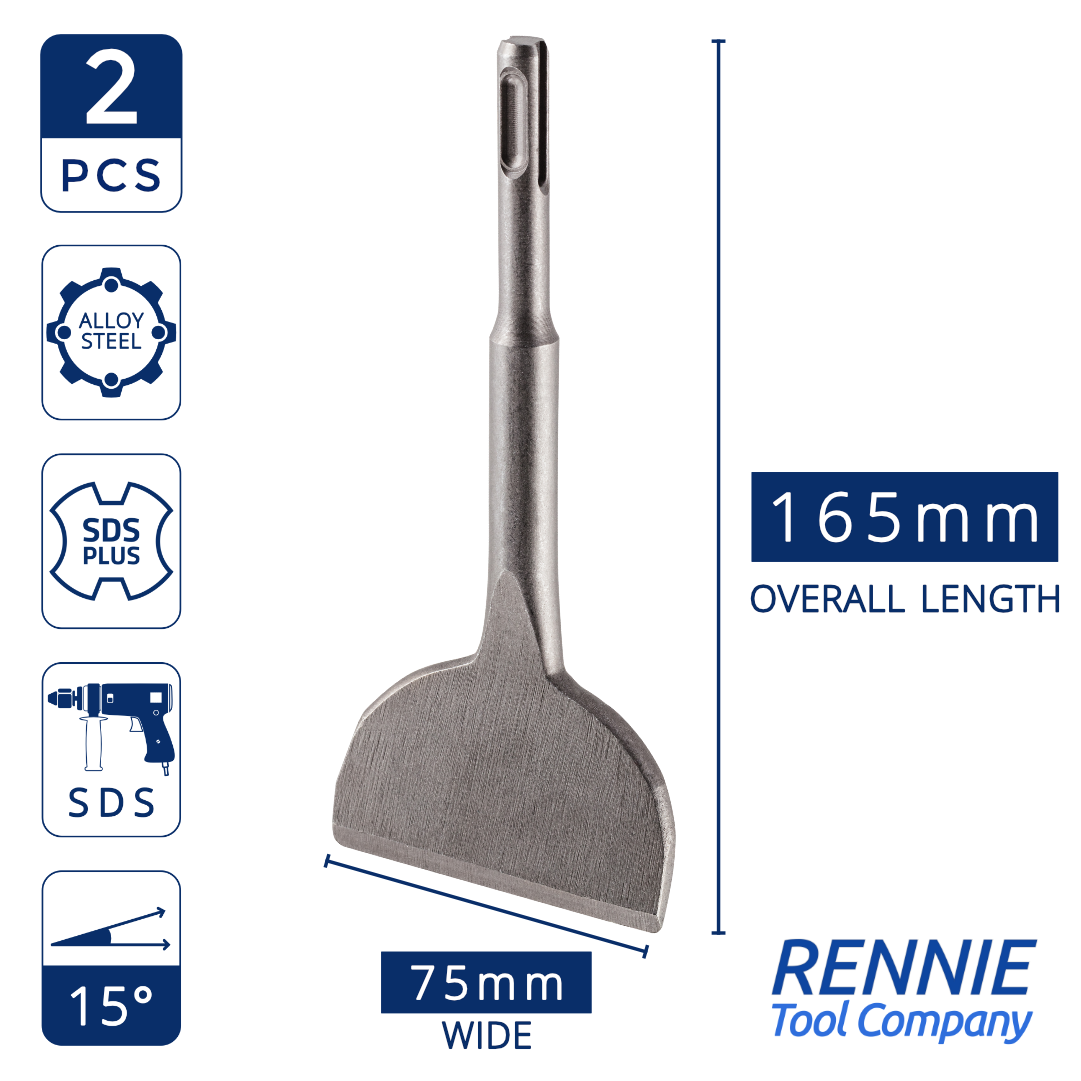 2 Pack x SDS Plus 75mm Wide Angled Spade Chisels For Tiles