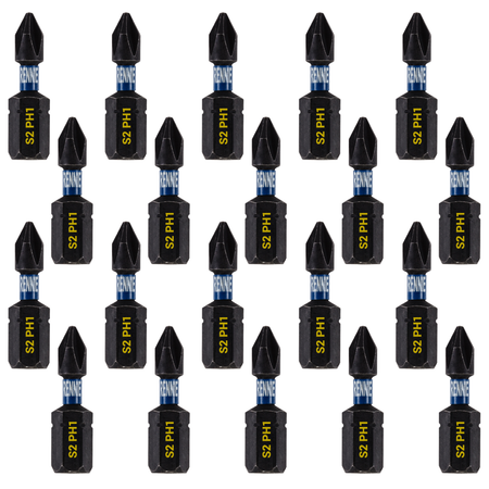 20 Pack PH1 x 25mm Impact Screwdriver Bits Phillips #1