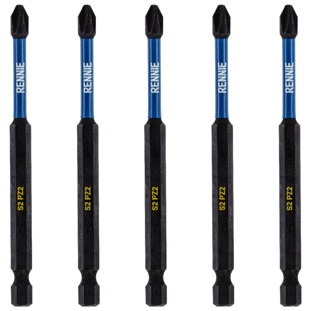 - This screwdriver bits set includes 5 PZ2 impact bits that are an overall length of 100mm. They are supplied in a plastic storage case. These long pz2 impact driver bits are manufactured using high quality S2 steel and using the latest manufacturing technologies.