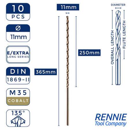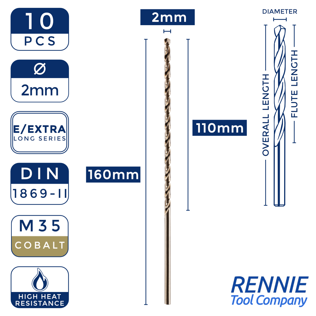 Box Of 10 x DIN1869/2 HSS Cobalt Extra Long Series Jobber Drill Bit