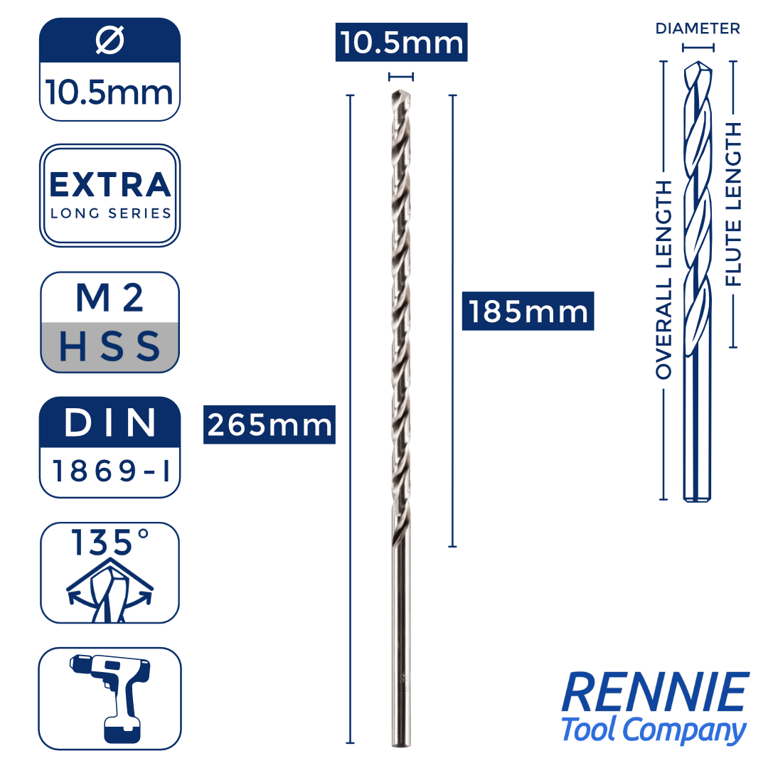1 x DIN1869 HSS Extra Long Series Jobber Drill Bit M2 Fully Ground