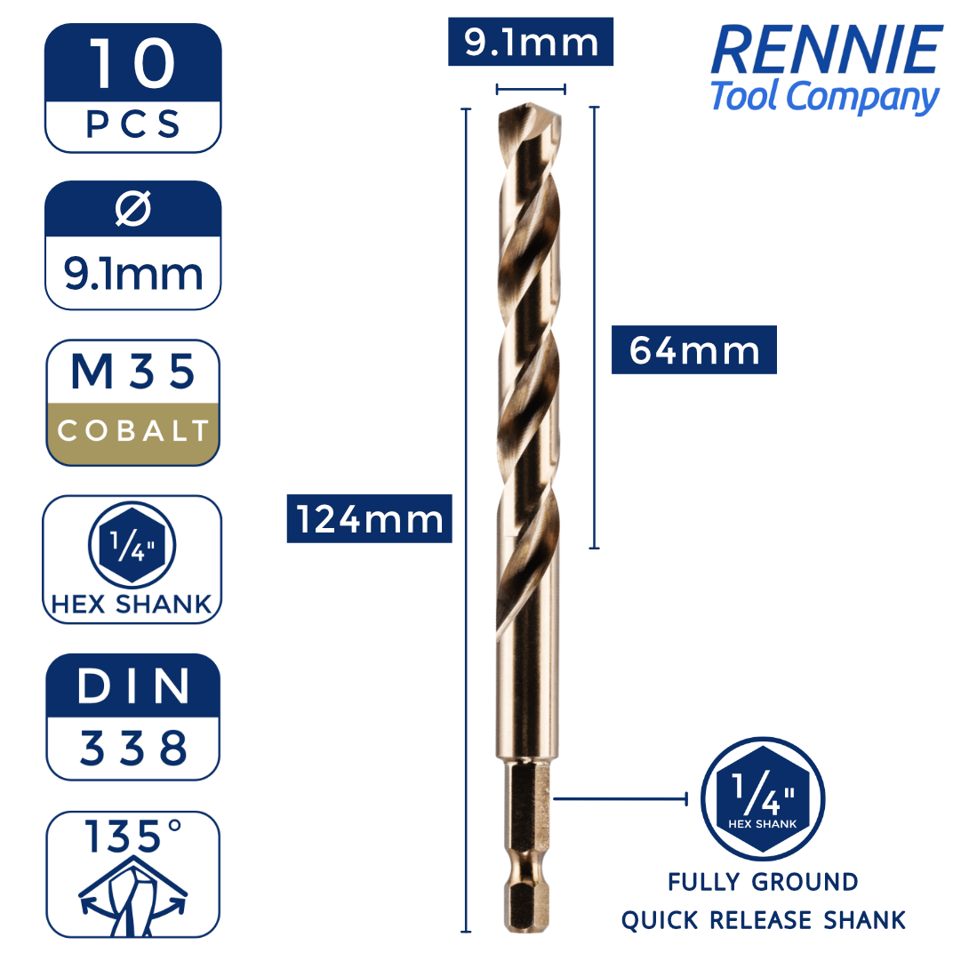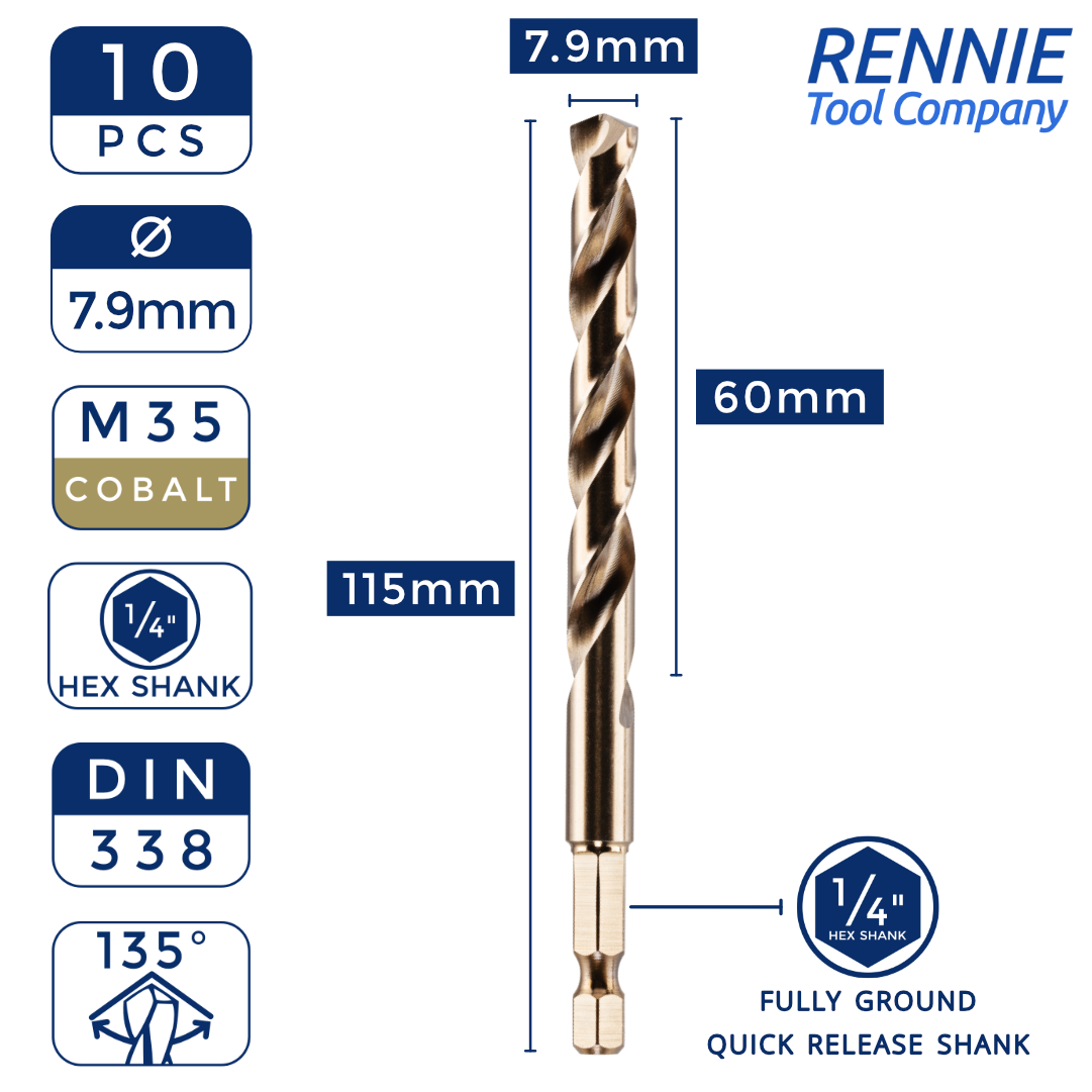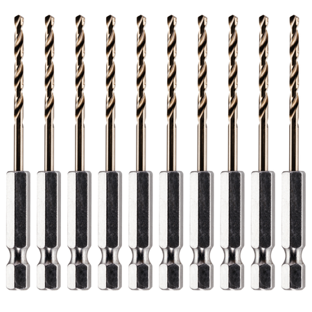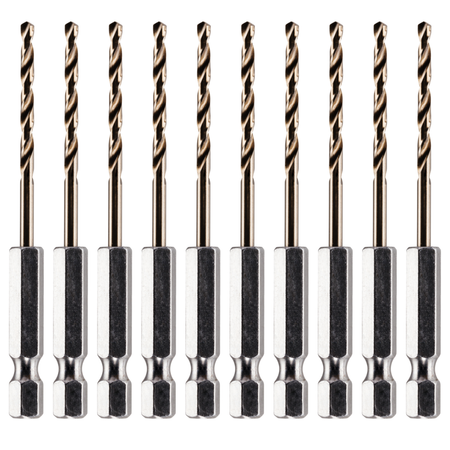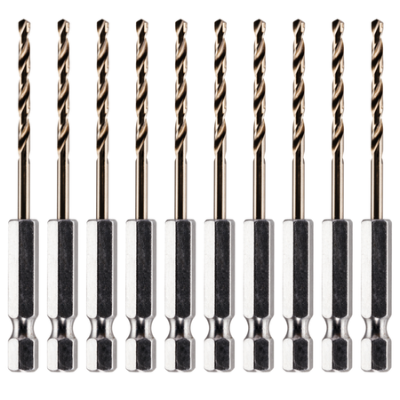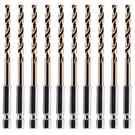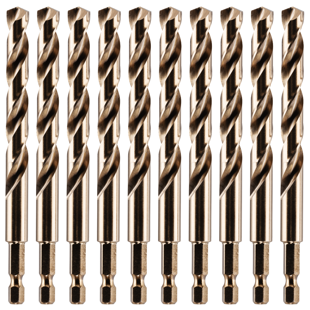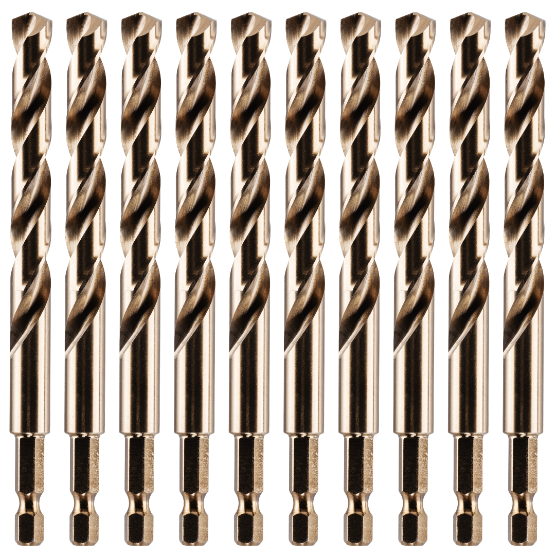 Box Of 10 x Hex Shank Cobalt Jobber Drills For Hard Metals & Stainless Steel