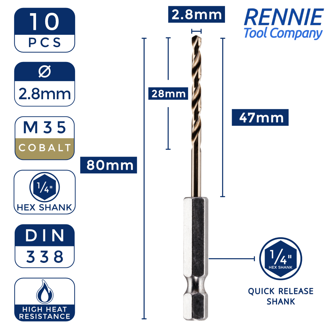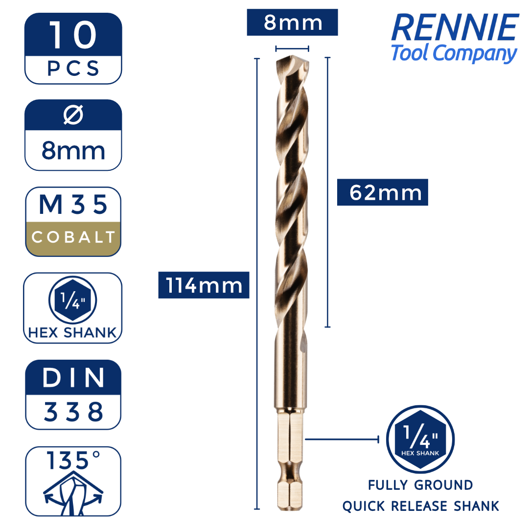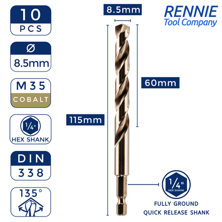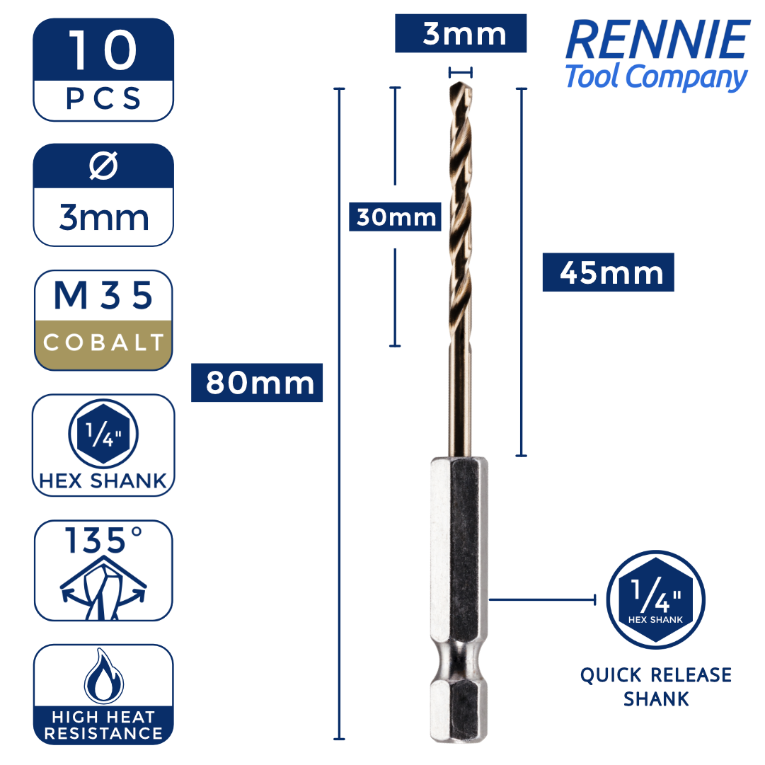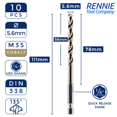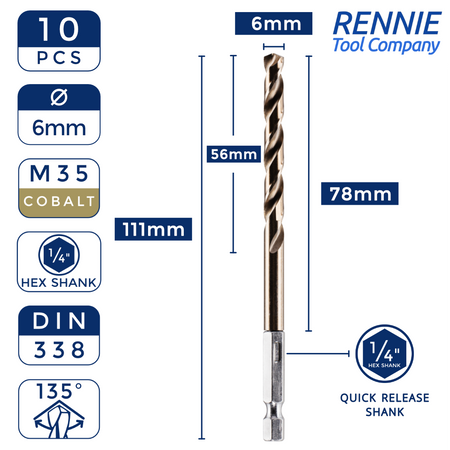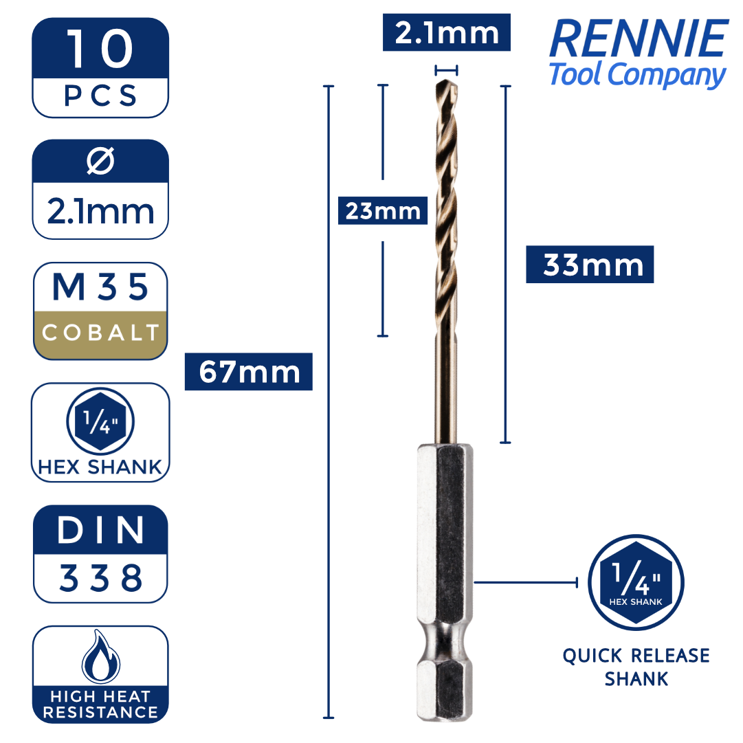 Box Of 10 x Hex Shank Cobalt Jobber Drills For Hard Metals & Stainless Steel