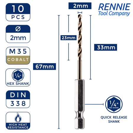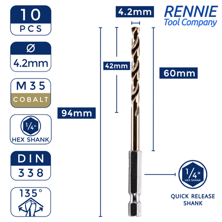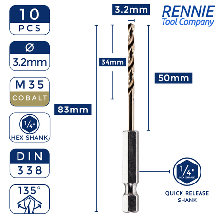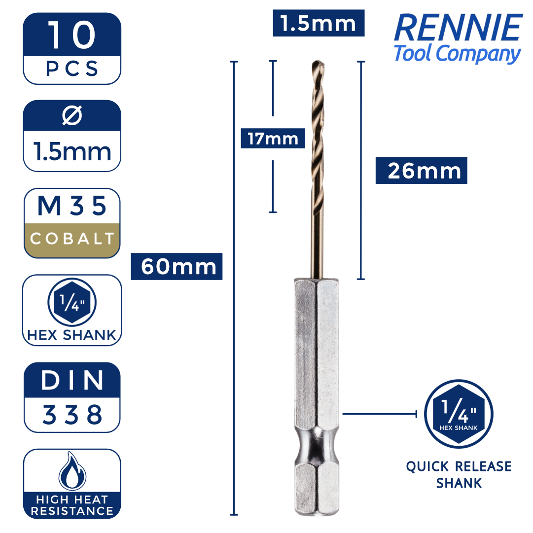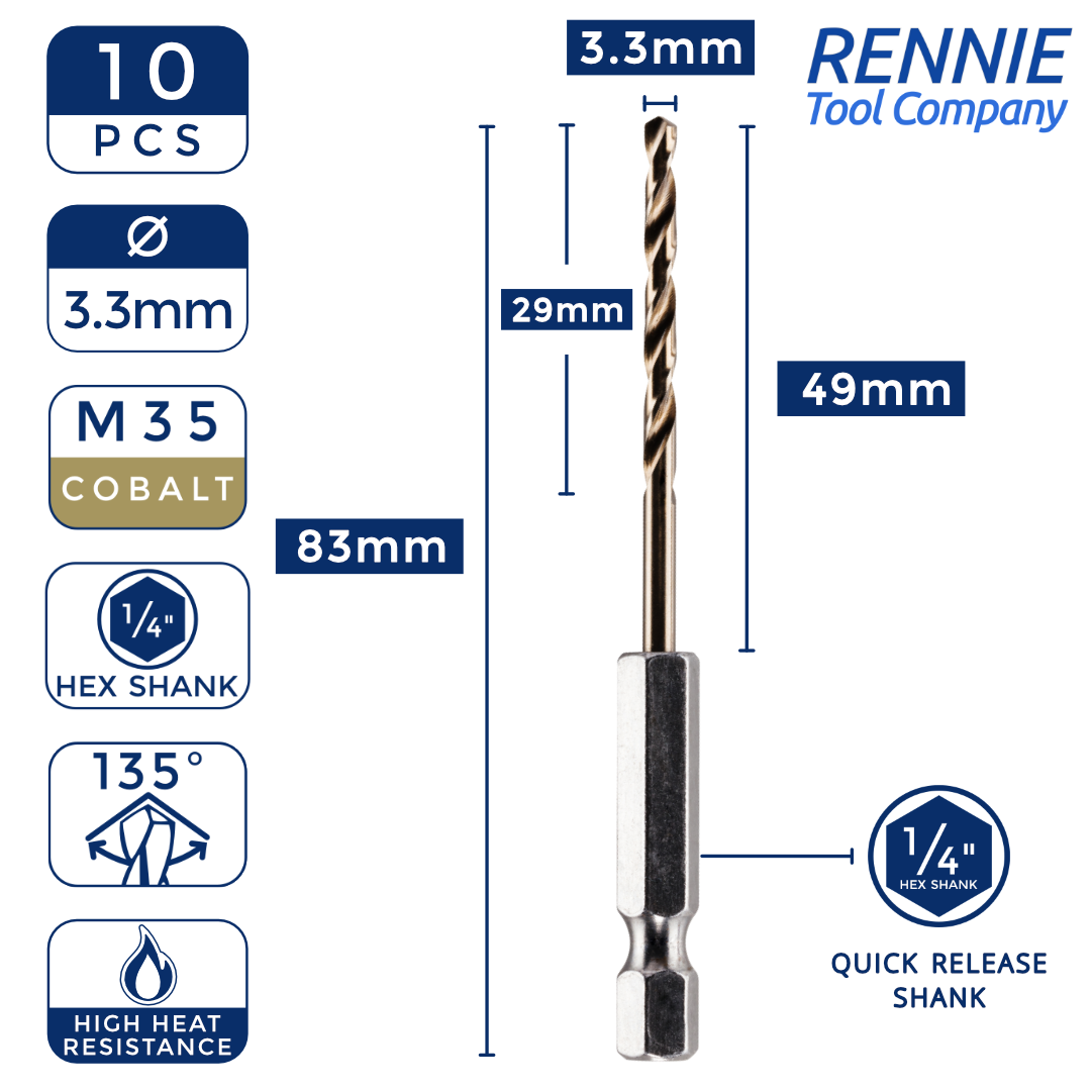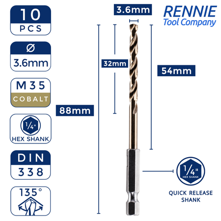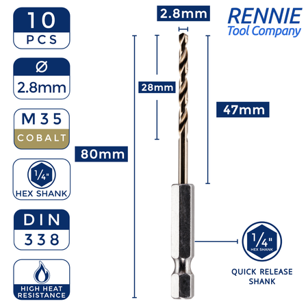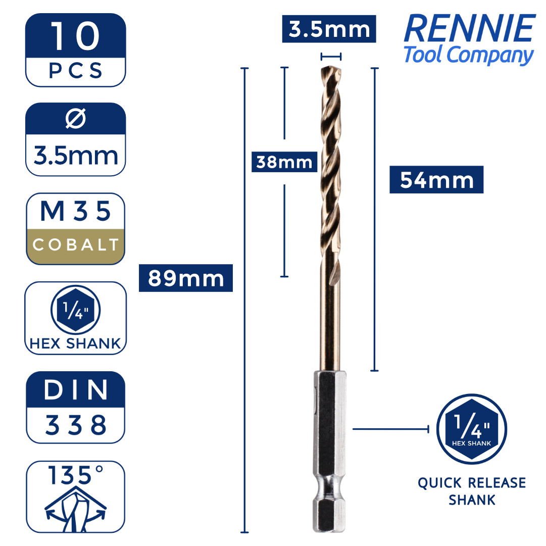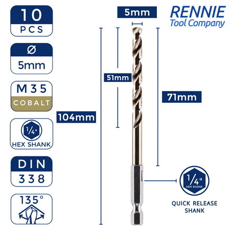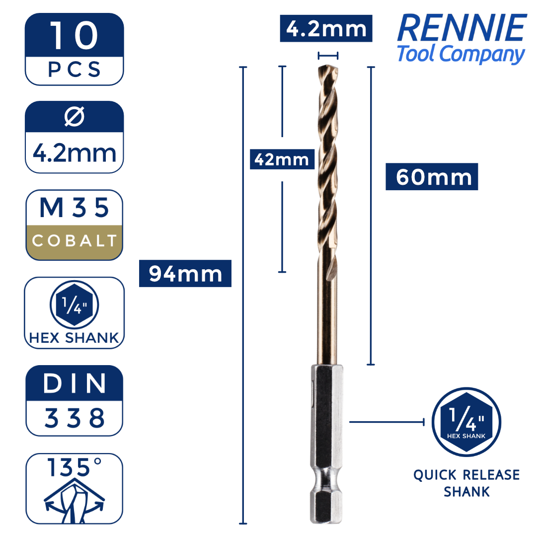 Box Of 10 x Hex Shank Cobalt Jobber Drills For Hard Metals & Stainless Steel