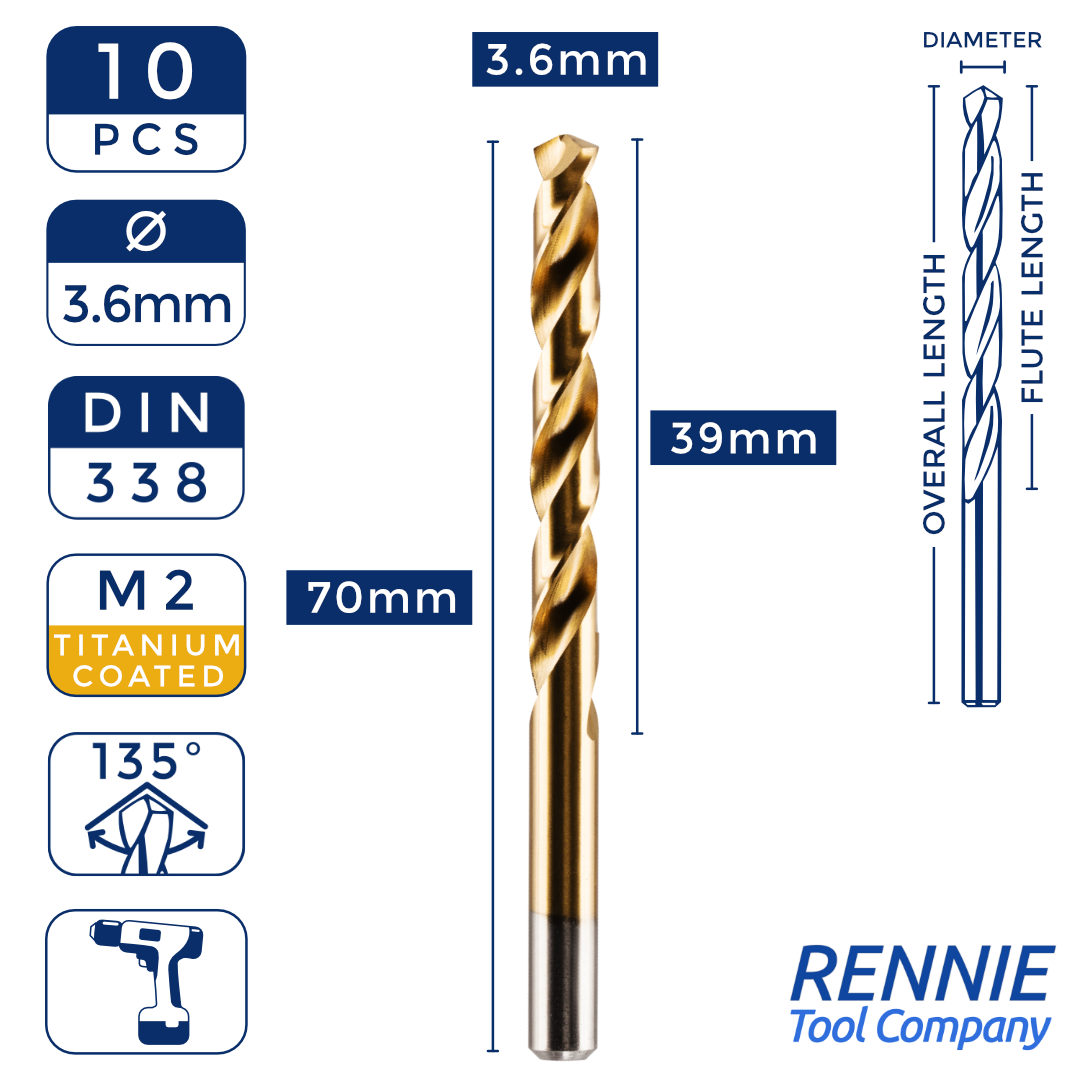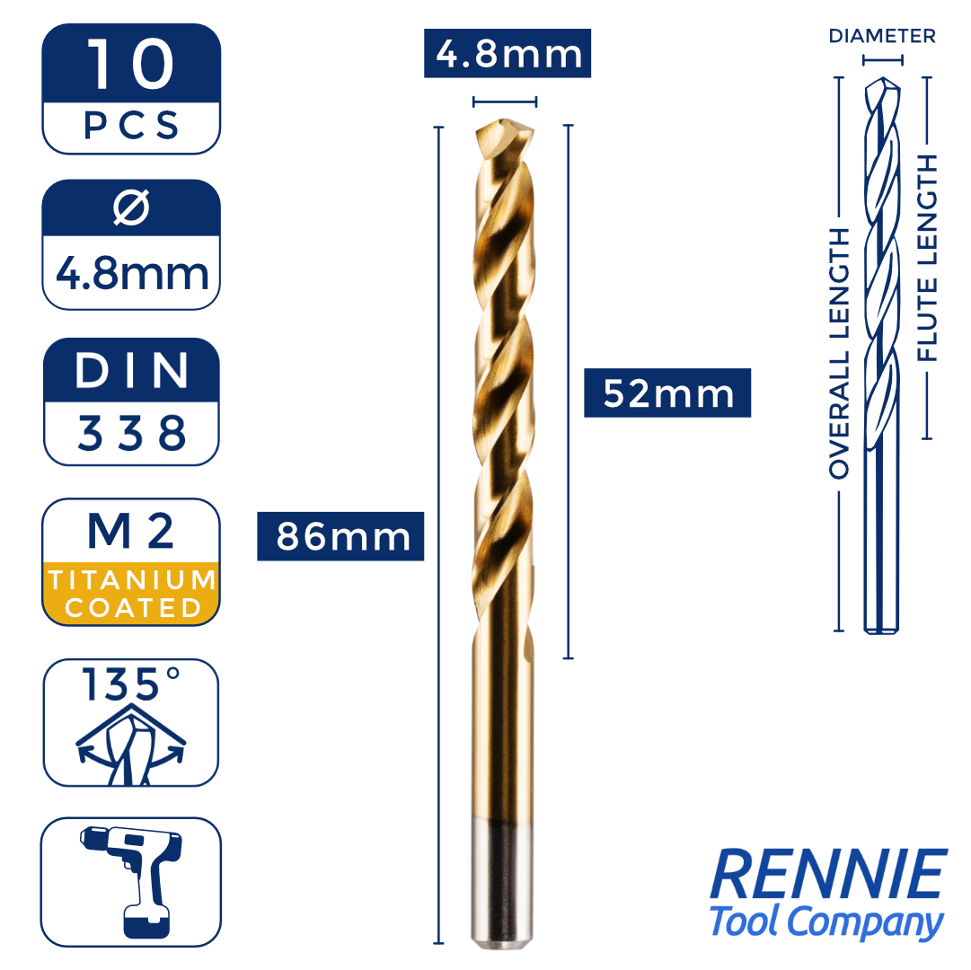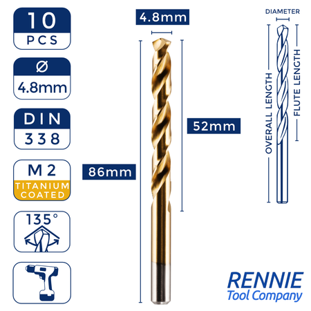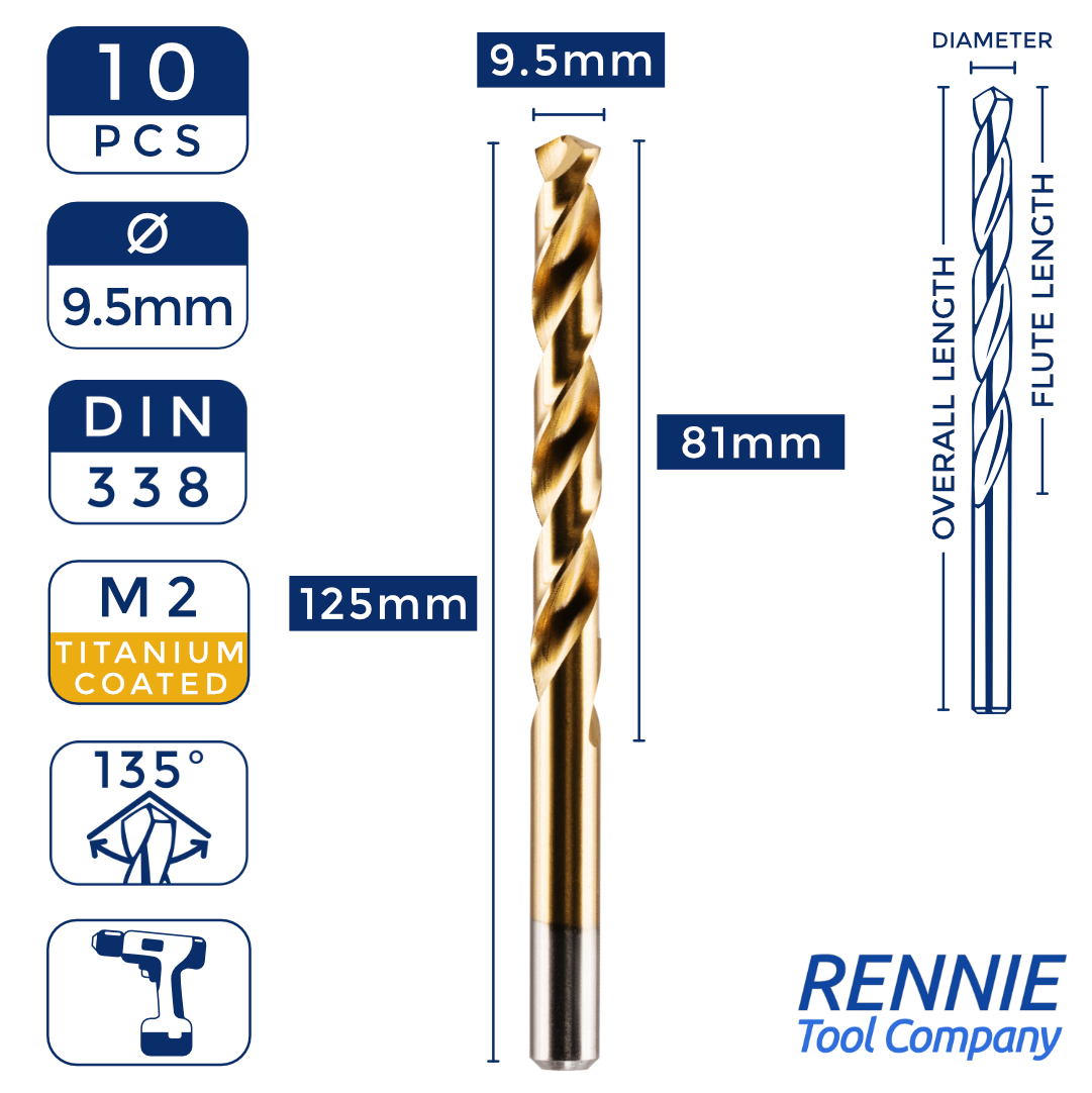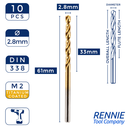 Box Of 10 x HSS M2 Titanium Coated Jobber Drill Bits