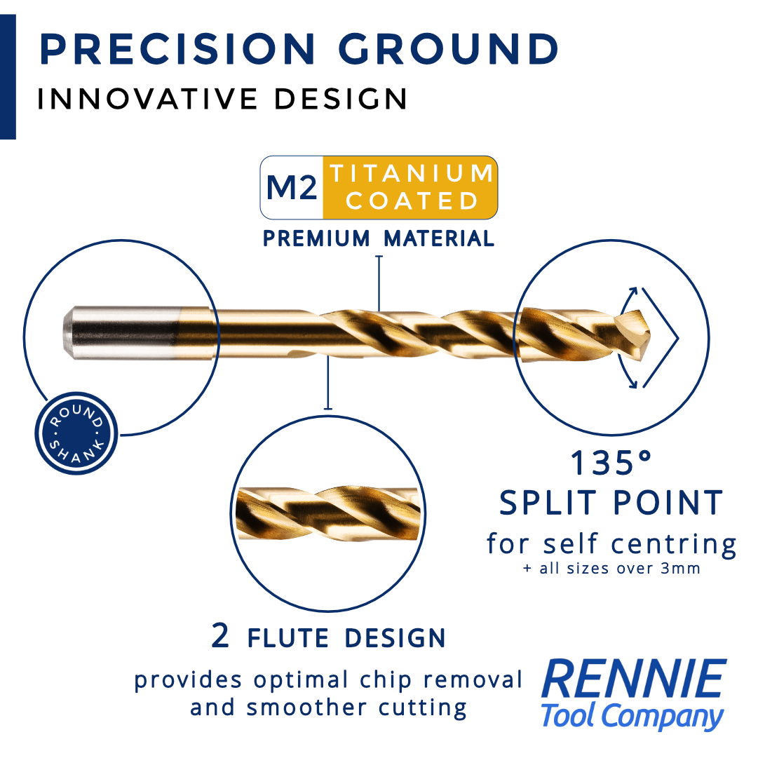 - Split point 135 degree can provide up to 40% faster drilling with lower feed pressures compared to standard HSS drills