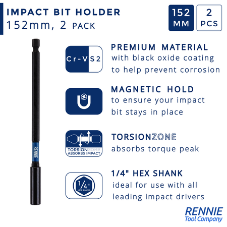 150mm Long Magnetic Impact Driver / Screwdriver Bit Holders Coated
