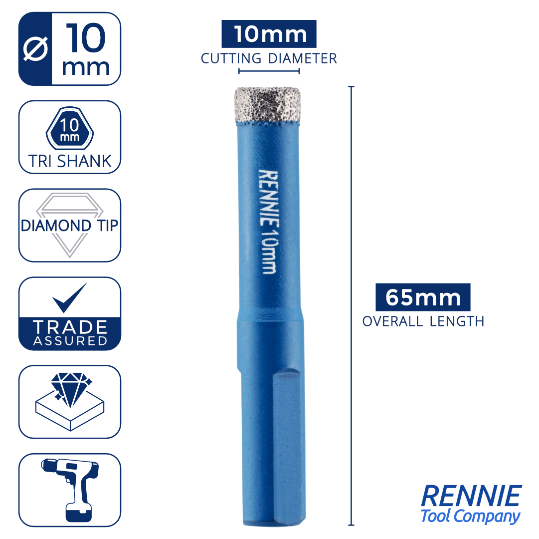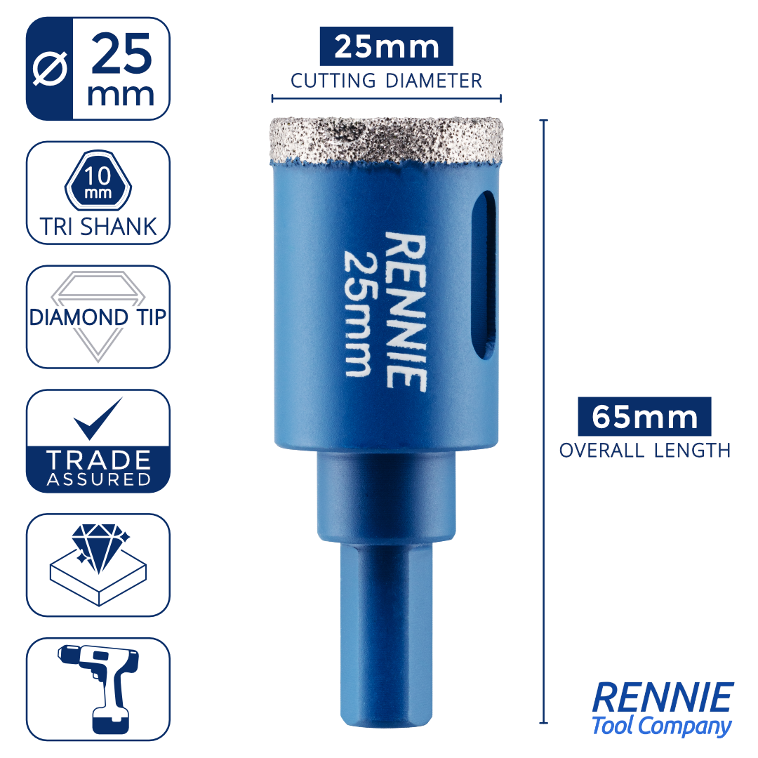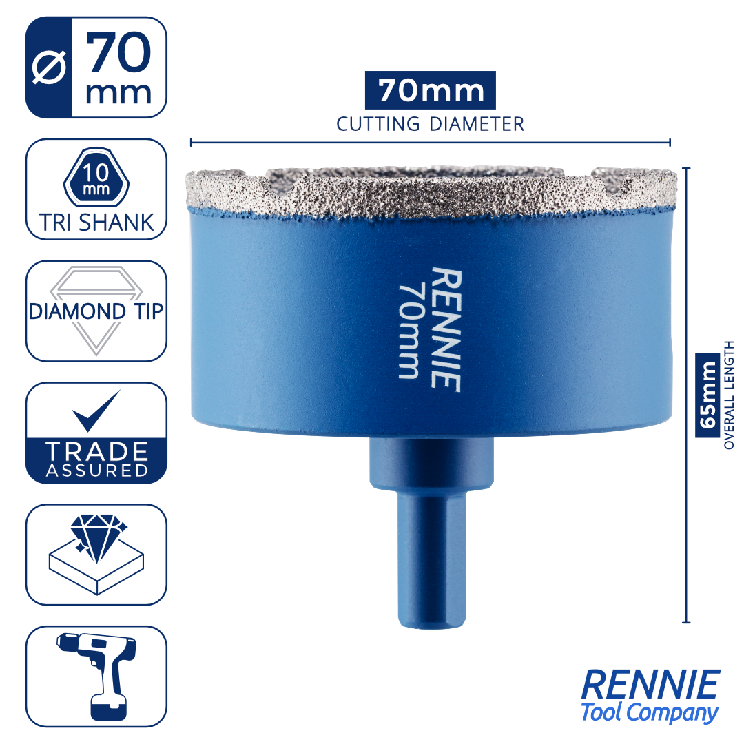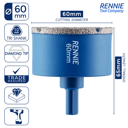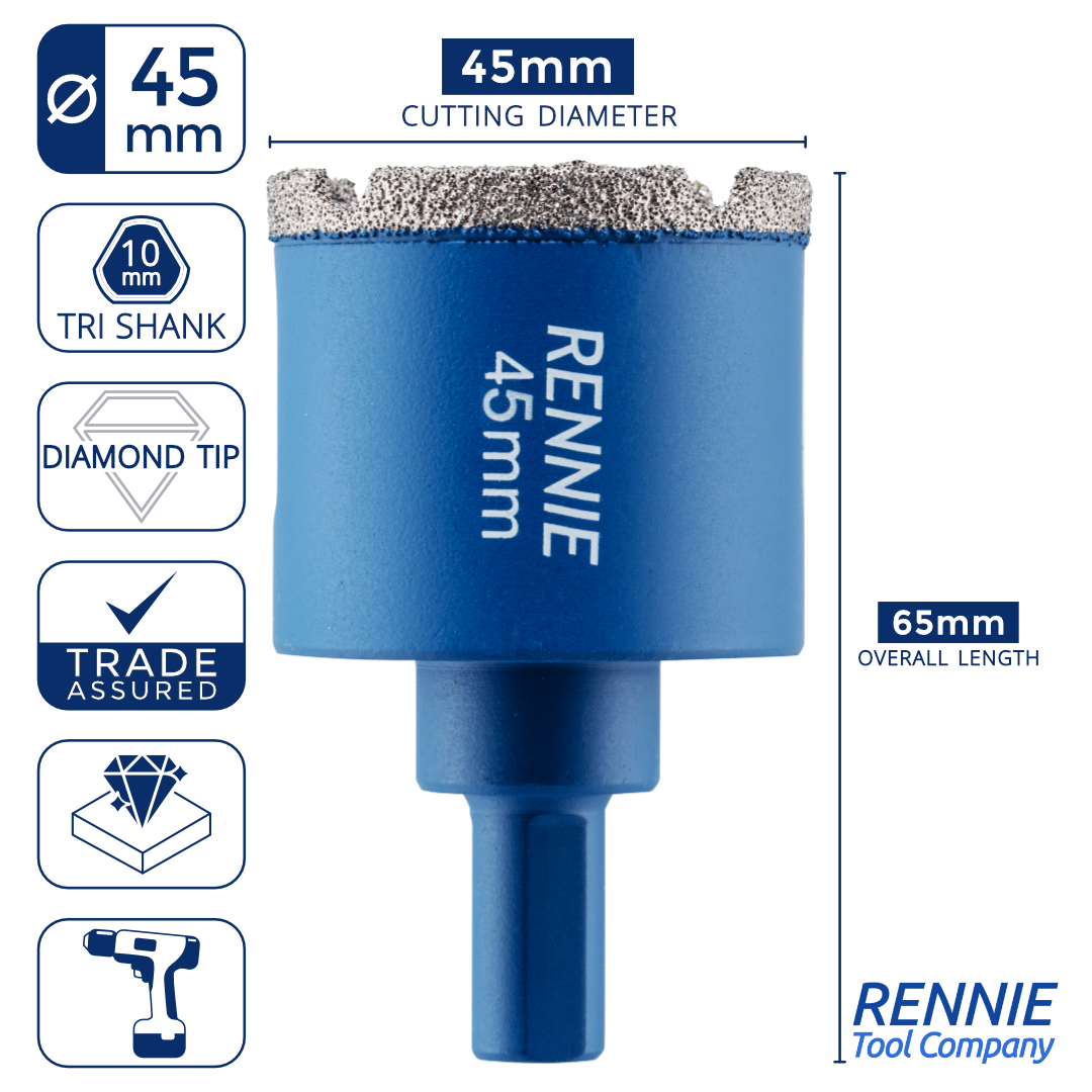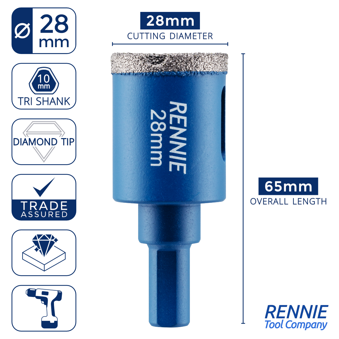 With our drill bit for ceramic set, you can gain a strong, durable and reliable tool. This is because they are diamond-coated to withstand continuous heavy-duty use and a clean, flawless finish. Being coated in diamond ensures that you get precision with every use and makes it much easier to create accurate, clean holes. They take the stress out of trying to create a high-quality finish while working with tough materials. This makes them perfect to use for construction professionals and home improvement enthusiasts, as they can rely on our drill bits and holesaws to always give exceptional performance and unparalleled longevity.