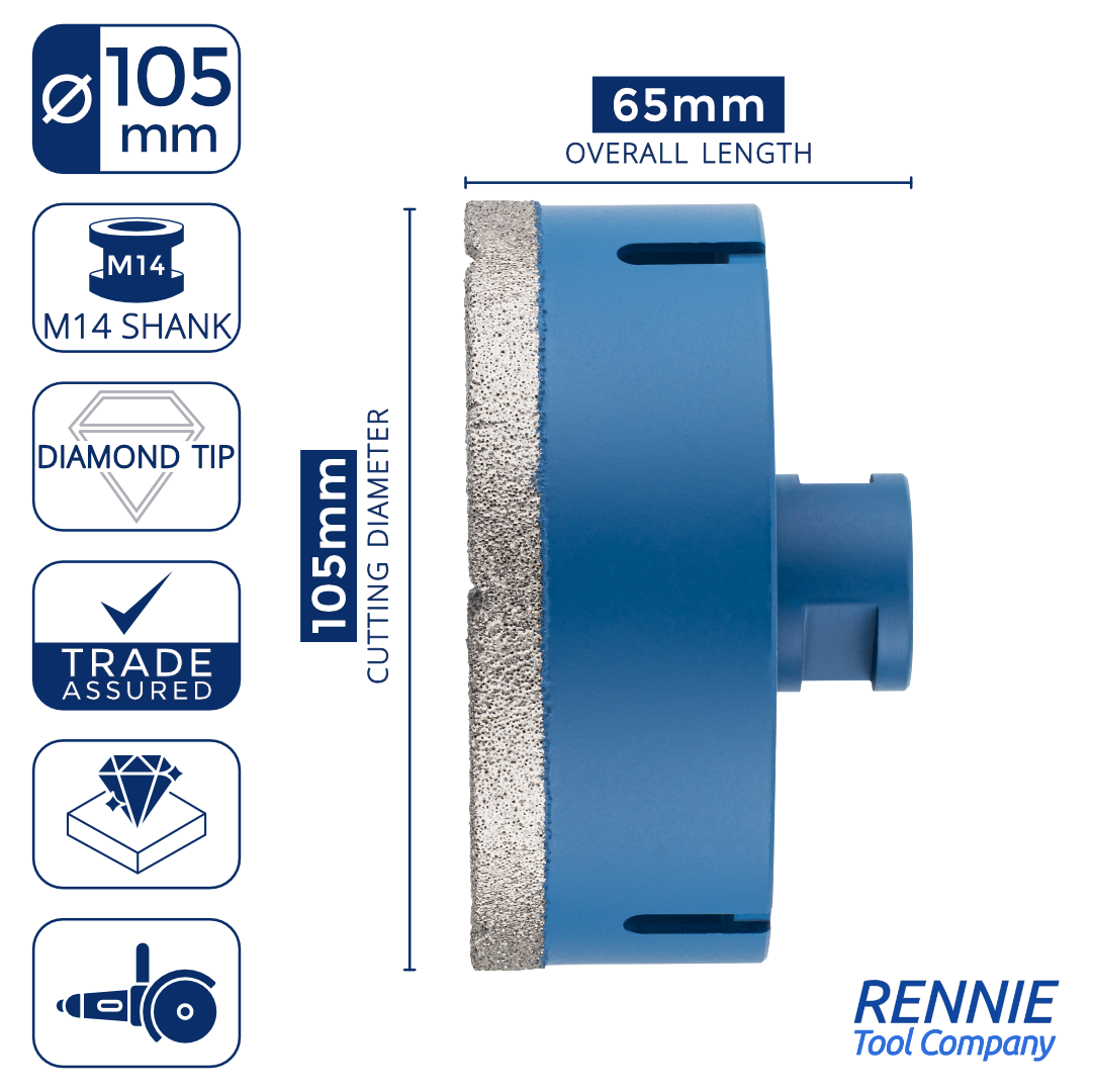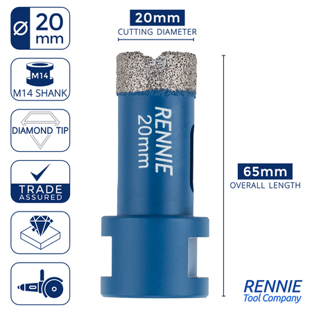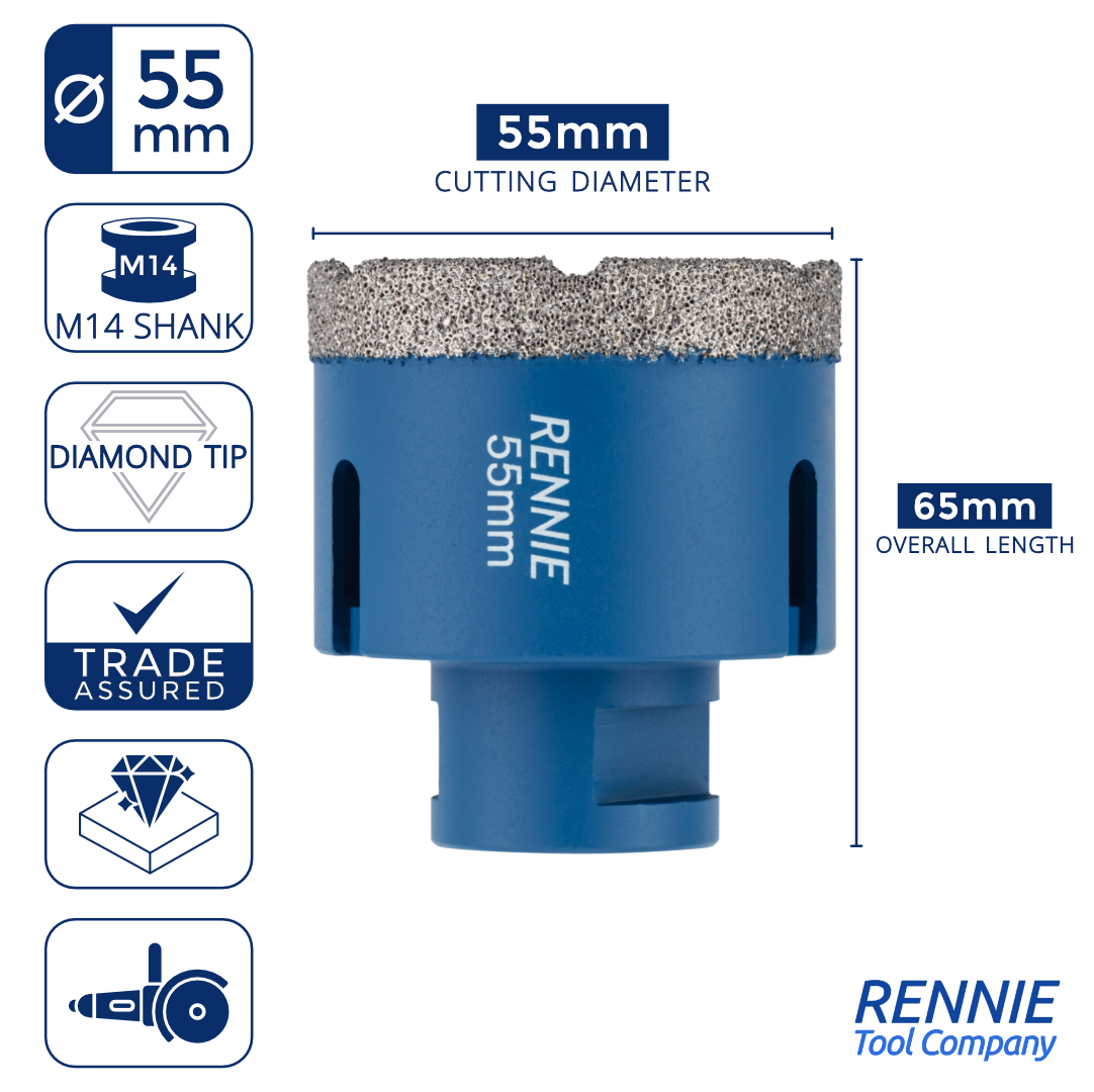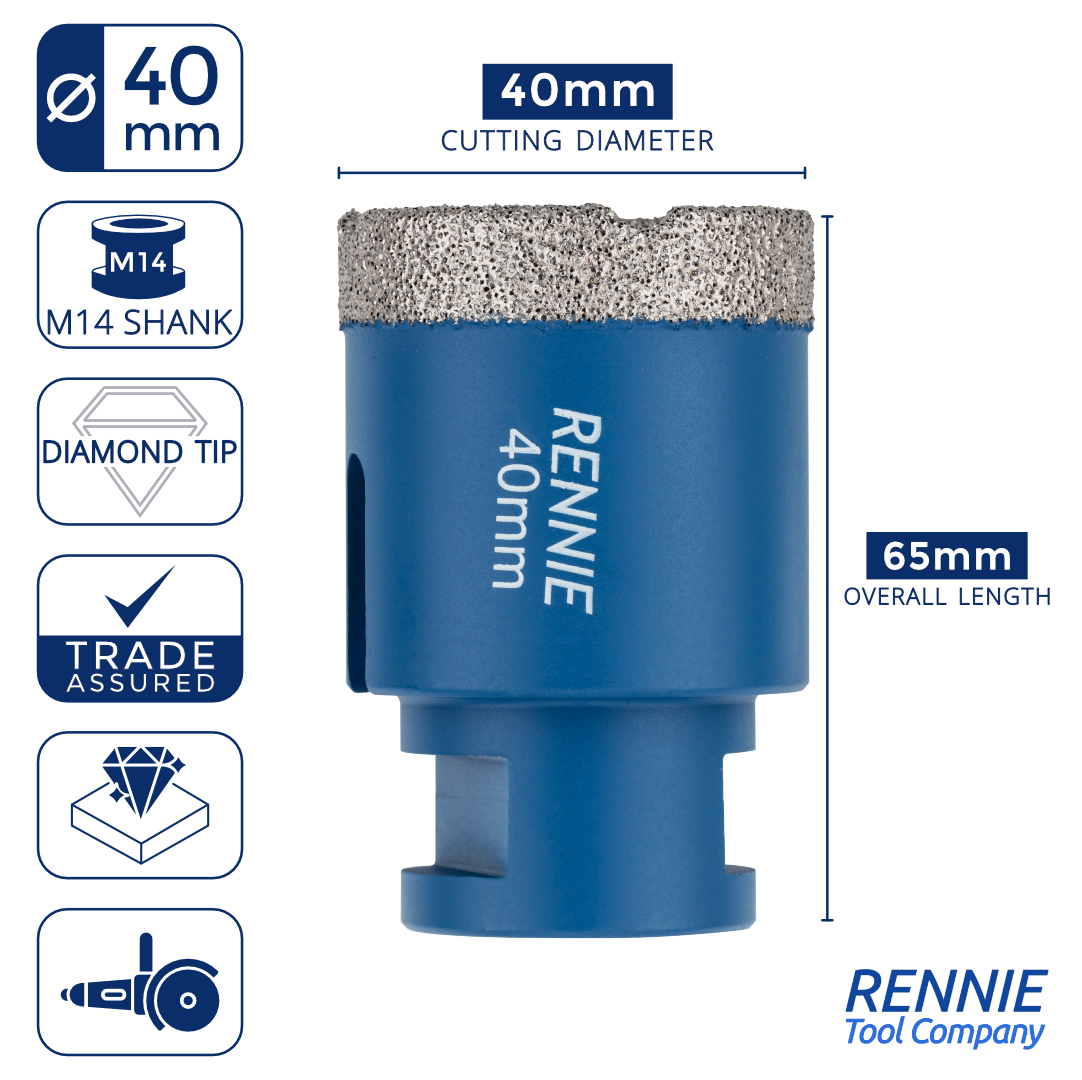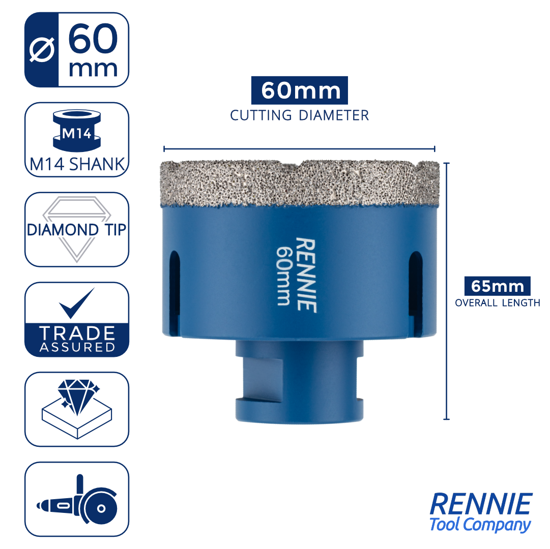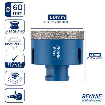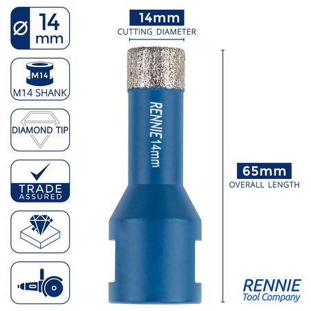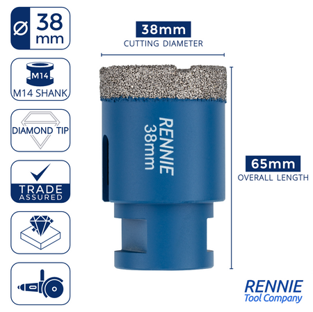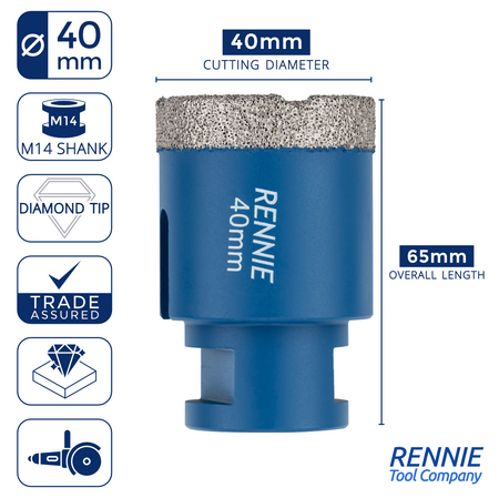 With their M14 threaded shank, they easily attach to most angle grinders, delivering fast, efficient dry cutting without the need for a pilot drill. Whether you're a professional tiler, stone mason, or DIY renovator, these holesaws provide the durability and performance needed for demanding jobs.