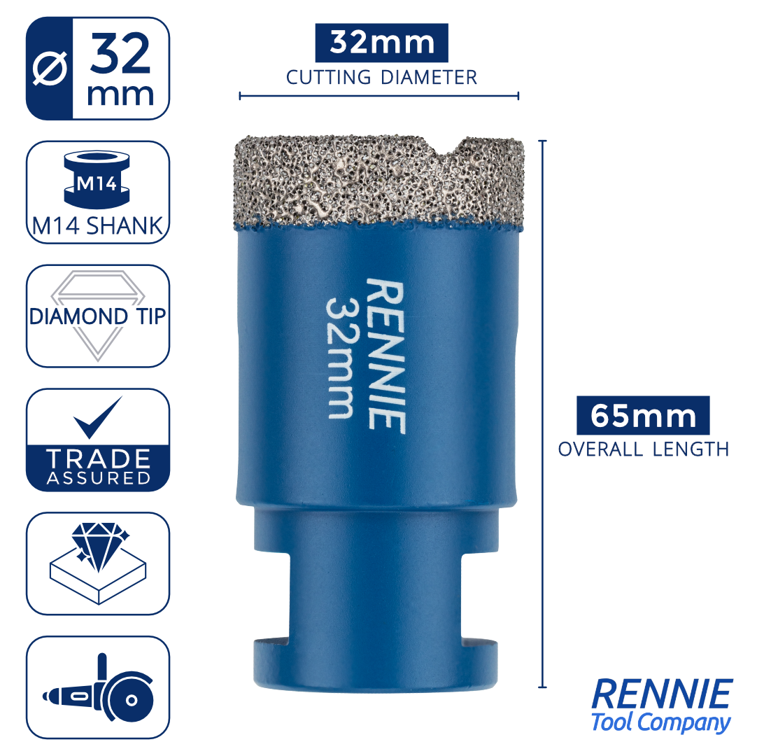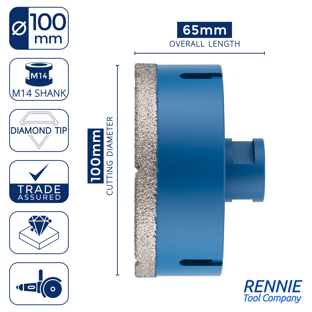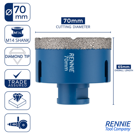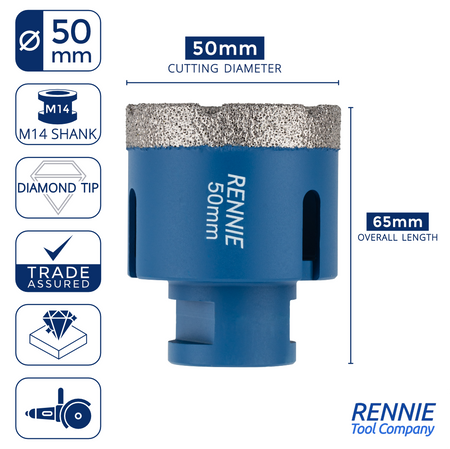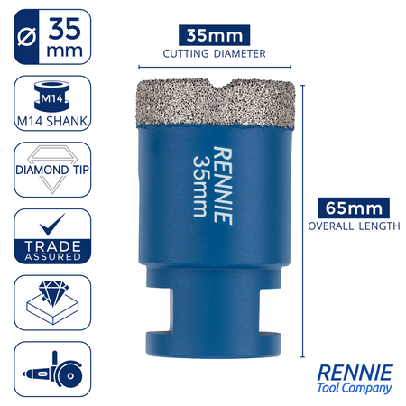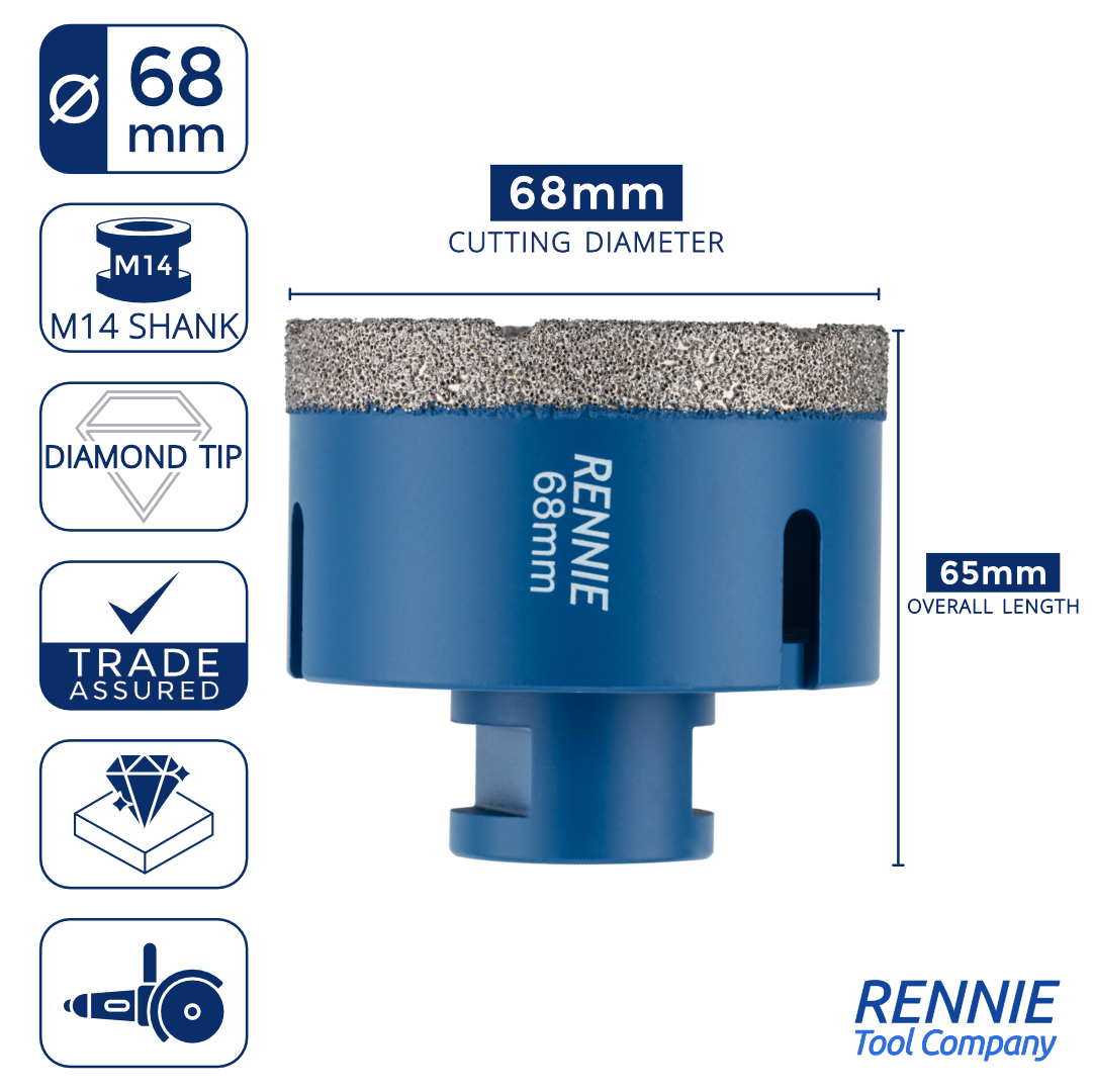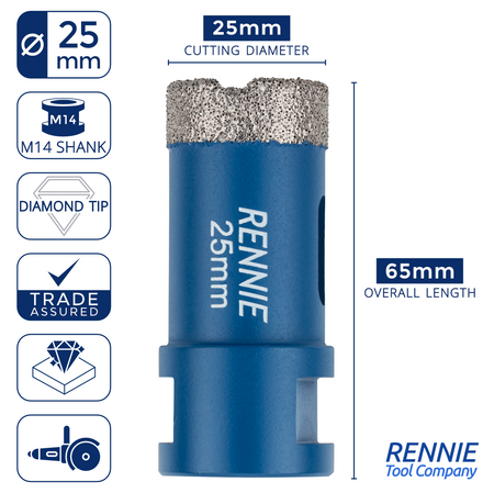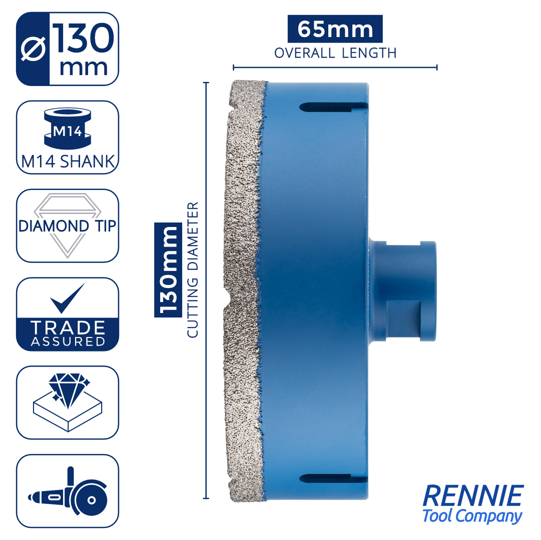 With their M14 threaded shank, they easily attach to most angle grinders, delivering fast, efficient dry cutting without the need for a pilot drill. Whether you're a professional tiler, stone mason, or DIY renovator, these holesaws provide the durability and performance needed for demanding jobs.