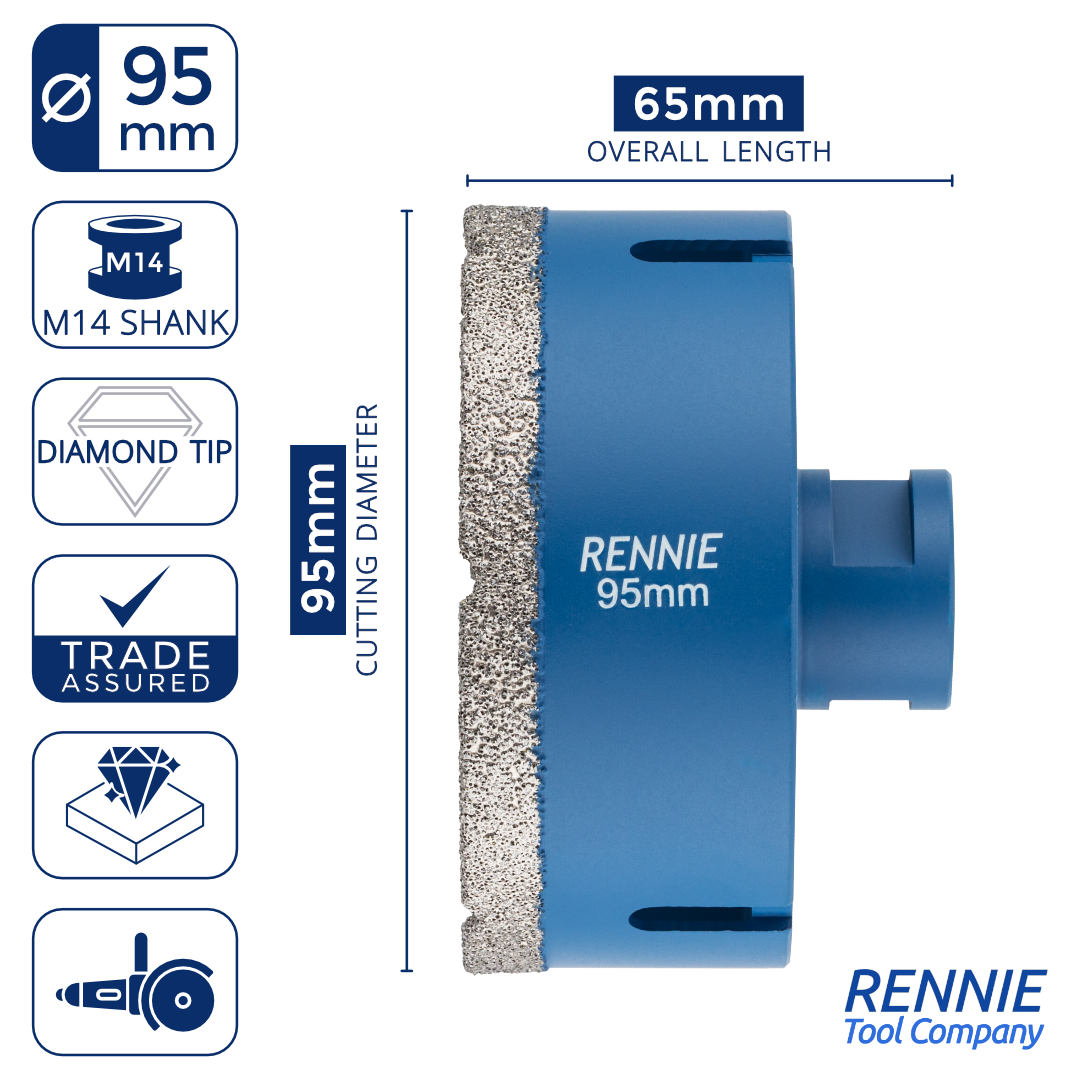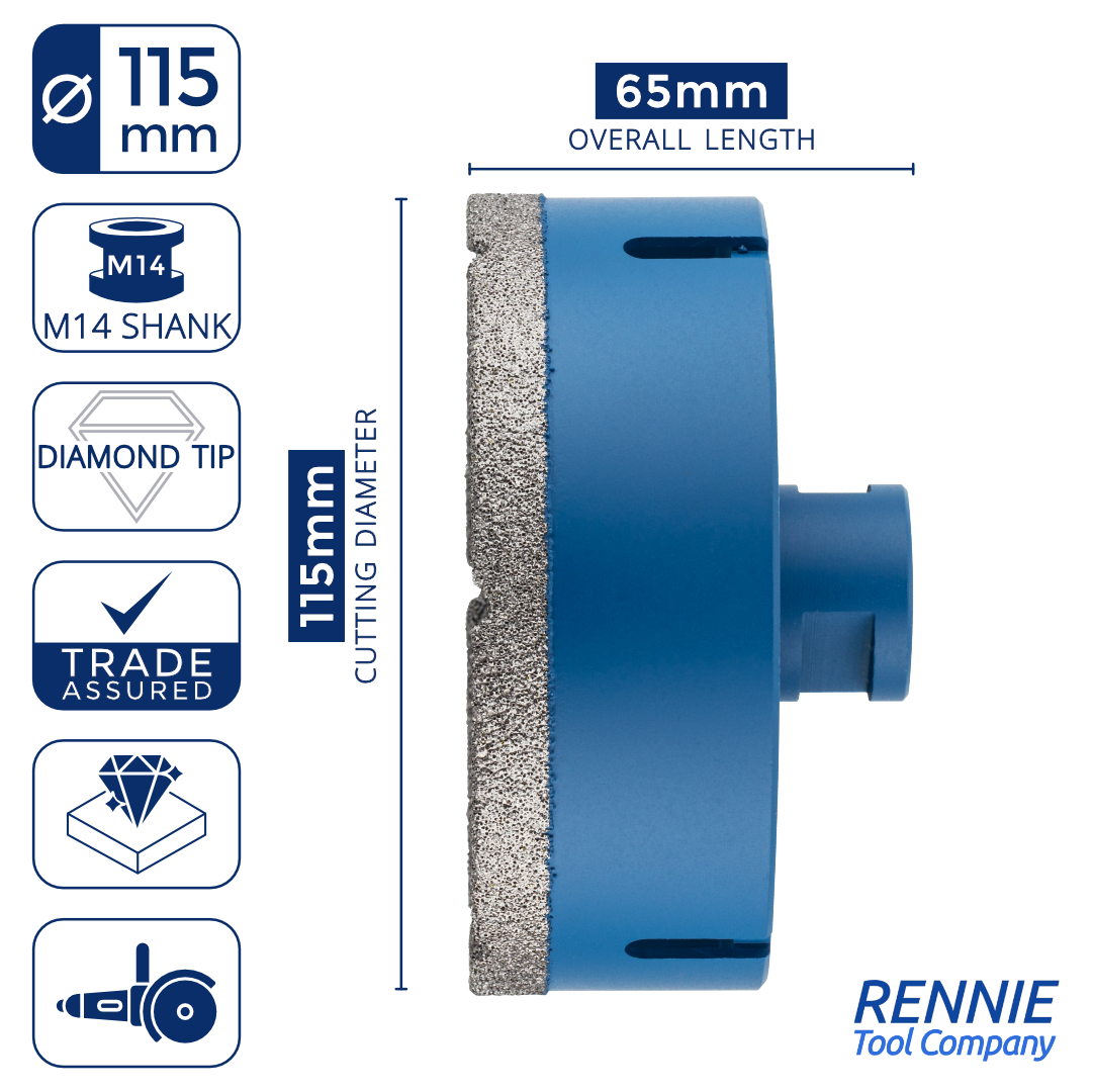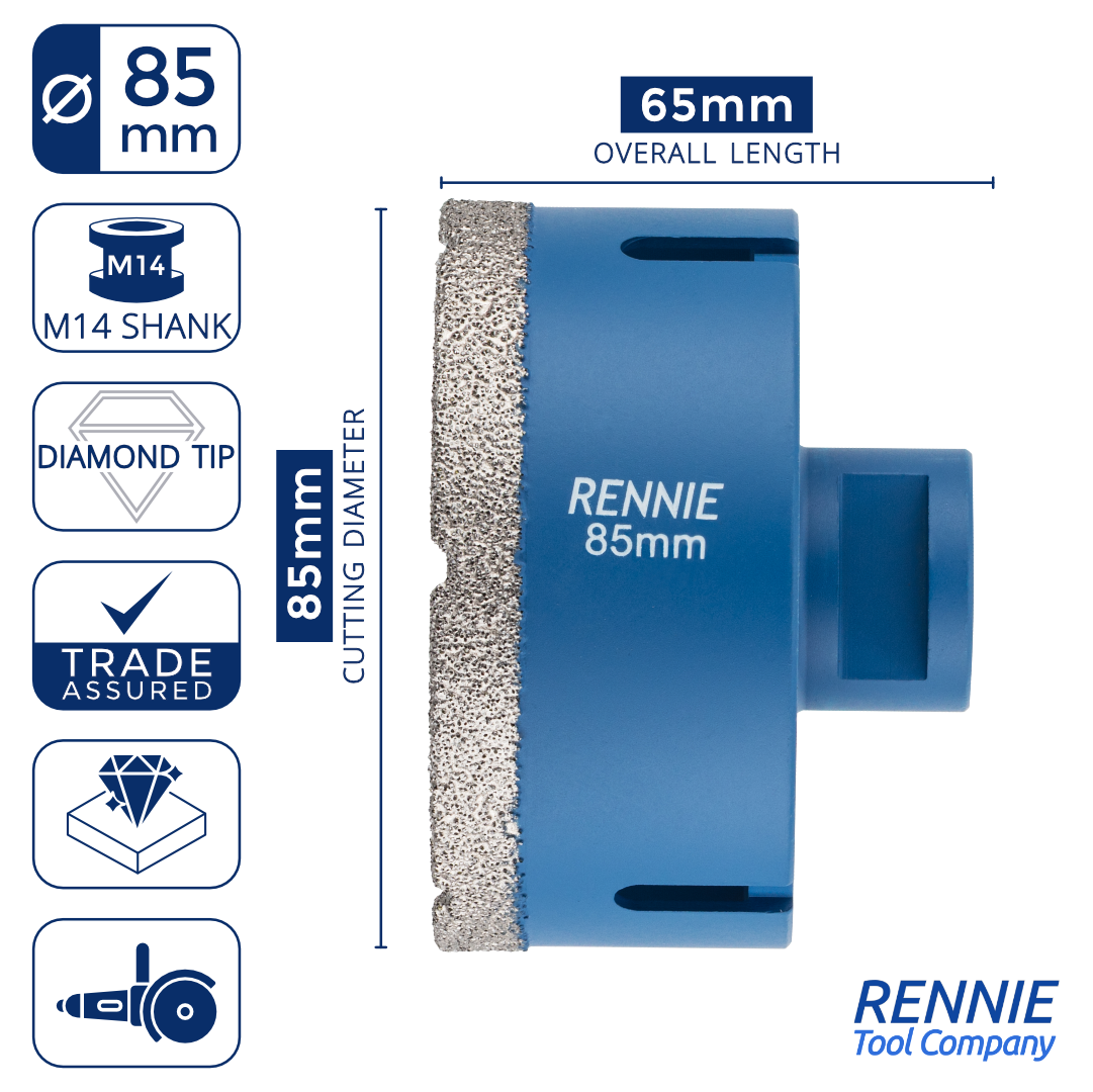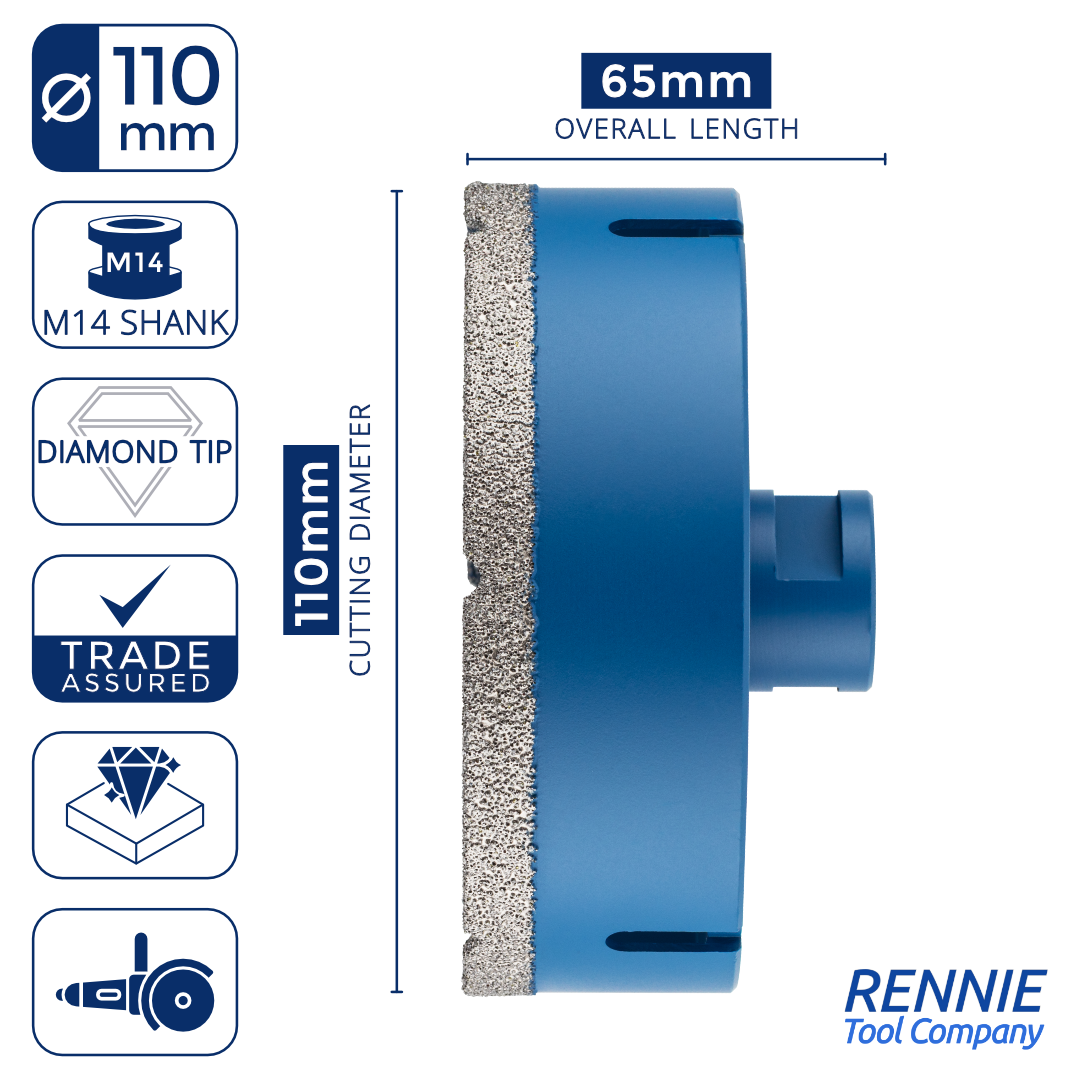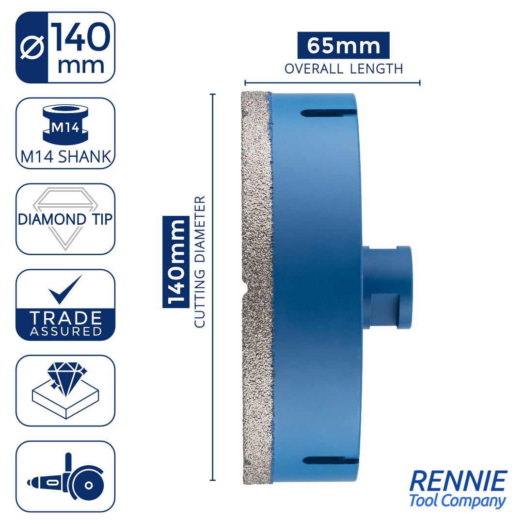 With their M14 threaded shank, they easily attach to most angle grinders, delivering fast, efficient dry cutting without the need for a pilot drill. Whether you're a professional tiler, stone mason, or DIY renovator, these holesaws provide the durability and performance needed for demanding jobs.