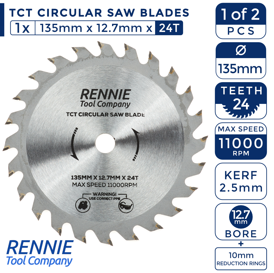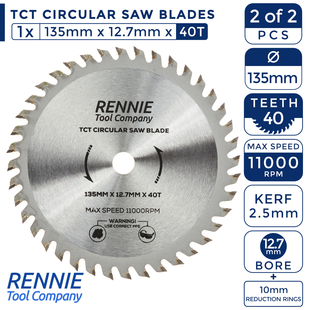 This set of 2 circular saw blades include 1 x blade with 24 teeth and 1 x blade with 40 teeth. They have a 12.7mm (1/2") bore so will fit any saw that has a 12.7mm (1/2"). These TCT saw blade also comes with a 10mm reduction ring so will also fit any circular saw that has a 10mm bore as well