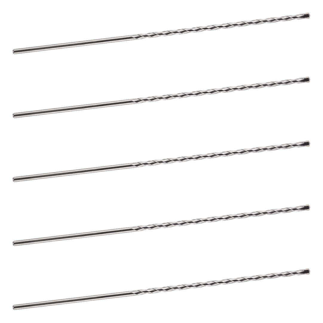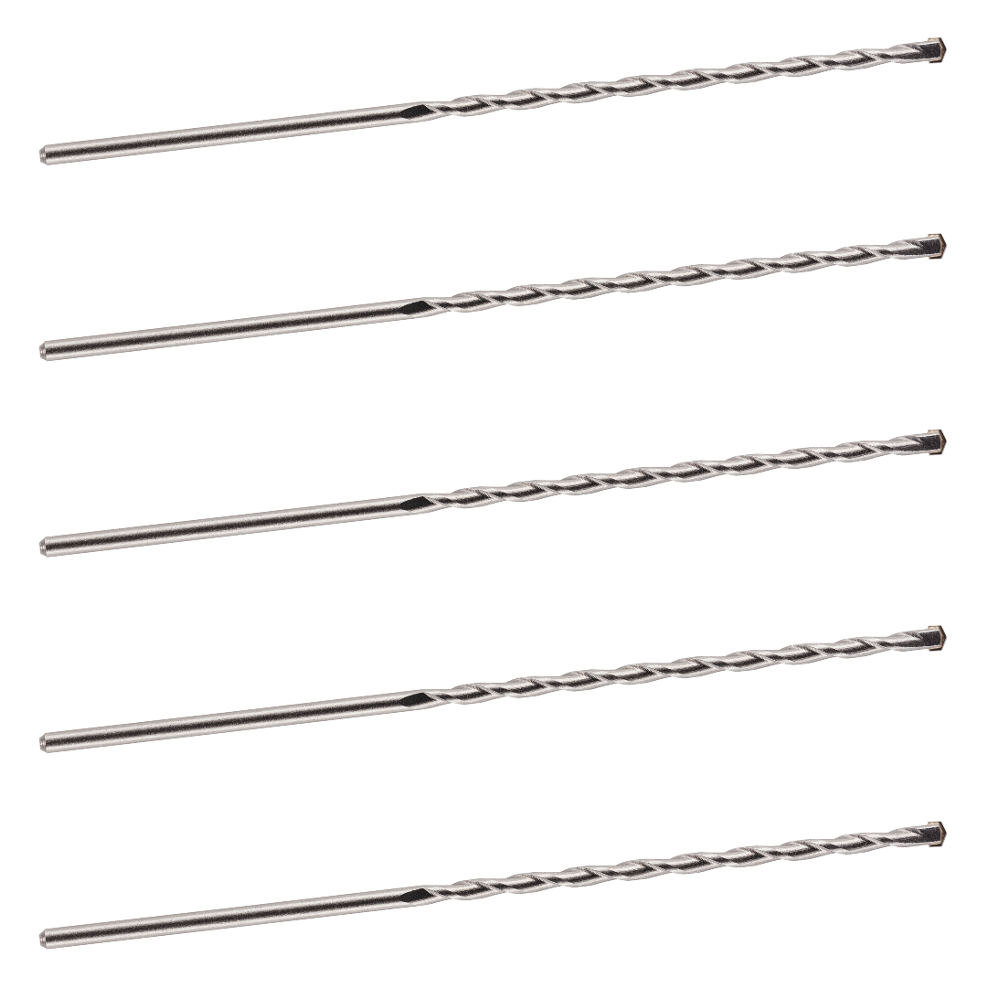 We know that there is a huge variety of jobs for TCT masonry drill bits out there, which is why we offer our Pack of 5 in a wide range of sizes, allowing you to choose the diameter and length that you need. From 3mm for pilot holes, through 10mm for a wide range of fixings and fittings, to 13mm for cable holes, there are TCT drill bits for the job. And depending on the diameter, the length ranges from a useful 75mm to a 600mm long masonry drill bit set for all the reach you need.