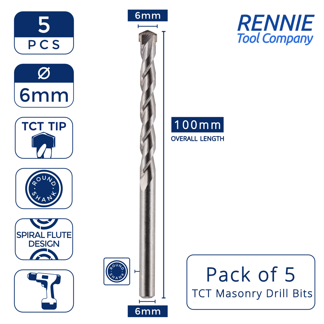 When it comes to drilling through tough surfaces like masonry, brick and stone, the right tools make all the difference. At Rennie Tools, we offer professional-grade TCT drill bits designed to deliver maximum strength, durability and precision. Our Pack of 5 TCT (Tungsten Carbide Tipped) straight shank masonry drill bits is an essential choice for both DIY enthusiasts and trade professionals who want a reliable and long-lasting set of masonry drill bits for their toolkit.