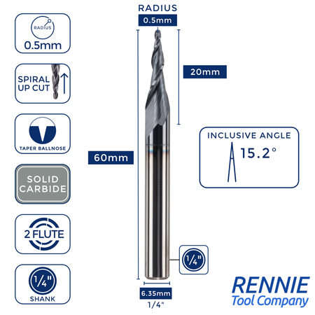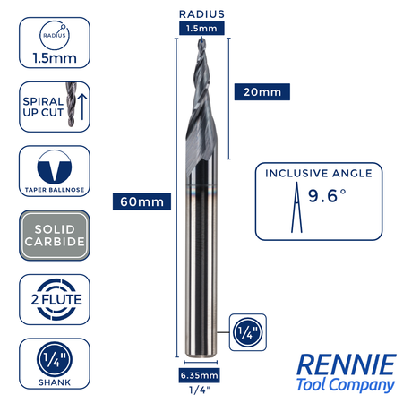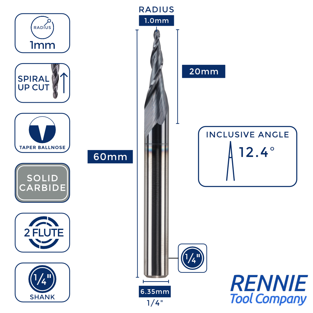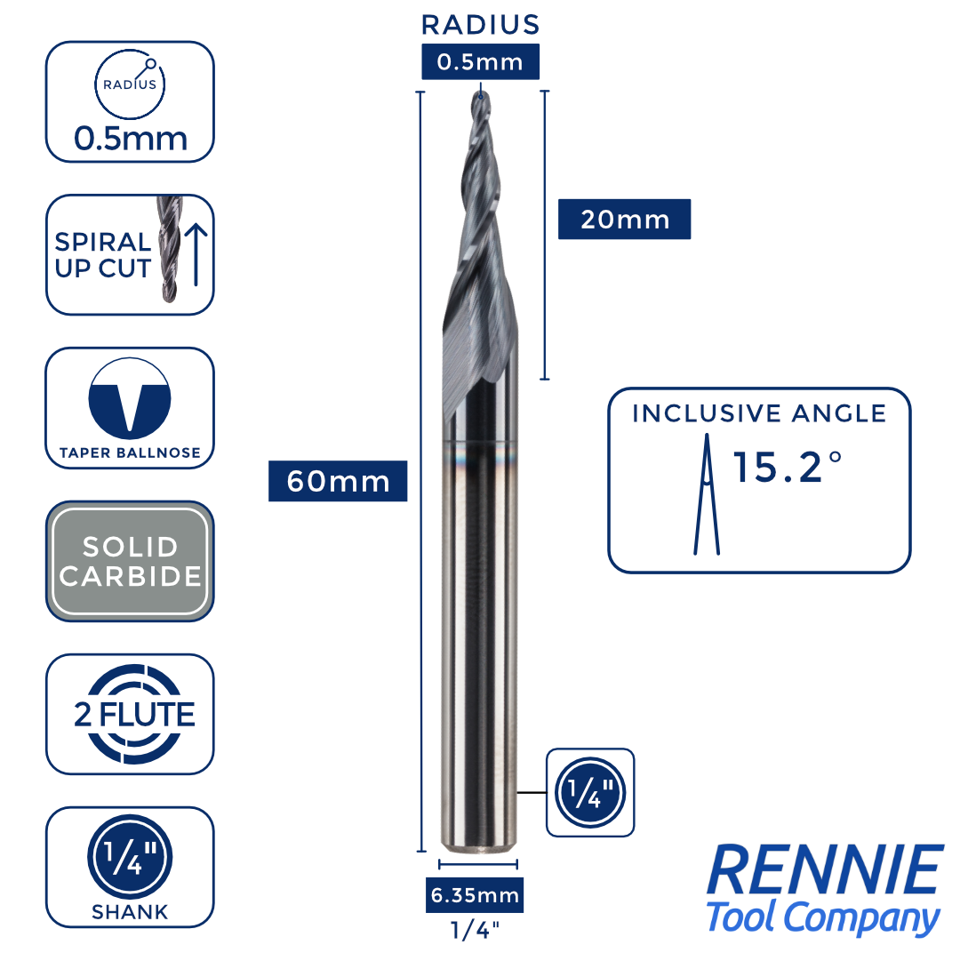 1/4" Shank - 20mm Flute - 60mm Overall Length
