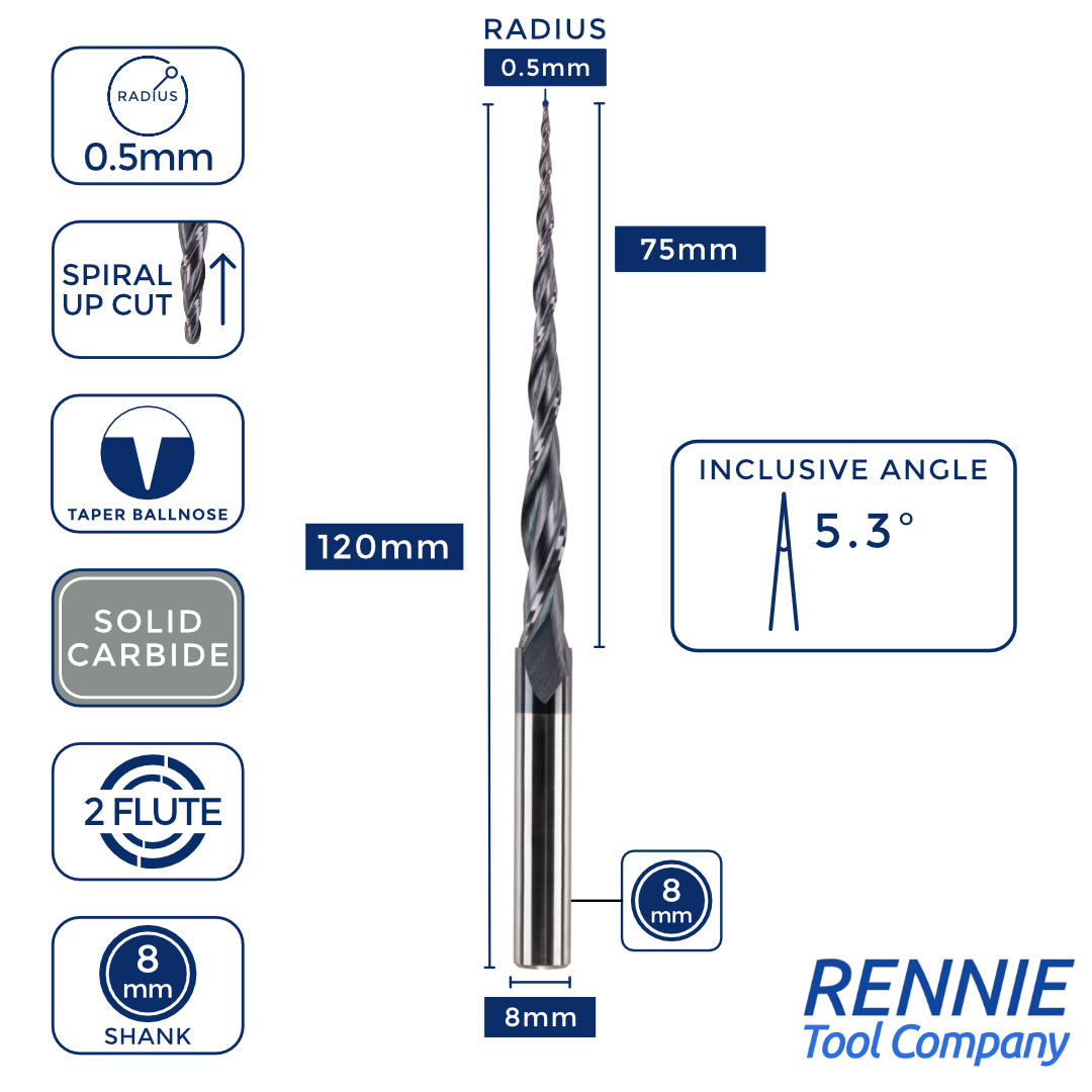 | 0.5mm | 75mm | 5.3 Degrees | 120mm | 8mm |