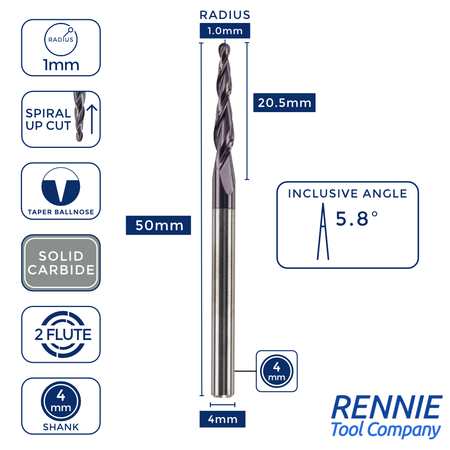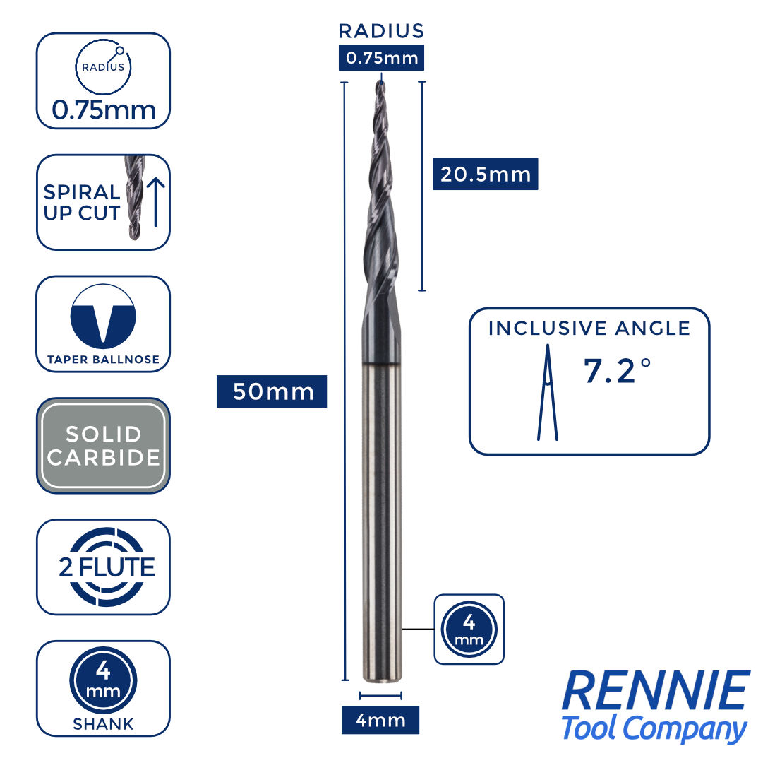 4mm shank - 20.5mm Flute - 50mm Overall Length