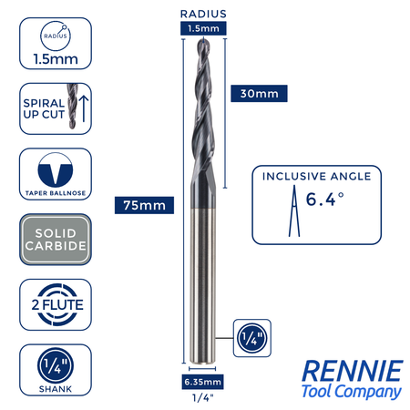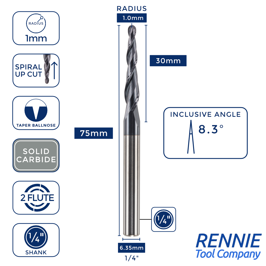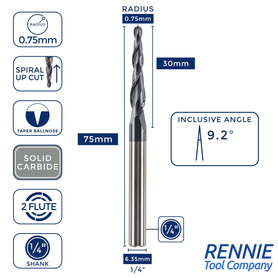 1/4" Shank - 30mm Flute - 75mm Overall Length