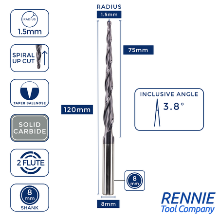 | 1.5mm | 75mm | 3.8 Degrees | 120mm | 8mm |